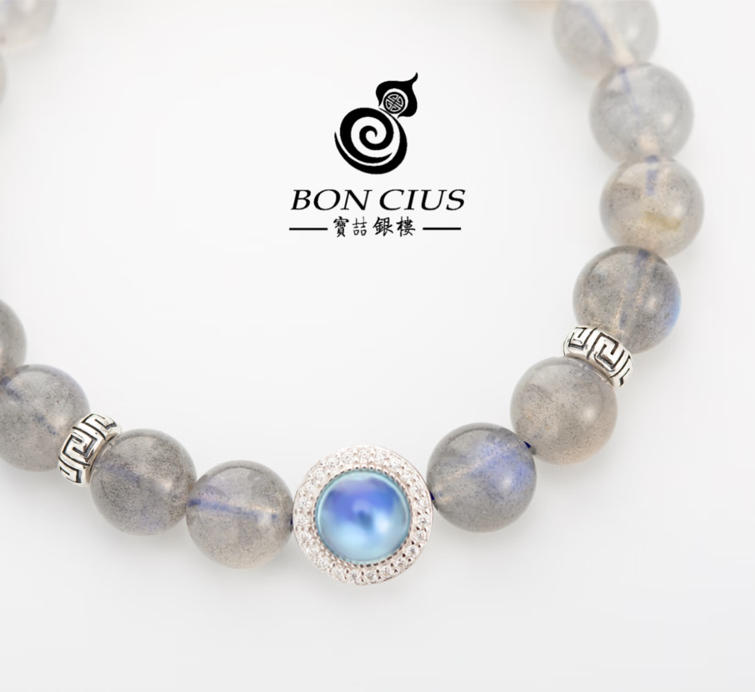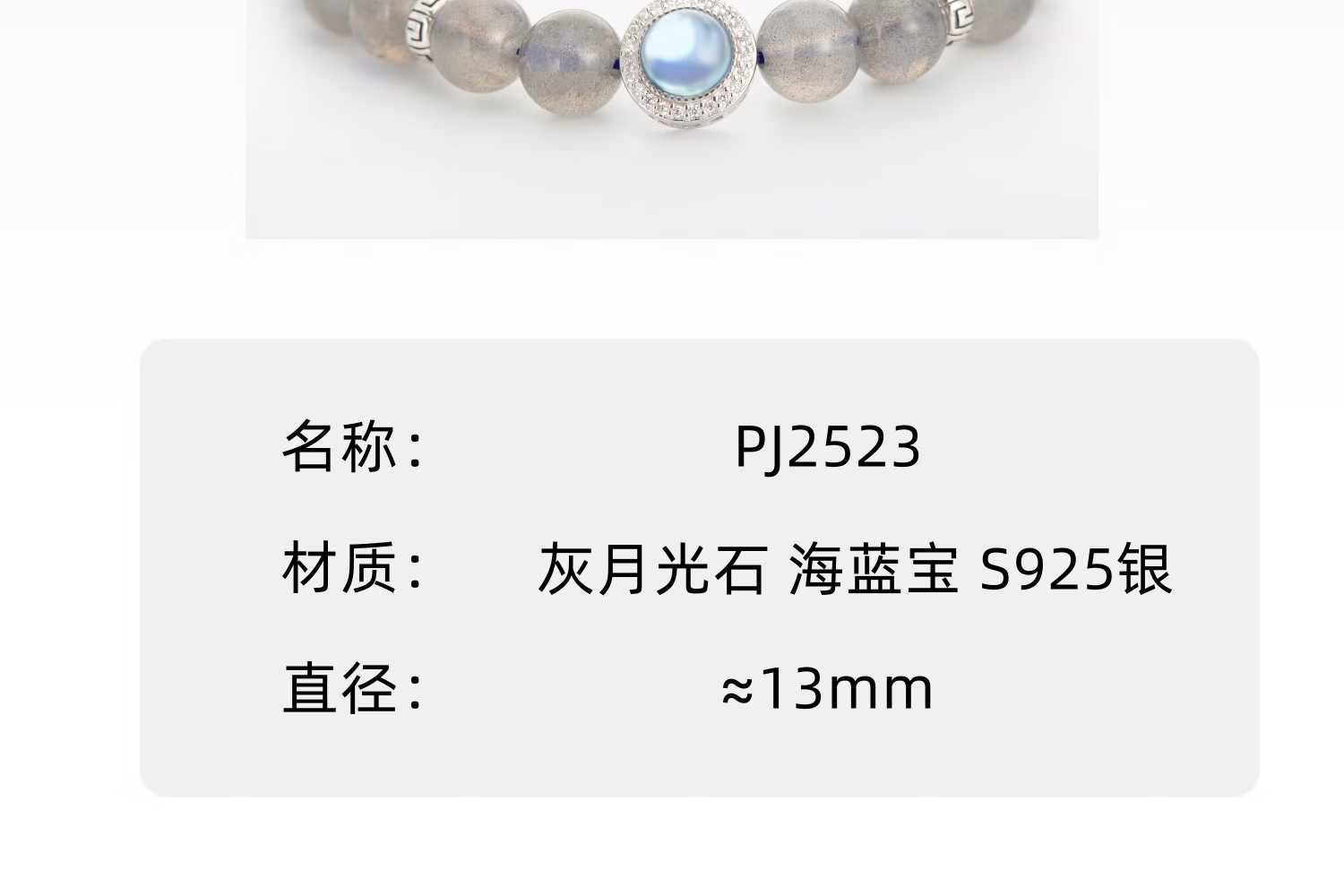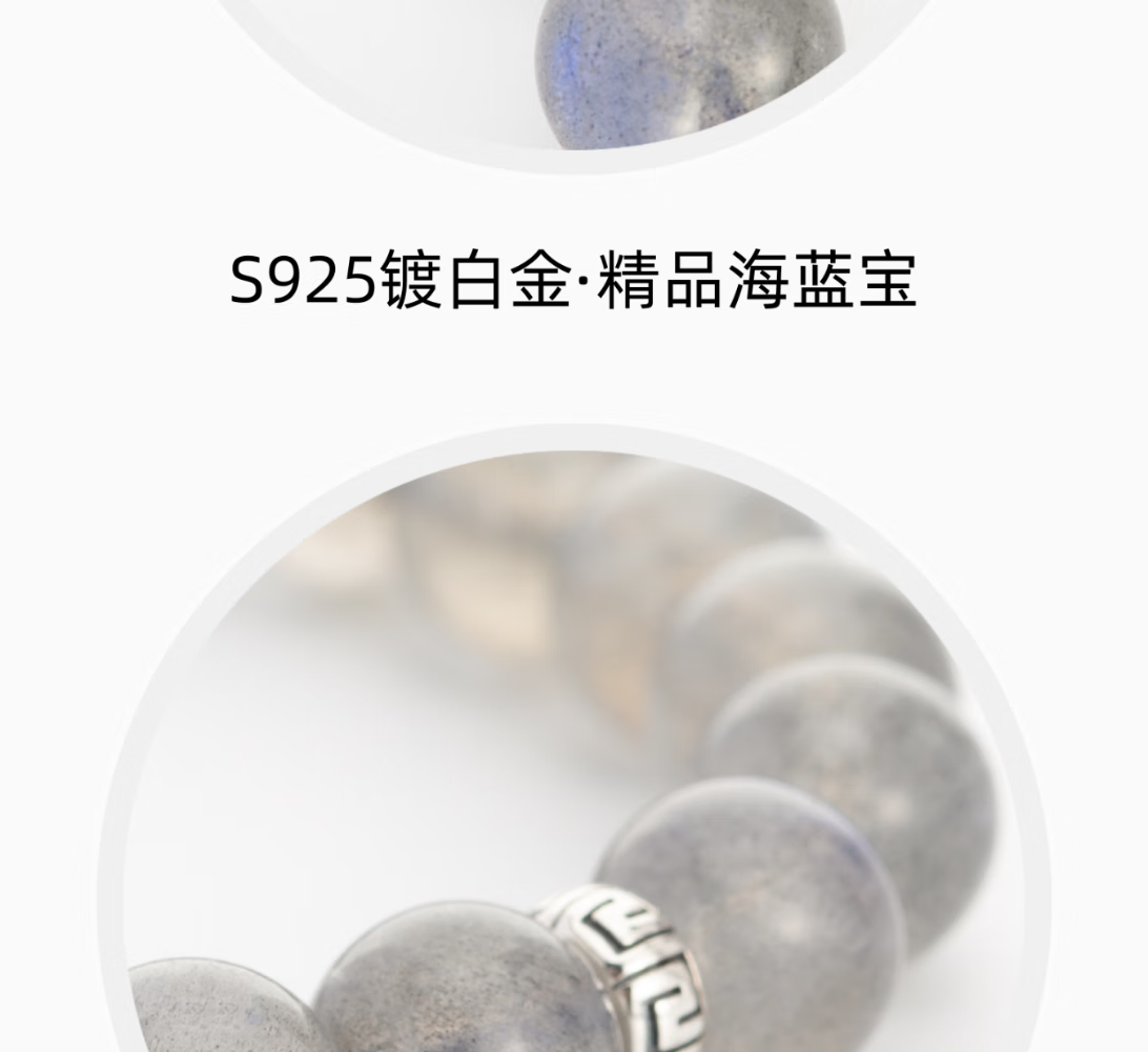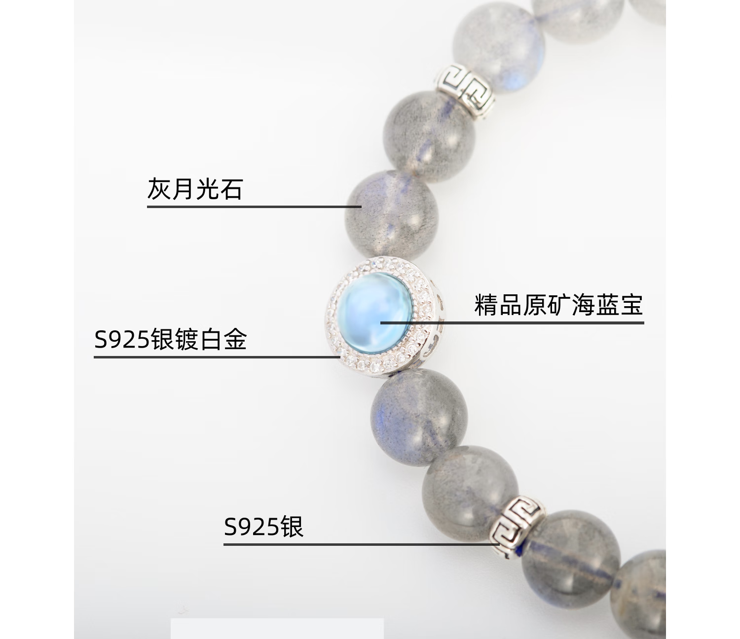 BON CIUS Baozhe Silver Labradorite Bracelet S925 Silver Aquamarine Gray Moonlight Bracelet Bracelet Jade Hand Inlaid Gift Bracelet S925 Inlaid Aquamarine + Gray Moonlight 15cm
