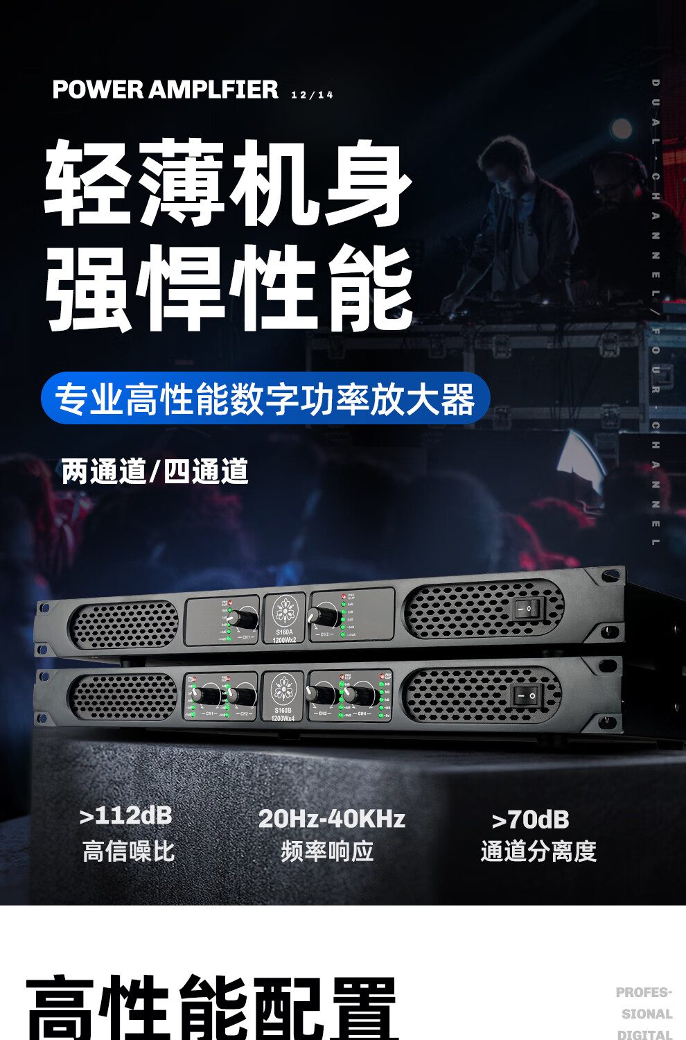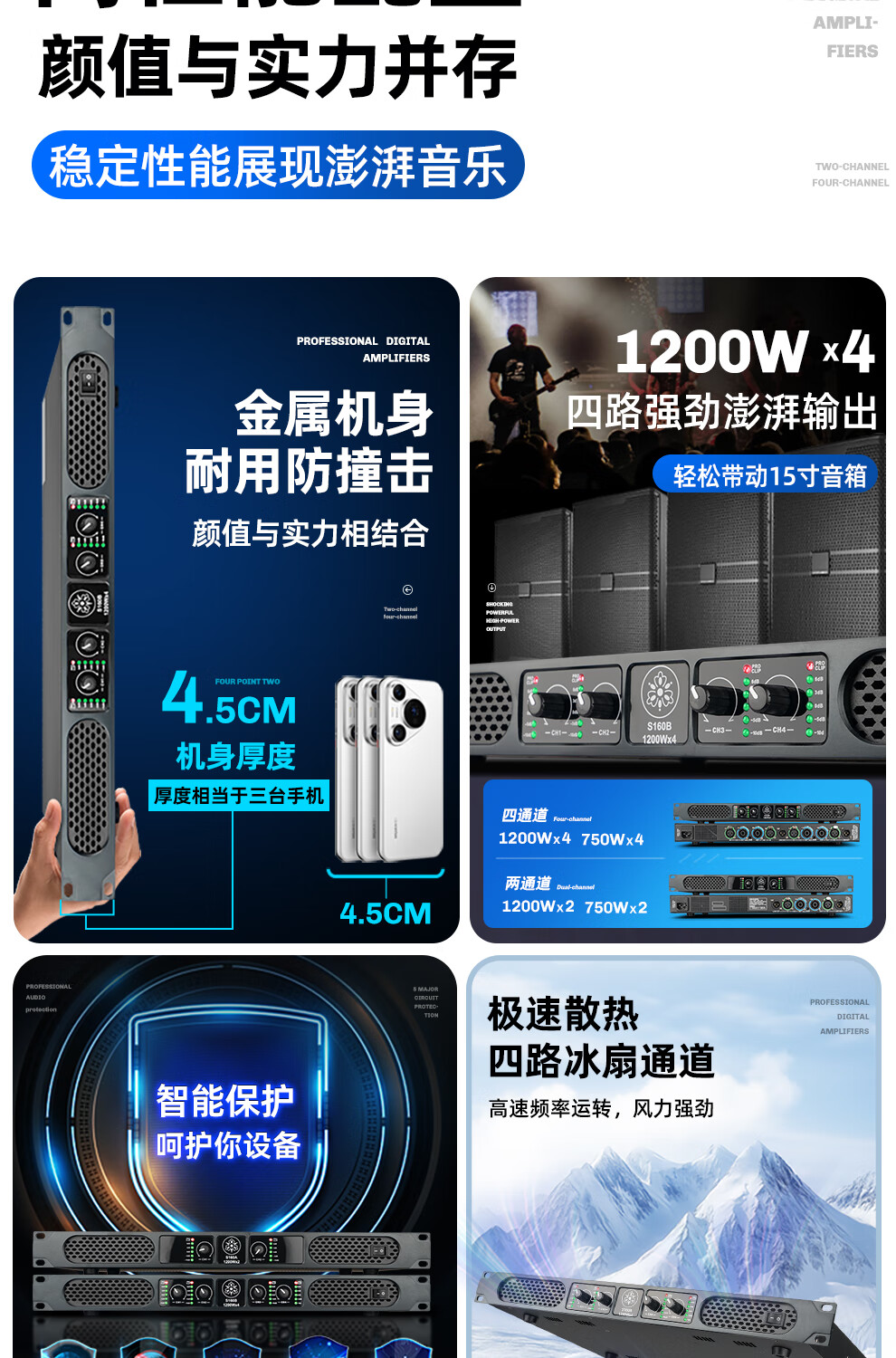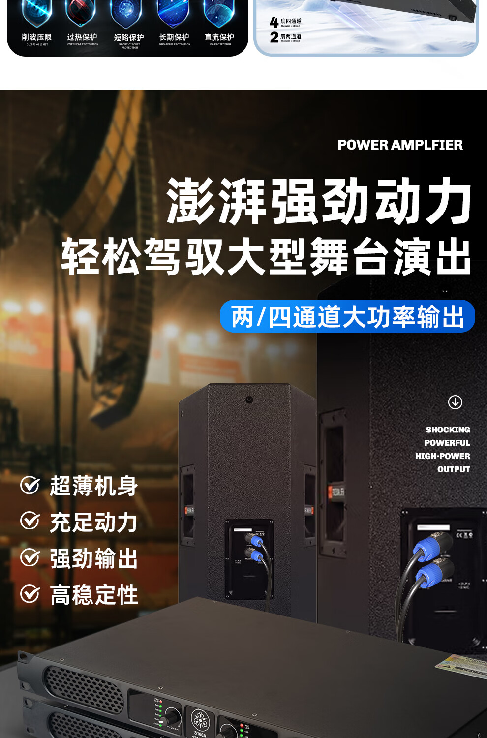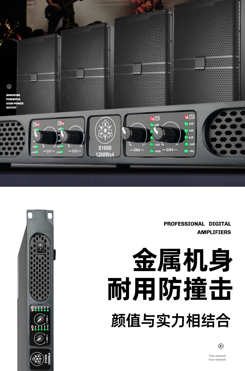 ZUU's new digital power amplifier pure post-stage high-power four-channel stage home professional karaoke high-end home audio KTV S180B power amplifier 2000W*4 dual 15-inch speakers