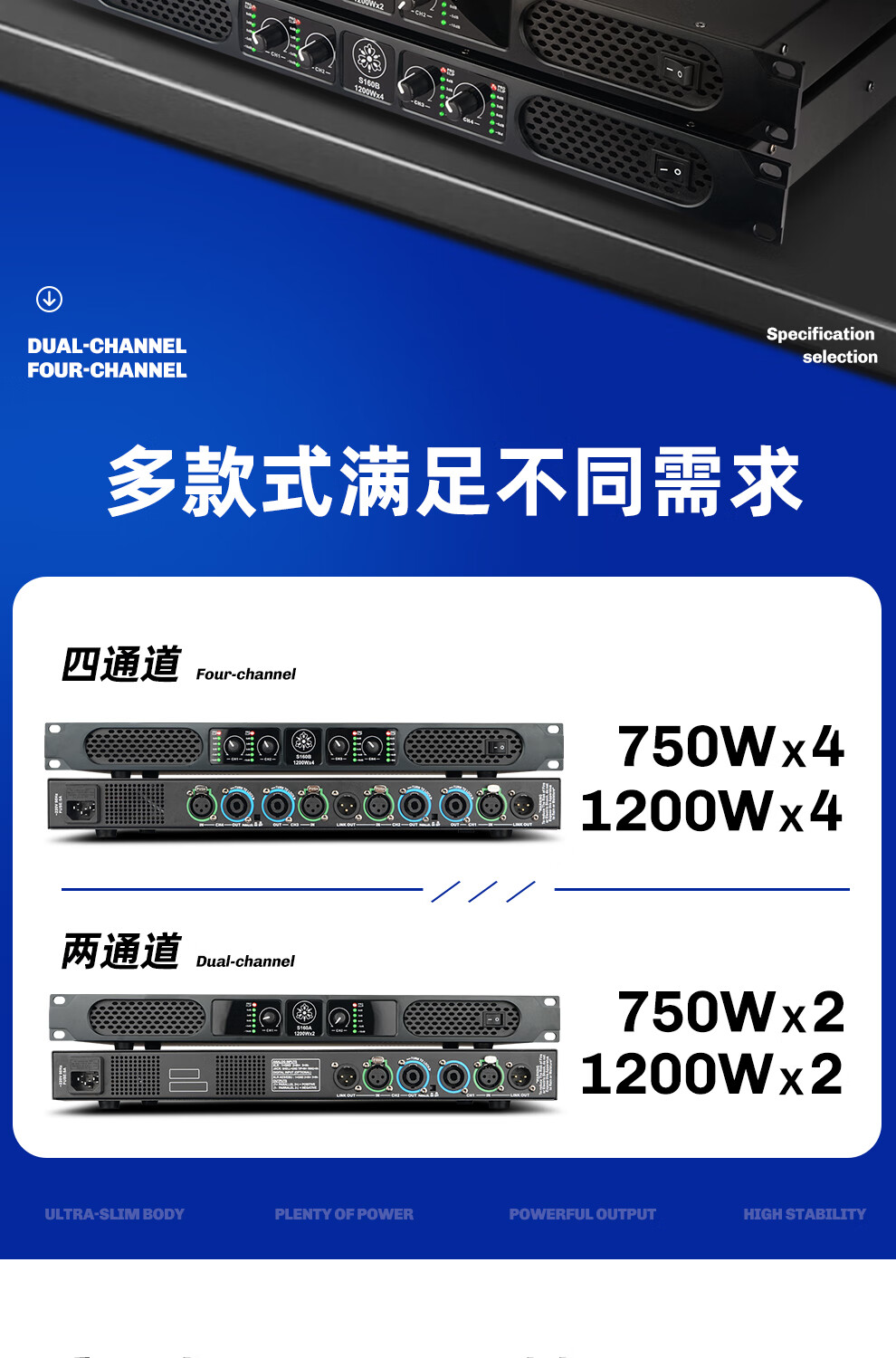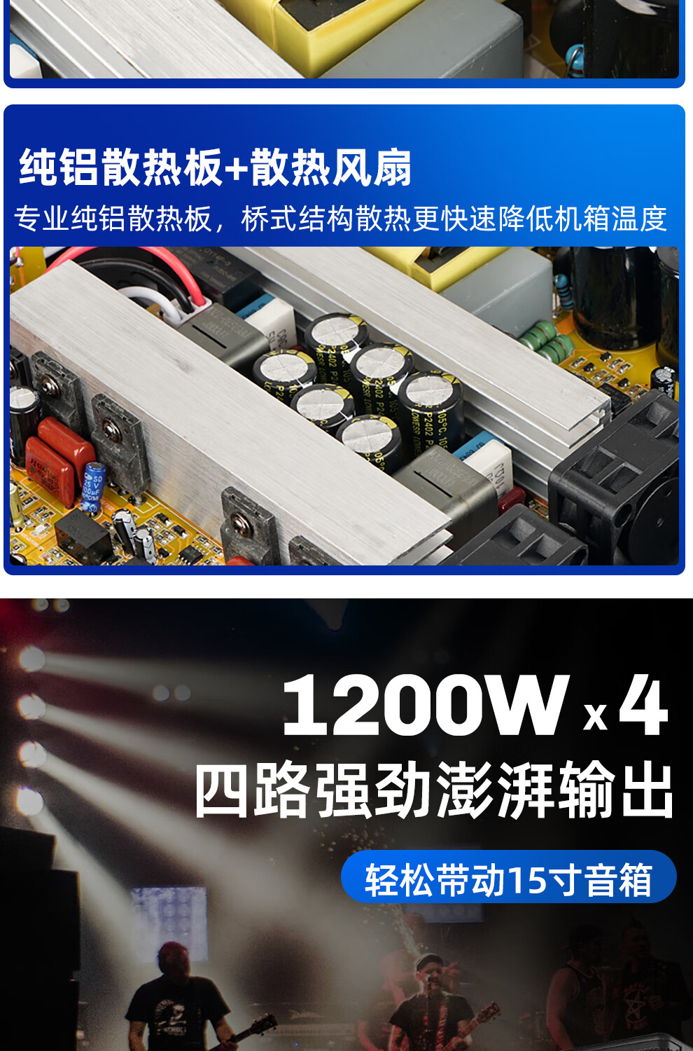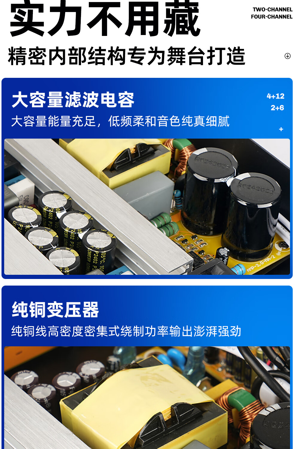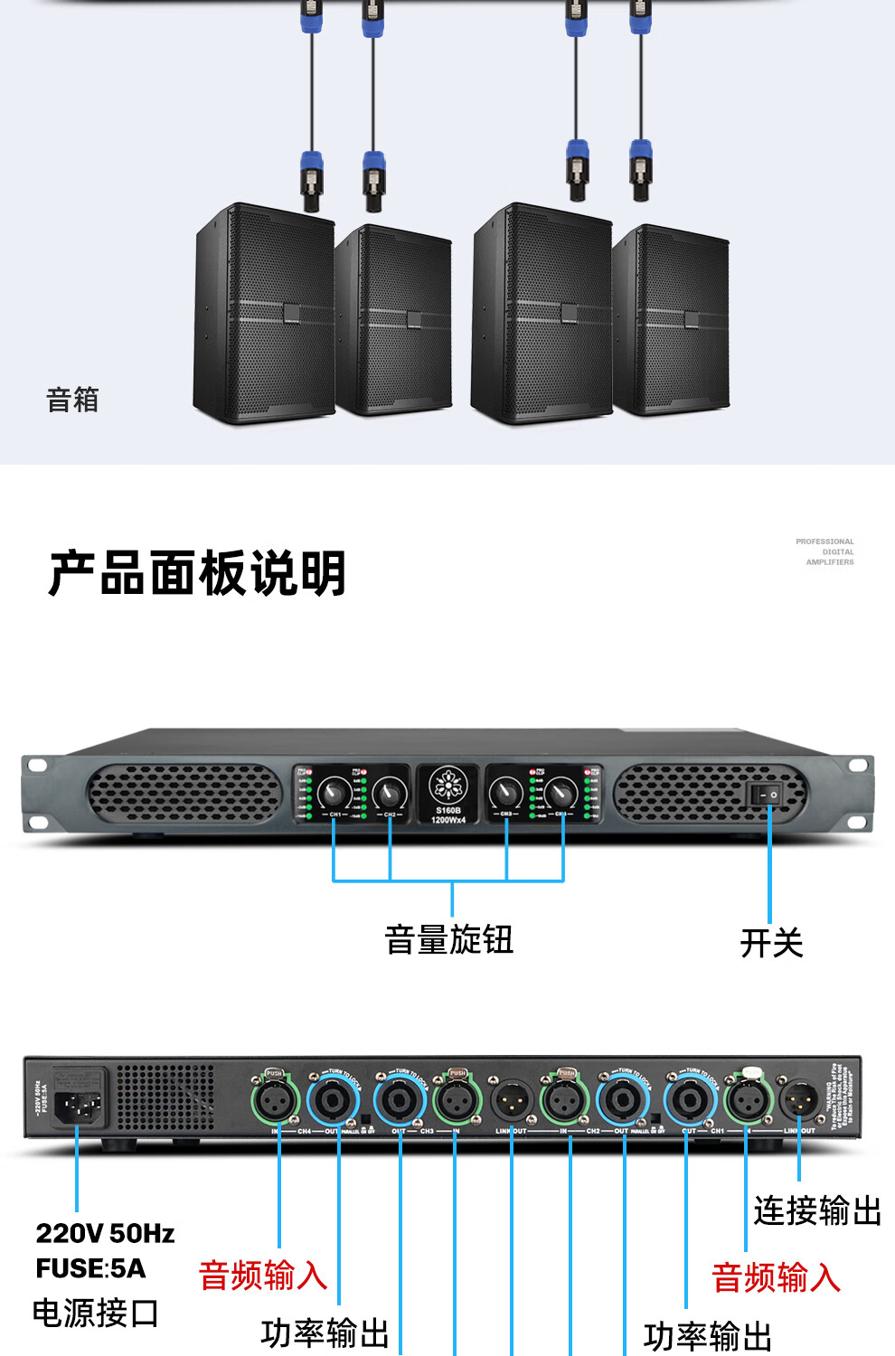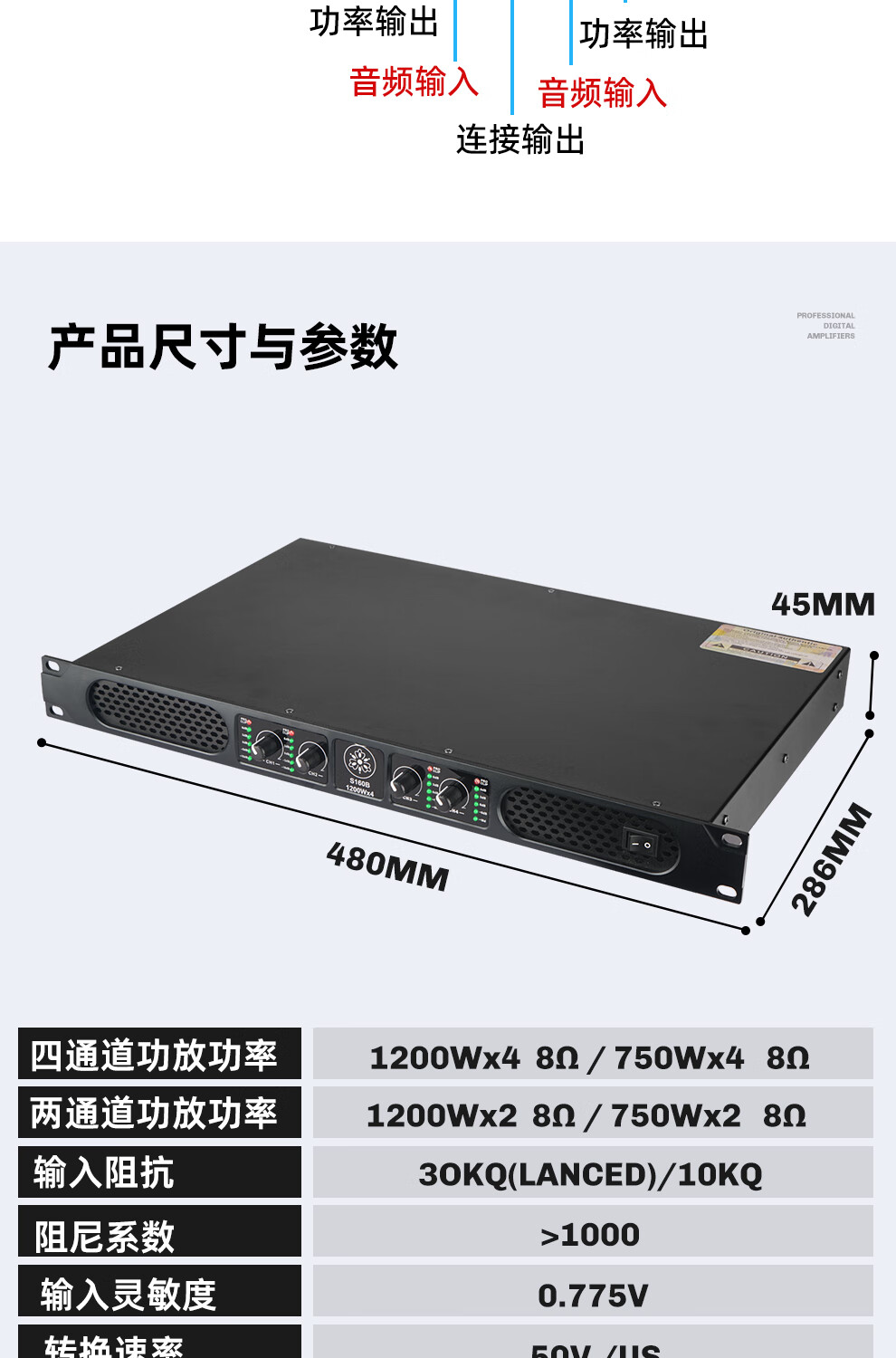 ZUU's new digital power amplifier pure post-stage high-power four-channel stage home professional karaoke high-end home audio KTV S180B power amplifier 2000W*4 dual 15-inch speakers