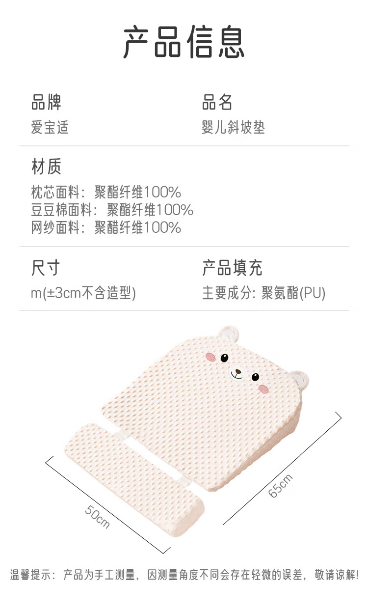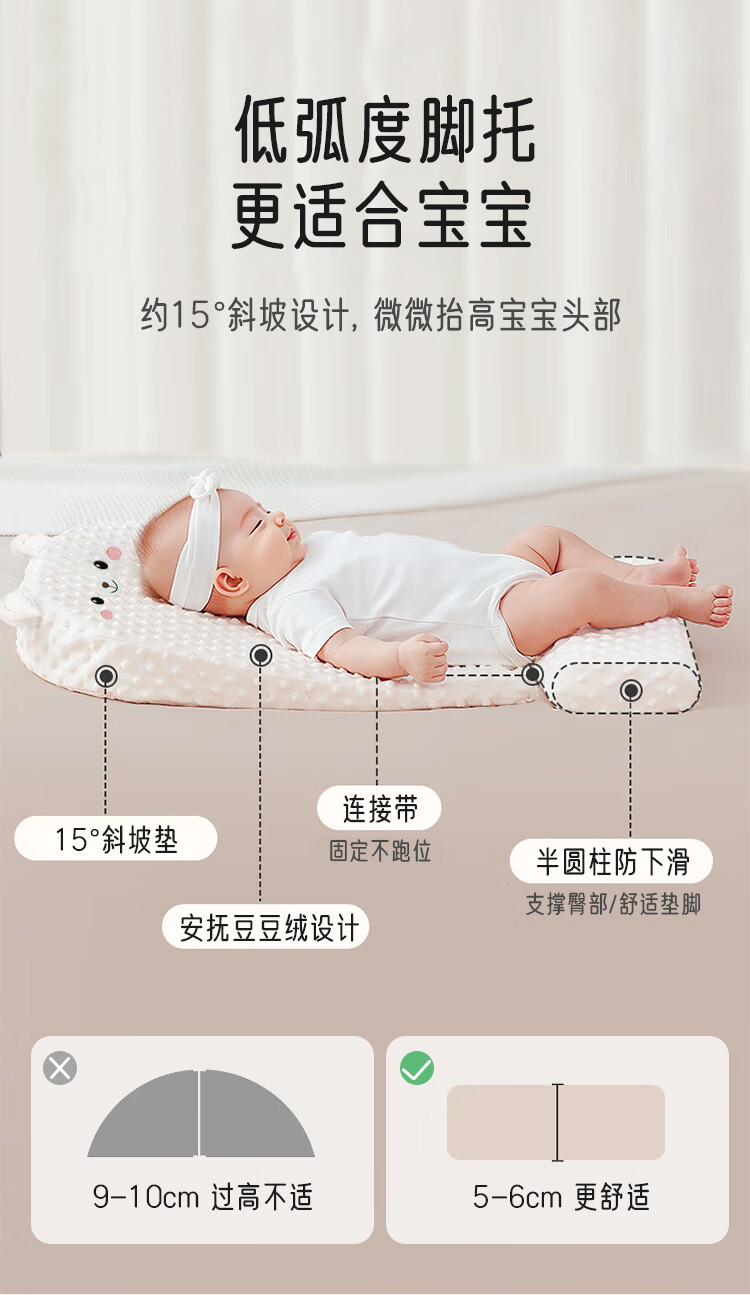 Aiboshi Slope Pillow Infant and Toddler Pad to Prevent Baby Vomiting Newborn Breastfeeding Lying Baby Pillow 0-3 Years Old Nursing Slope Pillow 0-3 Years Old Upgrade Slope + Leg Drag