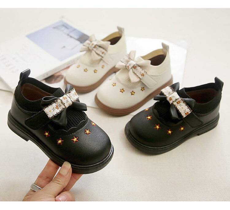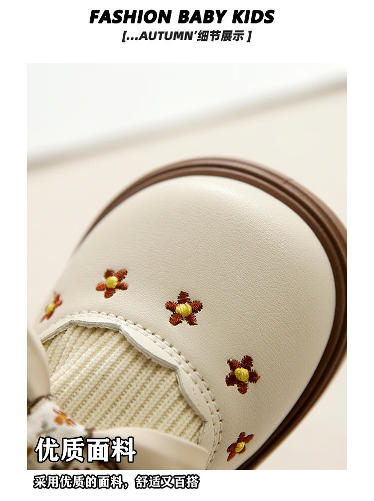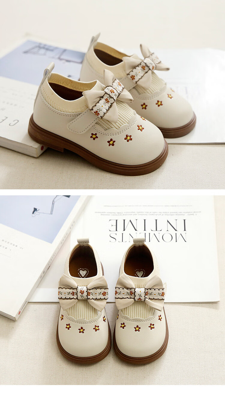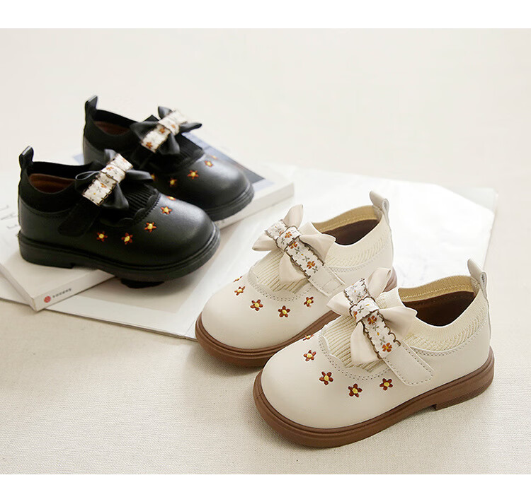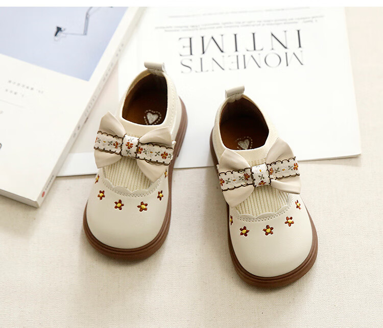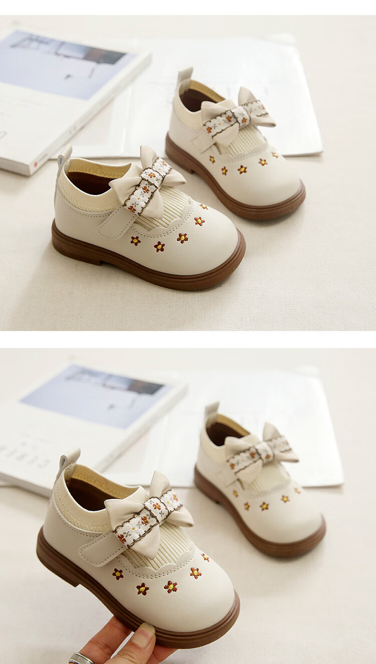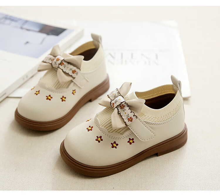 G.duck Little Yellow Duck Girls Leather Shoes Autumn New Baby Elastic Band Bow Single Shoes Soft Soled Princess Shoes Kindergarten Shoes Off-White 20 Inner Length 13cm