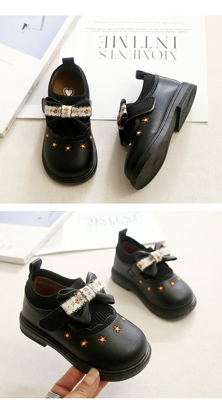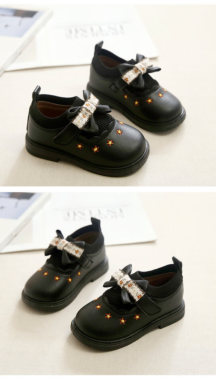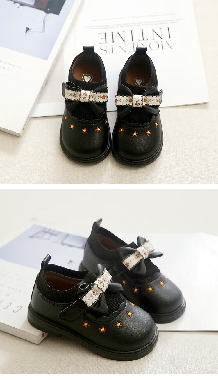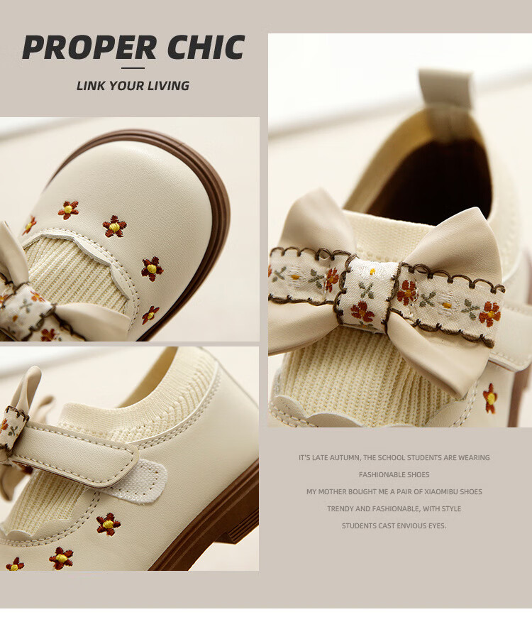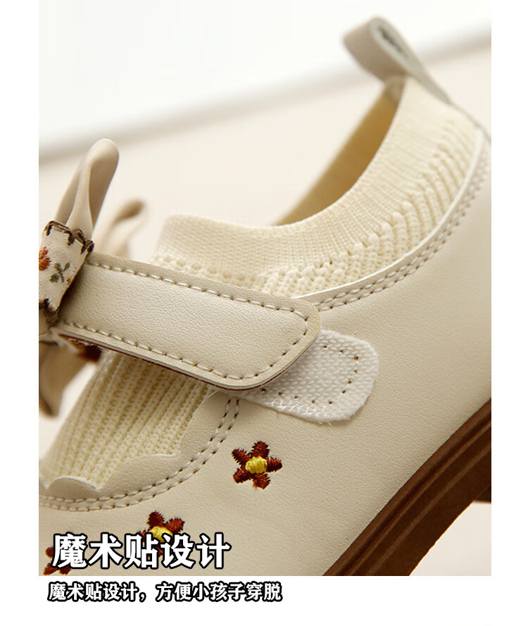 G.duck Little Yellow Duck Girls Leather Shoes Autumn New Baby Elastic Band Bow Single Shoes Soft Soled Princess Shoes Kindergarten Shoes Off-White 20 Inner Length 13cm