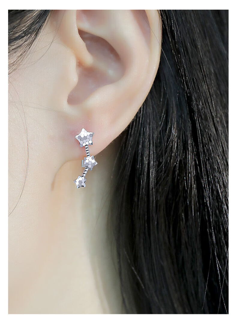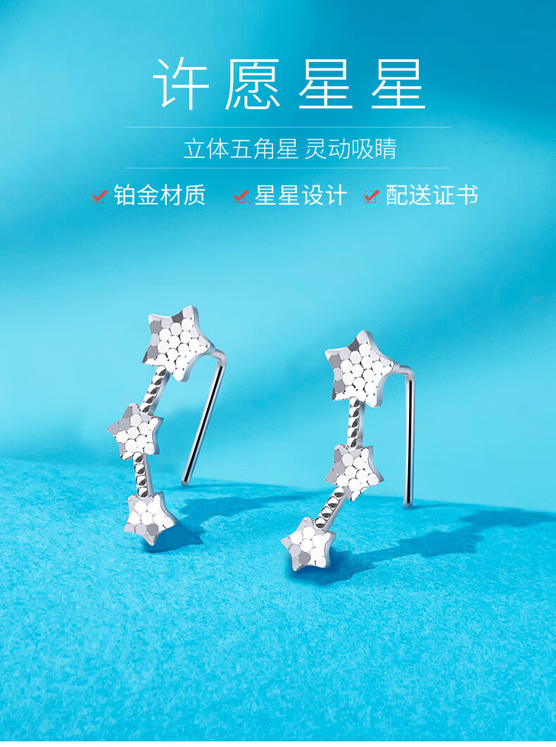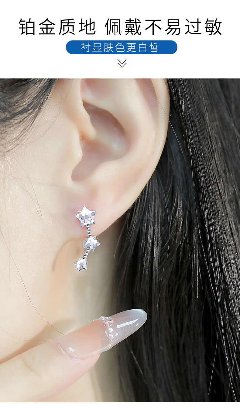 Love pt950 platinum earrings for women platinum earrings sparkling wishing star earrings wedding birthday gift for girlfriend and wife a pair of wishing star earrings + heart-shaped gift box