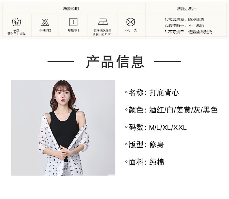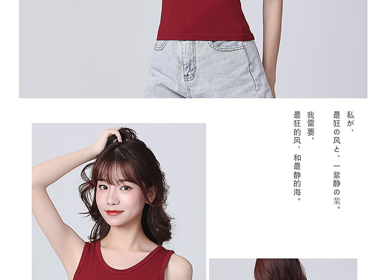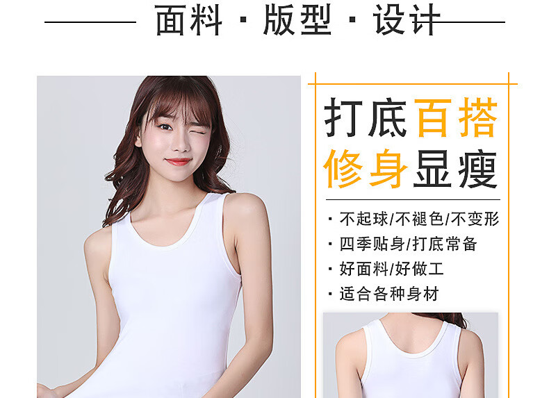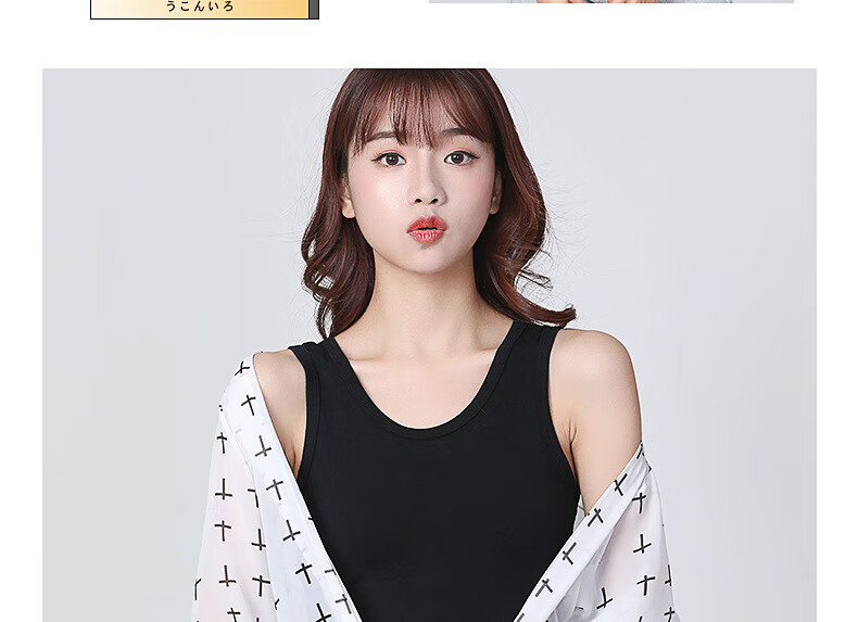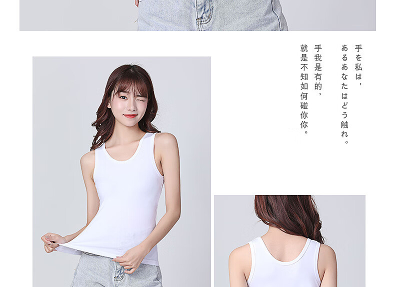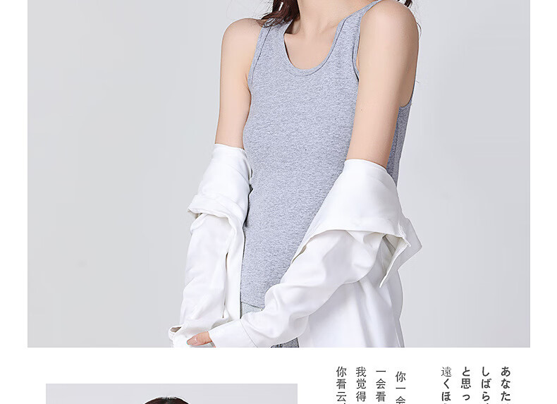 KMKQ Vest Women's Summer 96 Cotton White Suspension Thin Racer Top Long Sleeveless T-shirt Women's Inner Ginger S