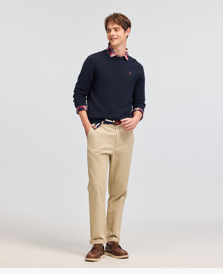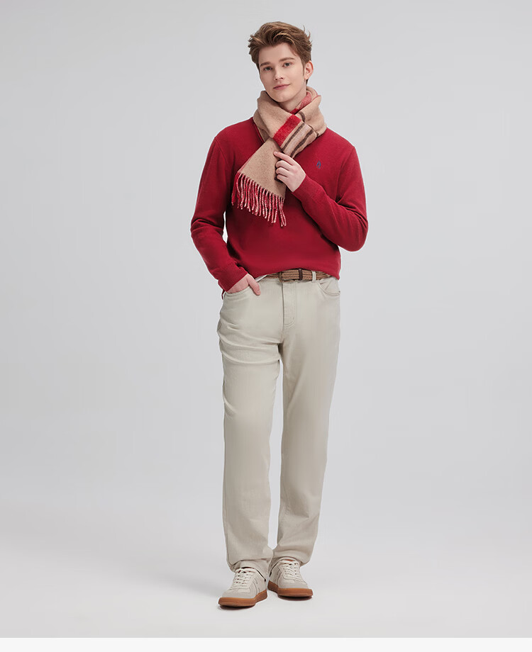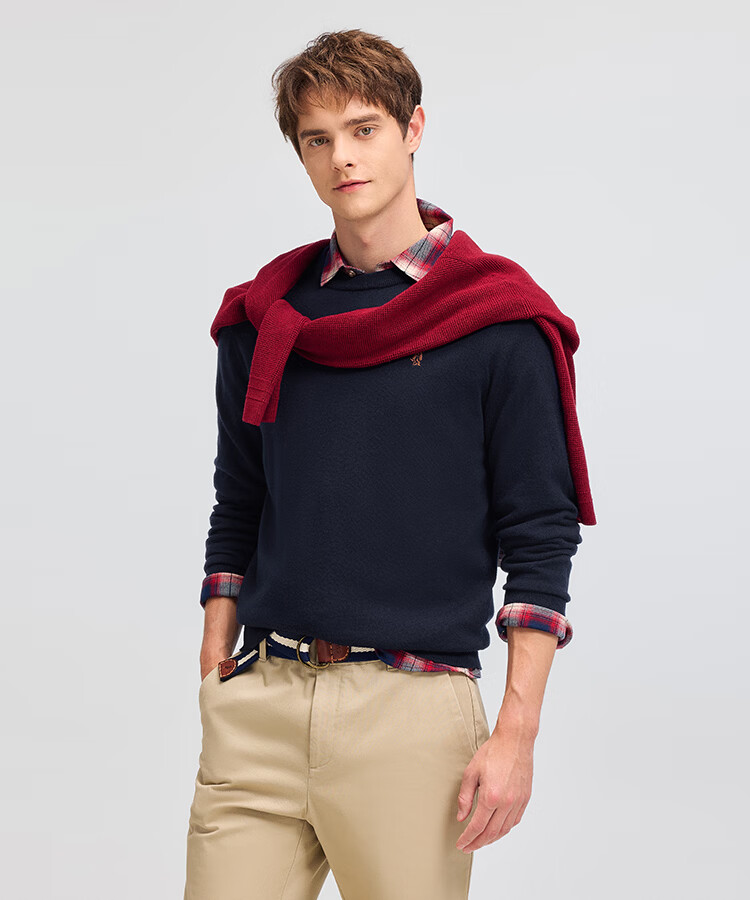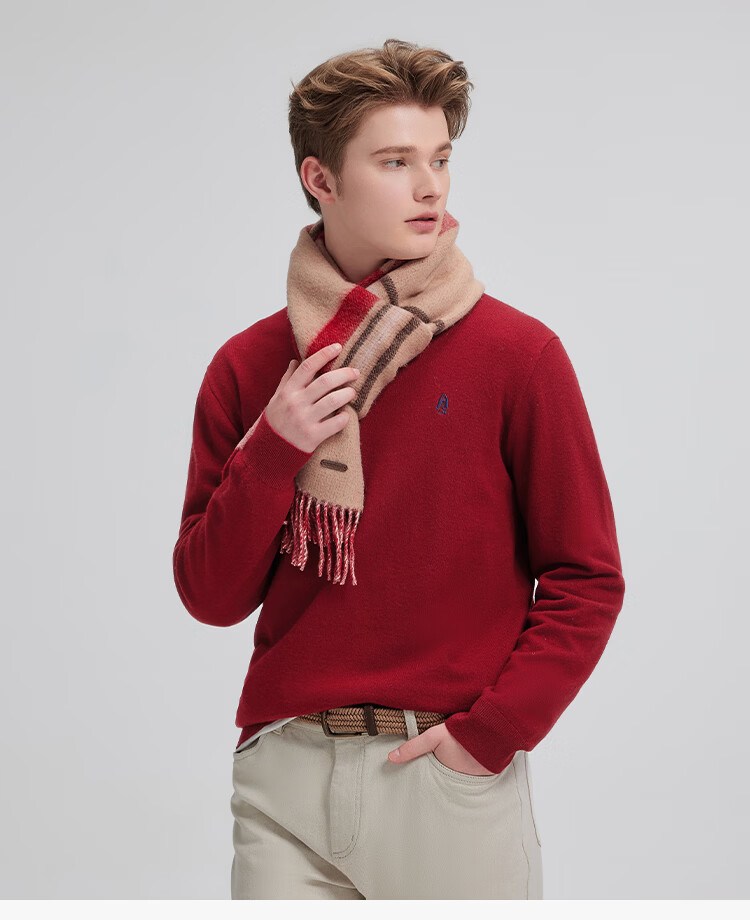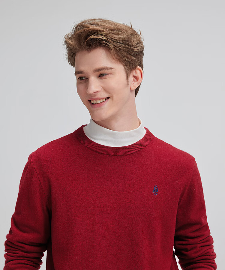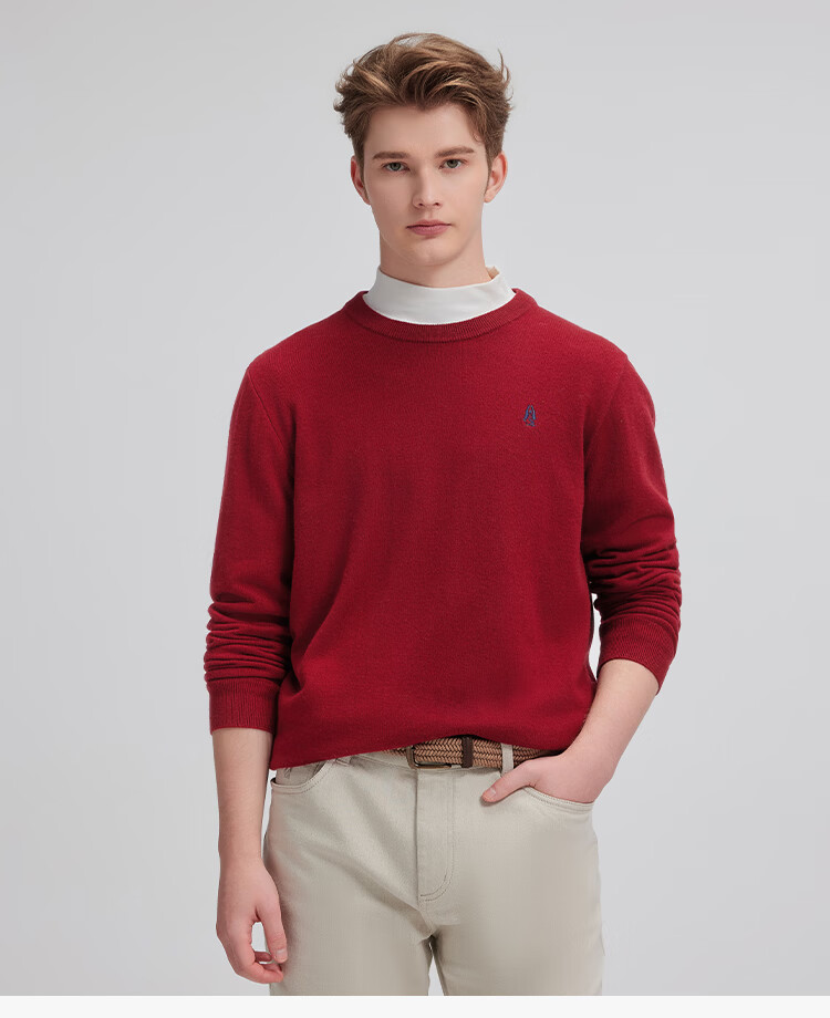 Hush Puppies soft and light men's autumn and winter simple warm and comfortable pullover cardigan red L
