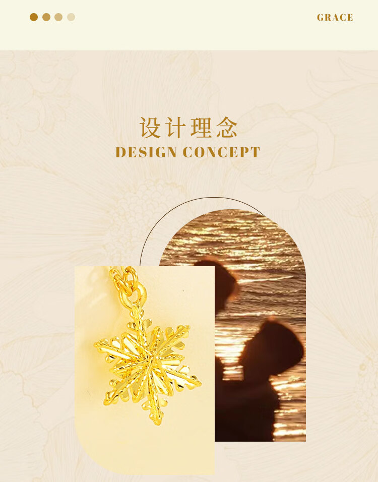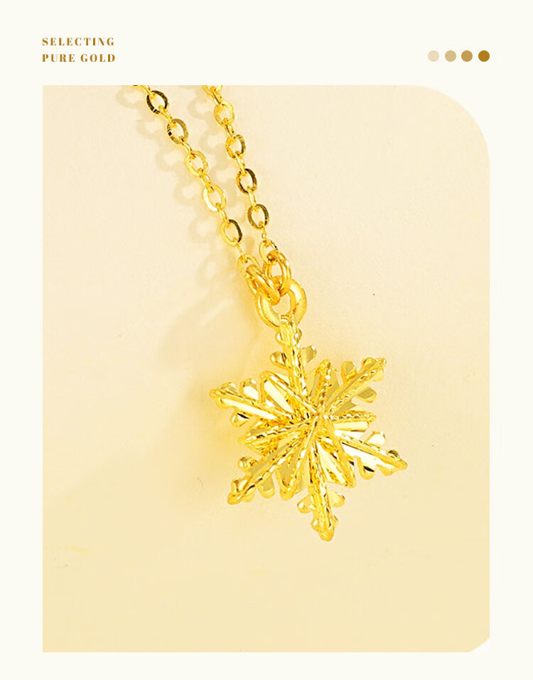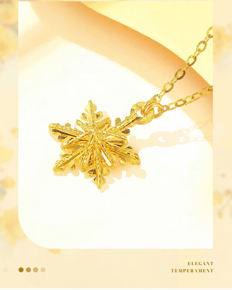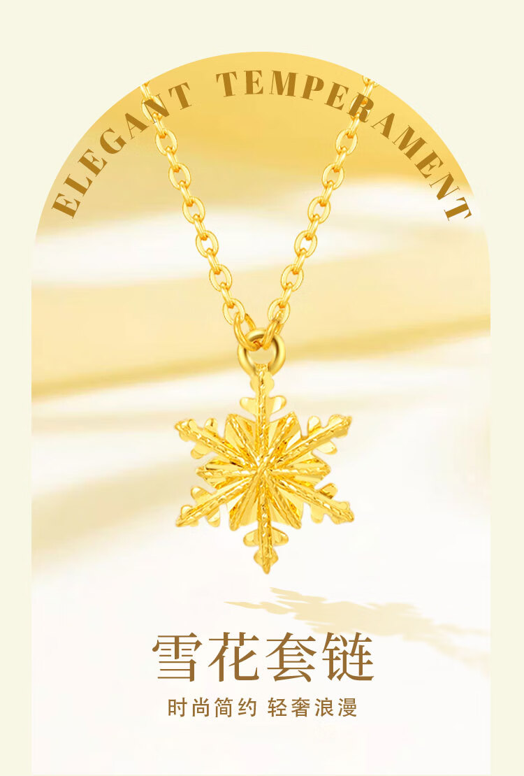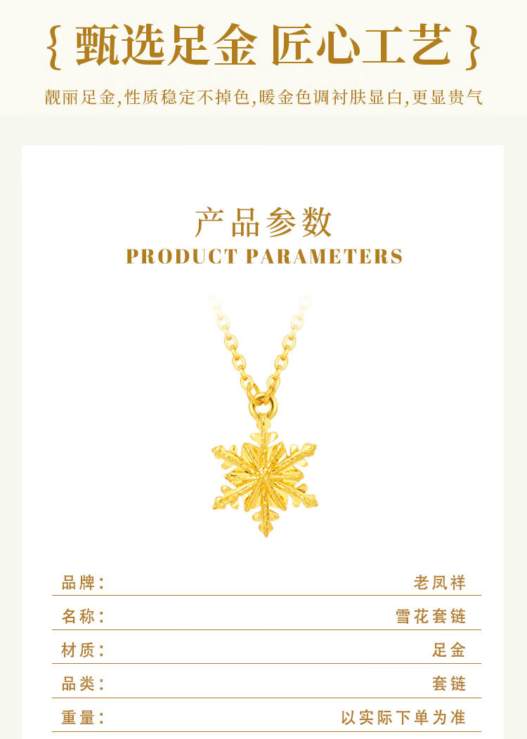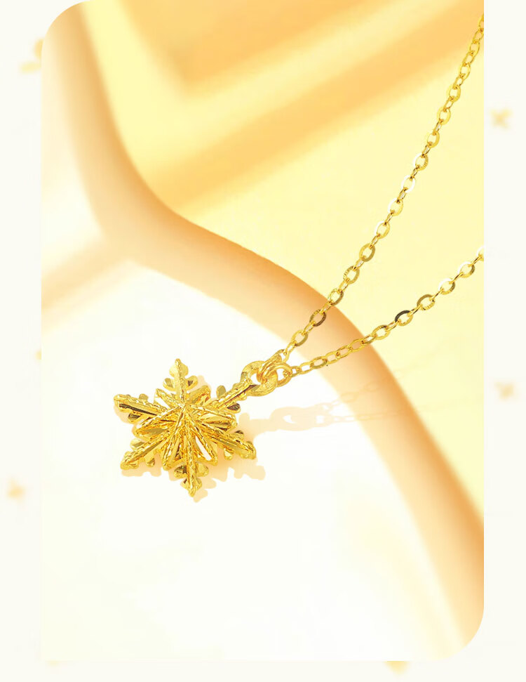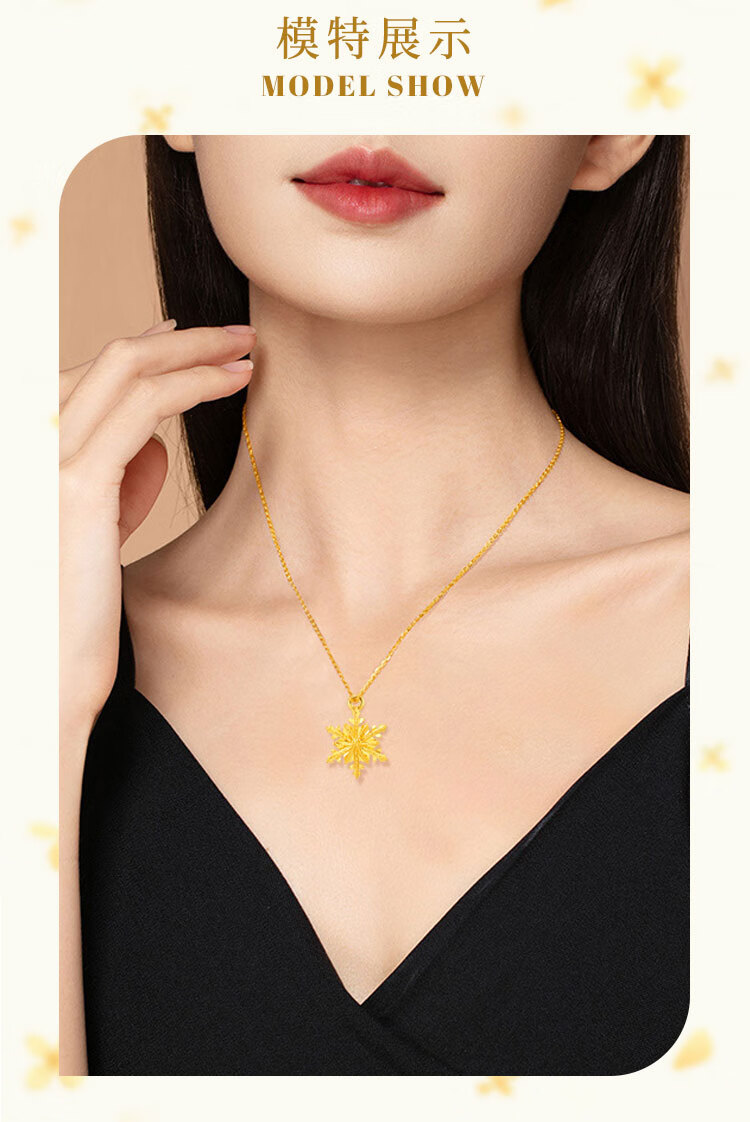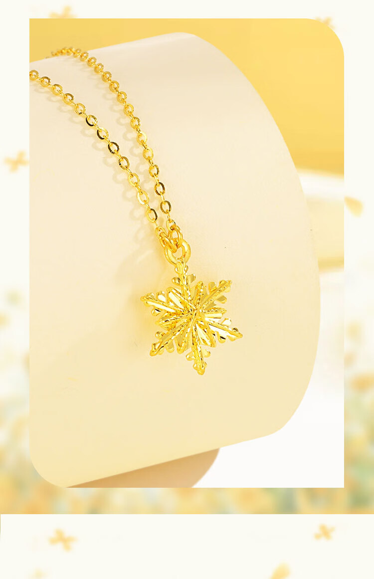 Lao Fengxiang gold snowflake set chain for women, versatile pure gold pendant necklace jewelry, Valentine's Day birthday gift for girlfriend and wife, snowflake set chain, about 2.3g