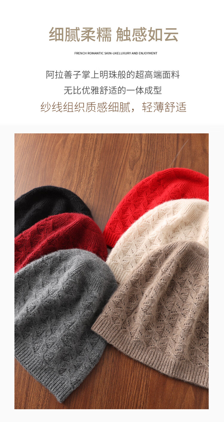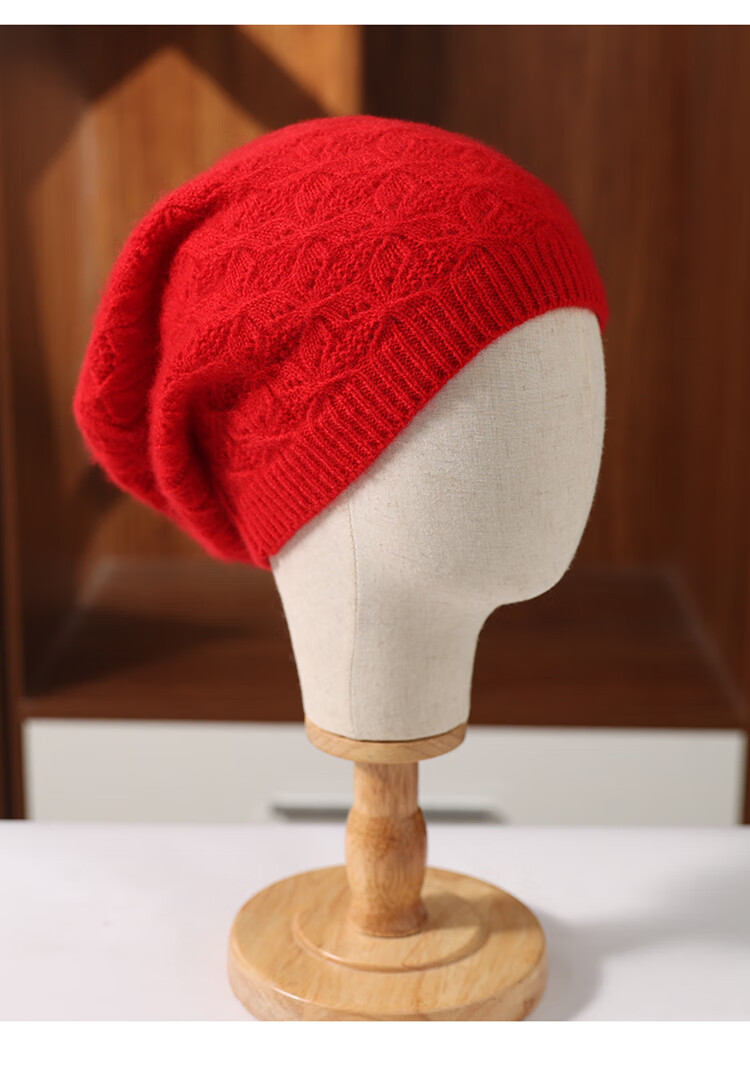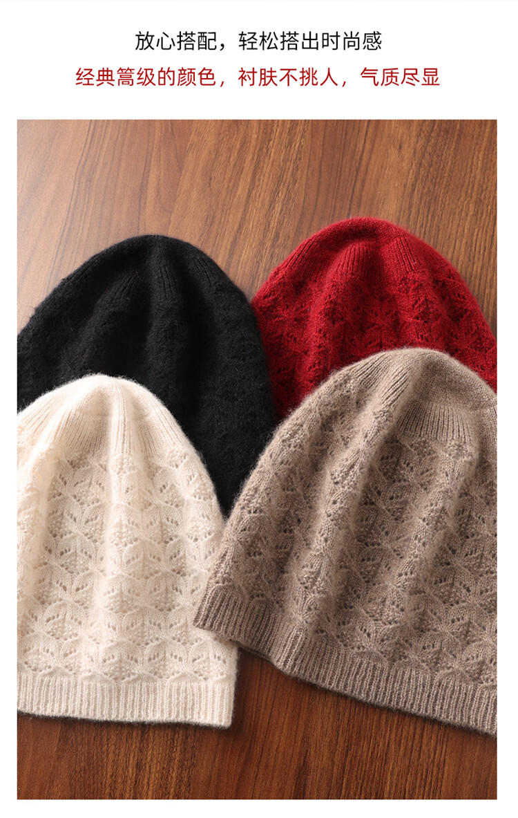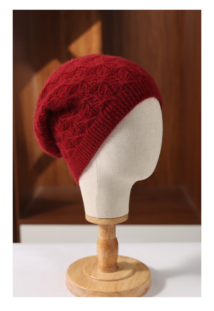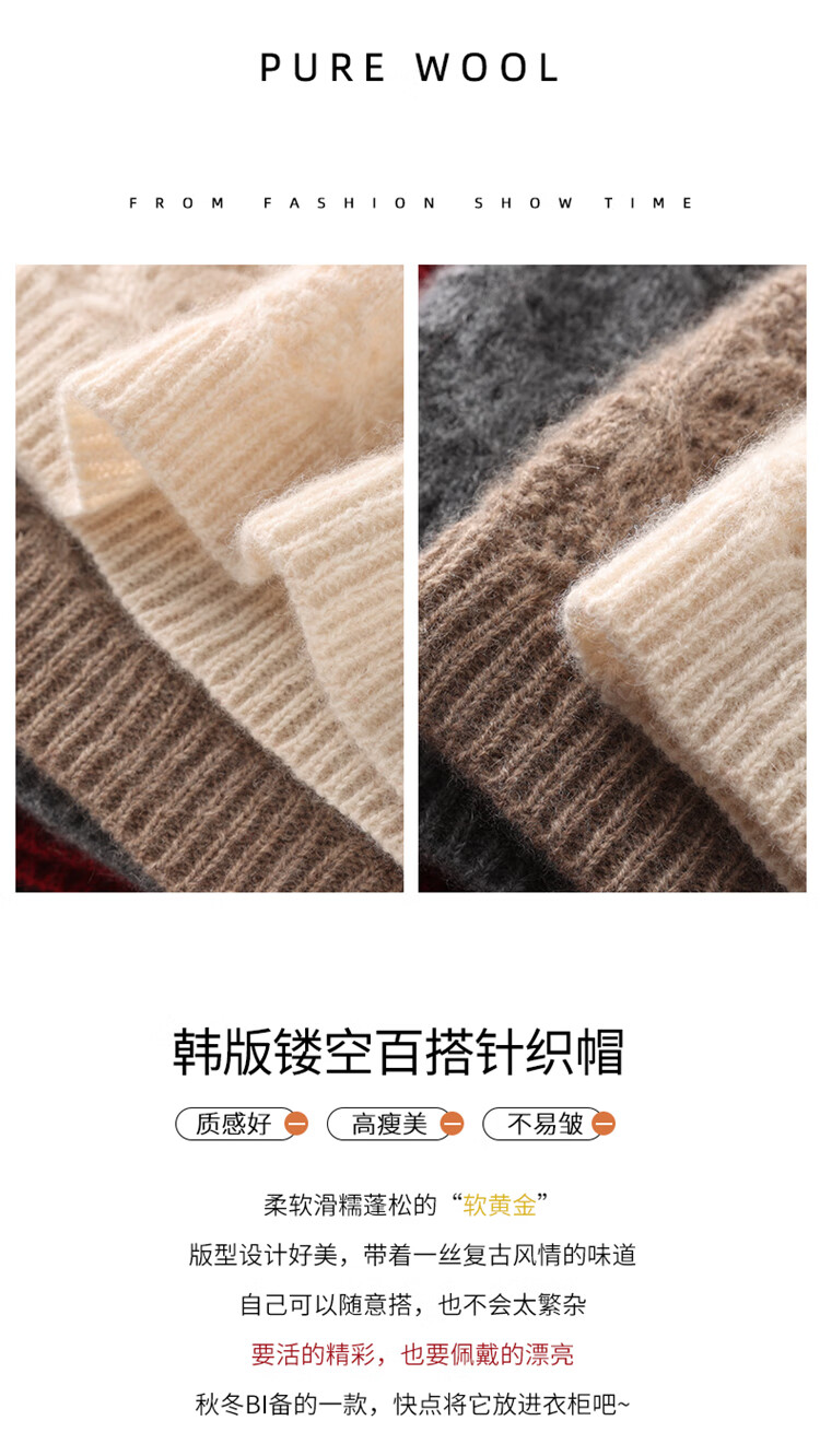 Hengyuanxiang 100% pure wool women's autumn and winter Korean style hollowed out warm and cold-proof casual versatile trendy confinement Baotou woolen wool hat burgundy one size