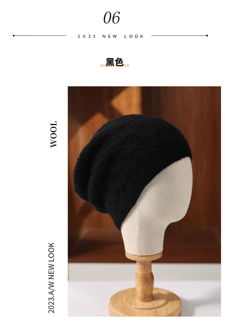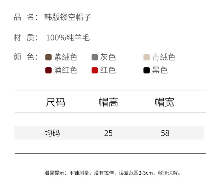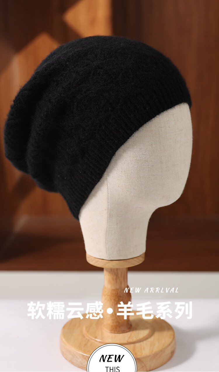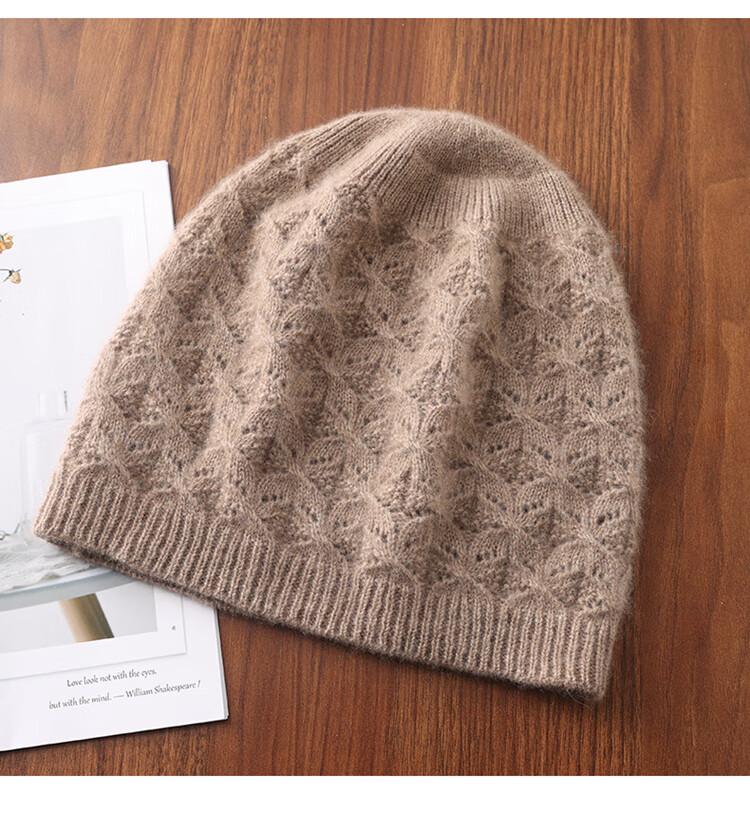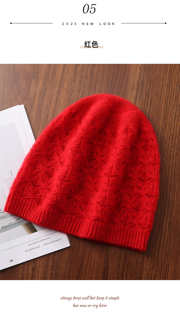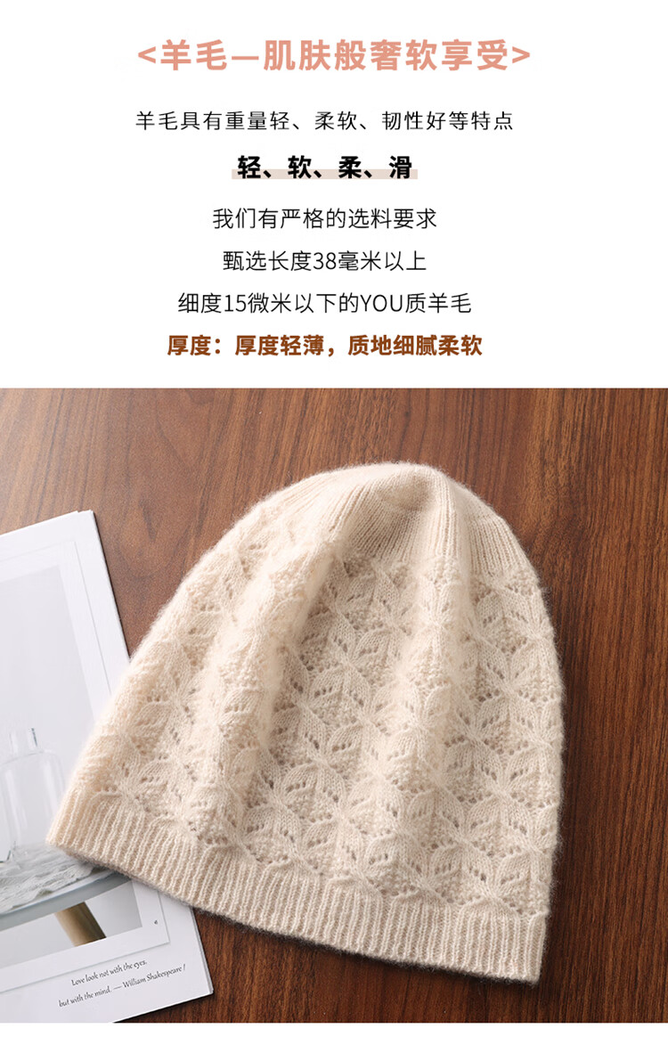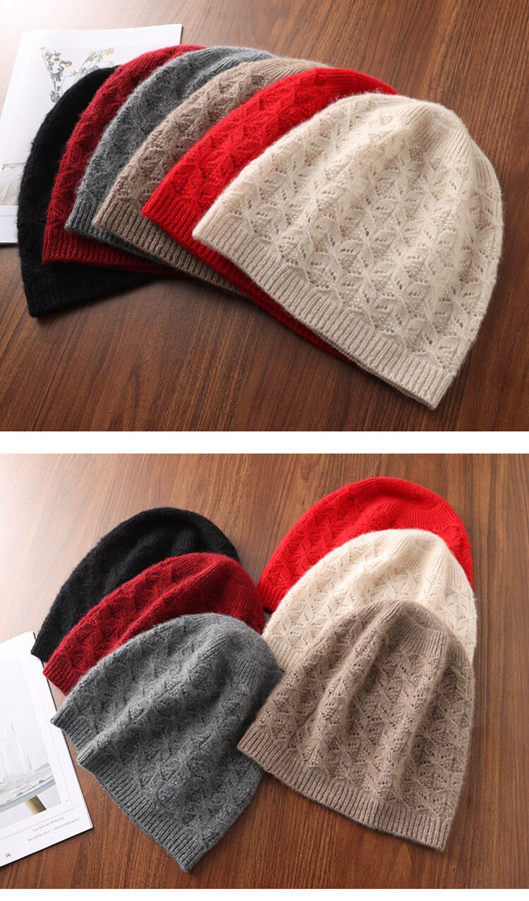 Hengyuanxiang 100% pure wool women's autumn and winter Korean style hollowed out warm and cold-proof casual versatile trendy confinement Baotou woolen wool hat burgundy one size