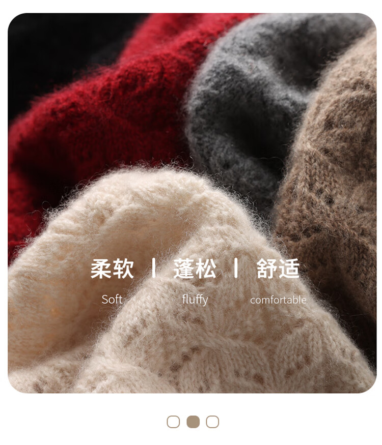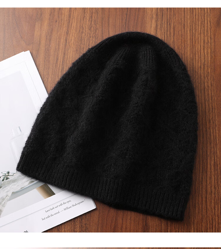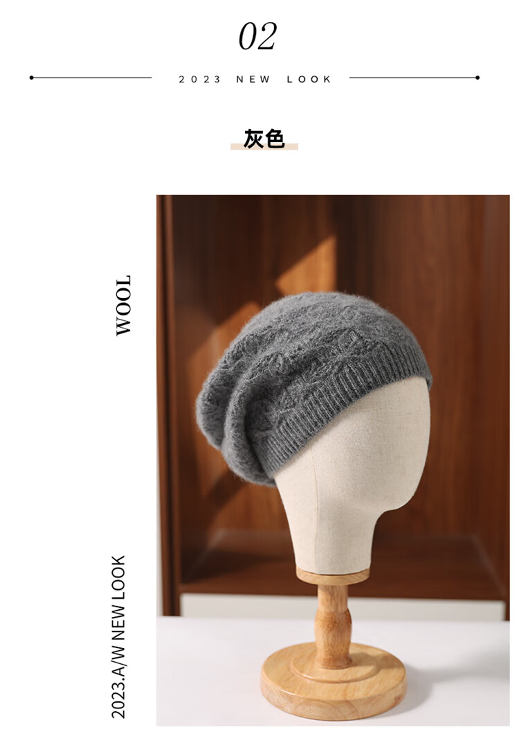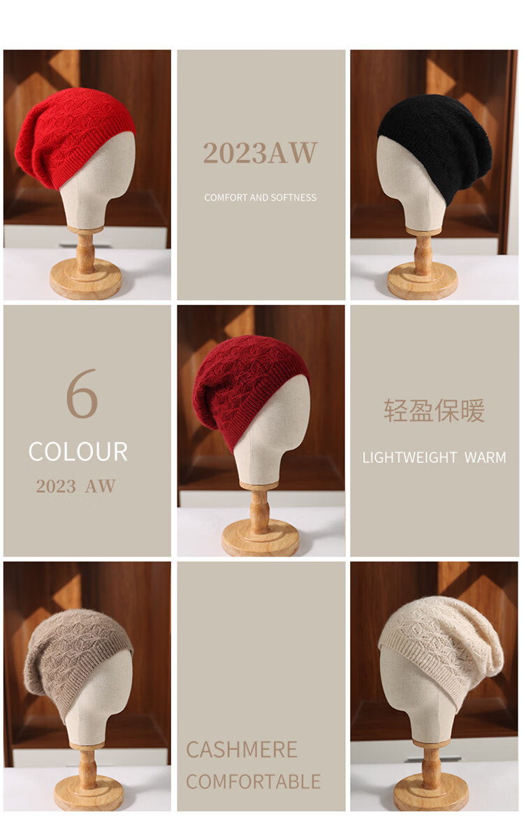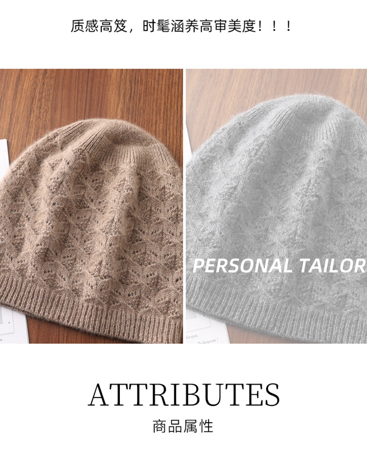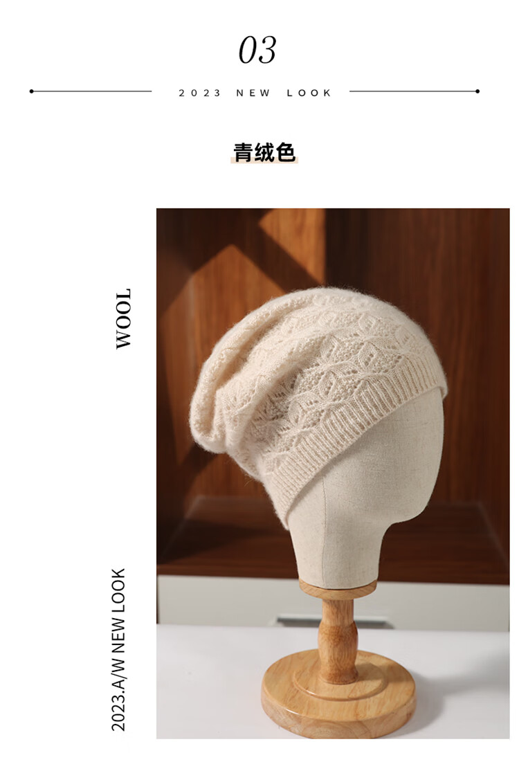 Hengyuanxiang 100% pure wool women's autumn and winter Korean style hollowed out warm and cold-proof casual versatile trendy confinement Baotou woolen wool hat burgundy one size