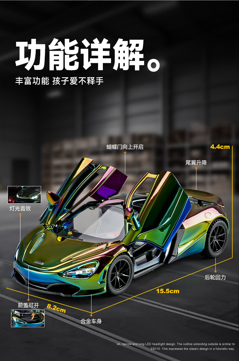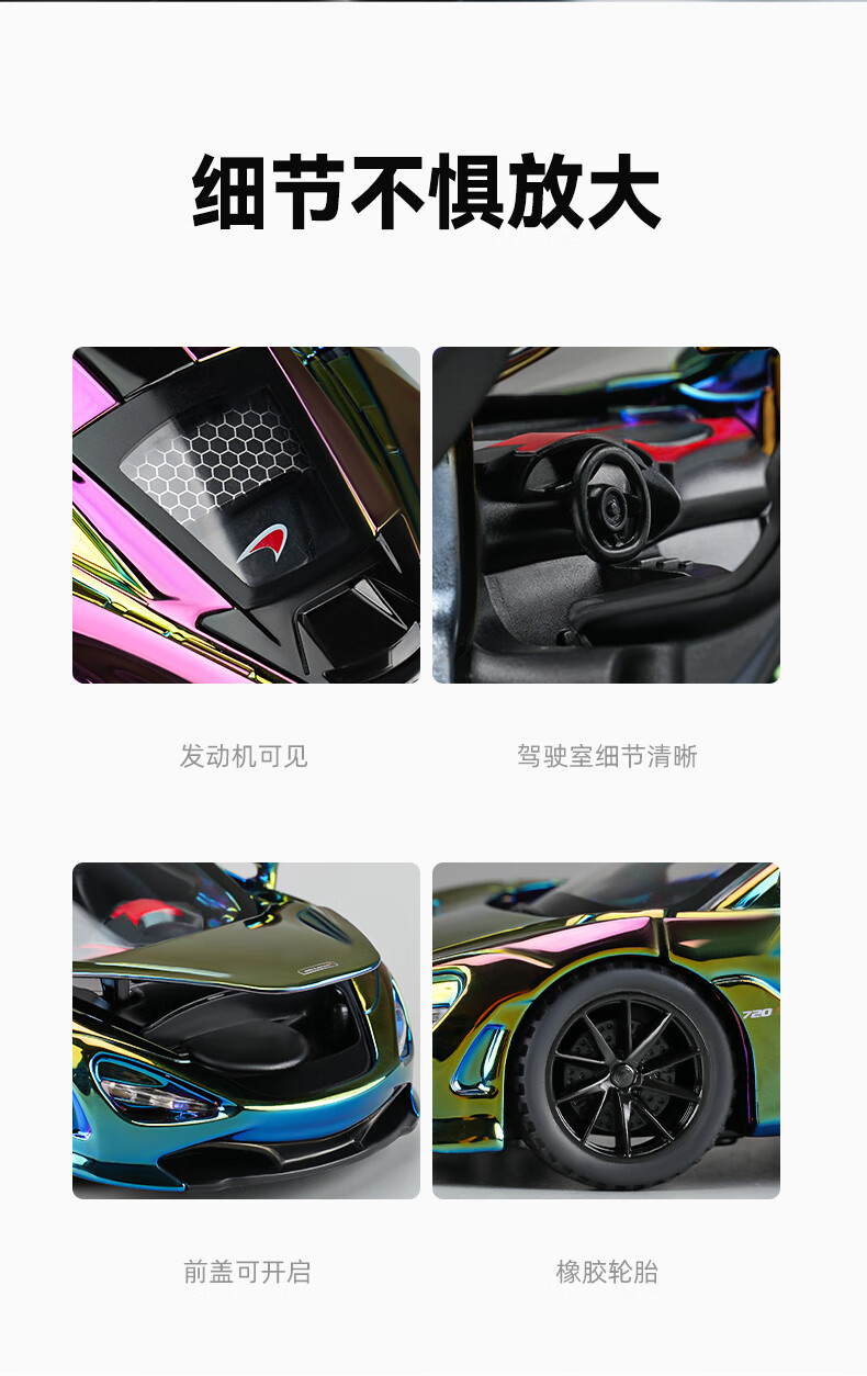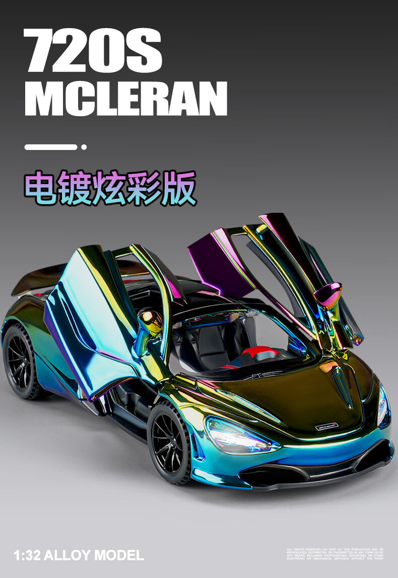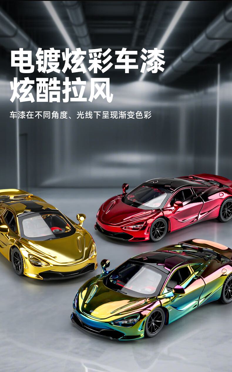 Kawei electroplated version red McLaren 720S sports car alloy car model children's toy car boy collection ornaments electroplated red