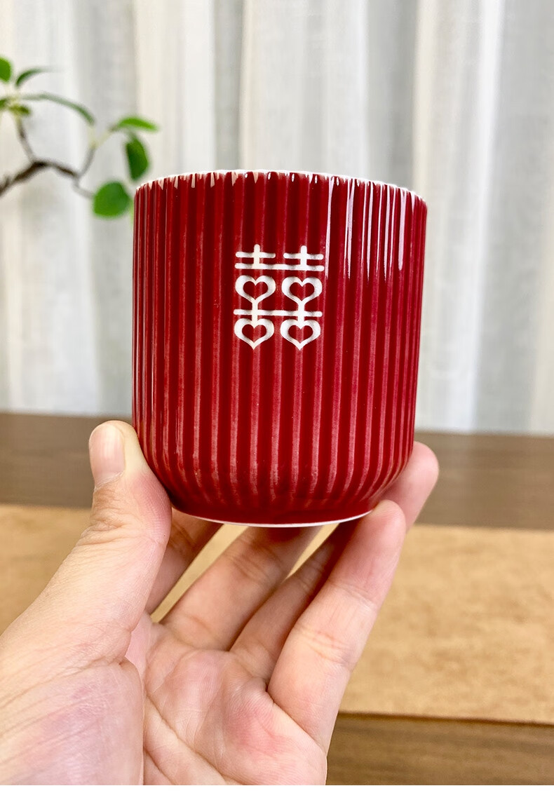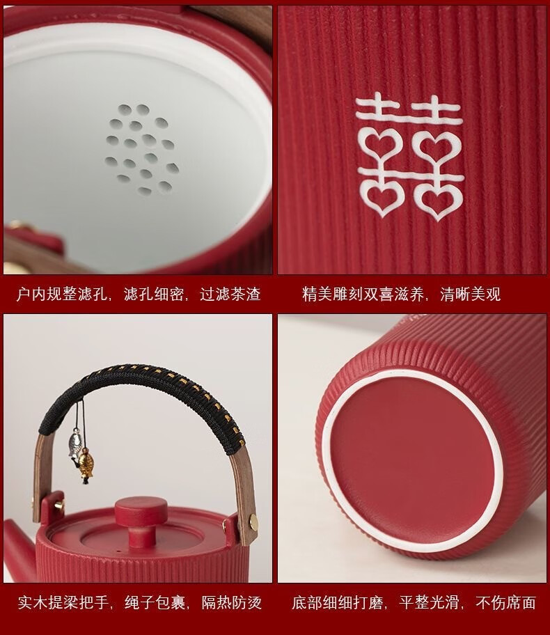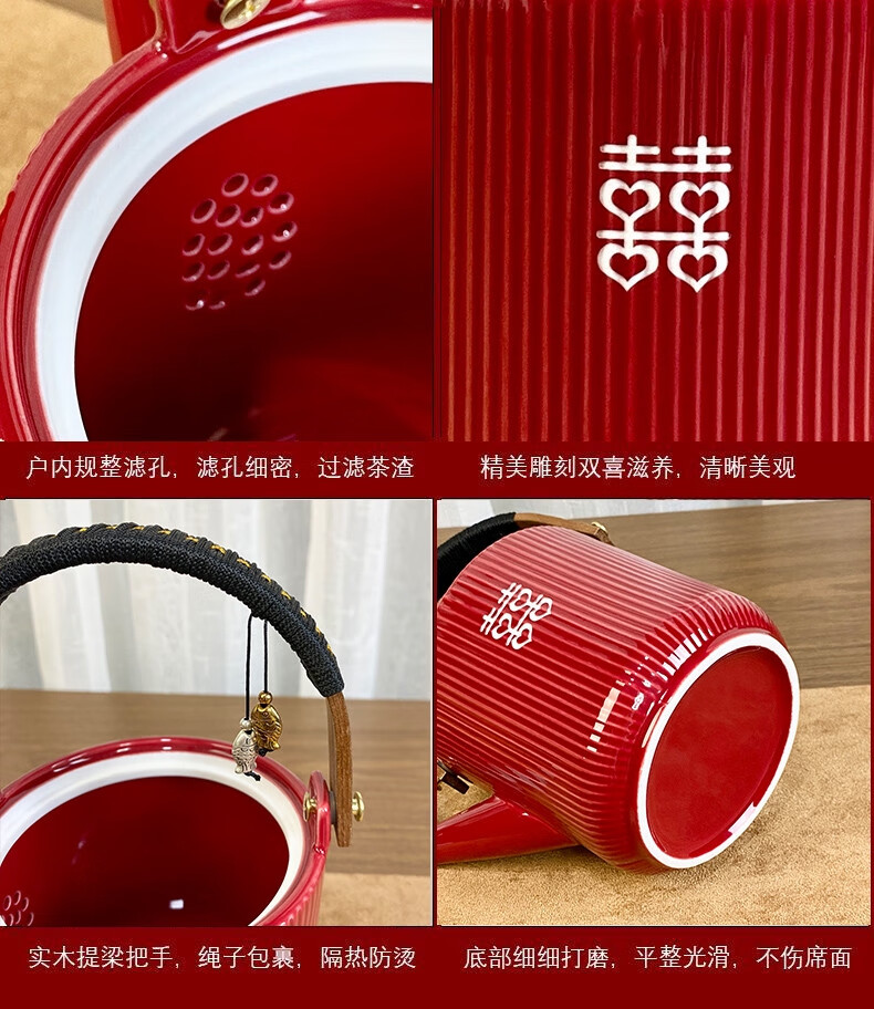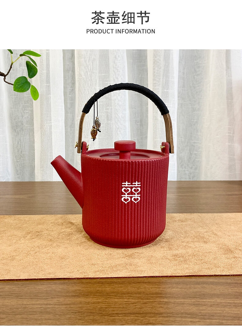Fantasy wedding tea set set red large teapot wedding cup newlywed tea cup engagement gift dowry gift frosted Pisces 1 pot 8 cups amine disc + suitcase