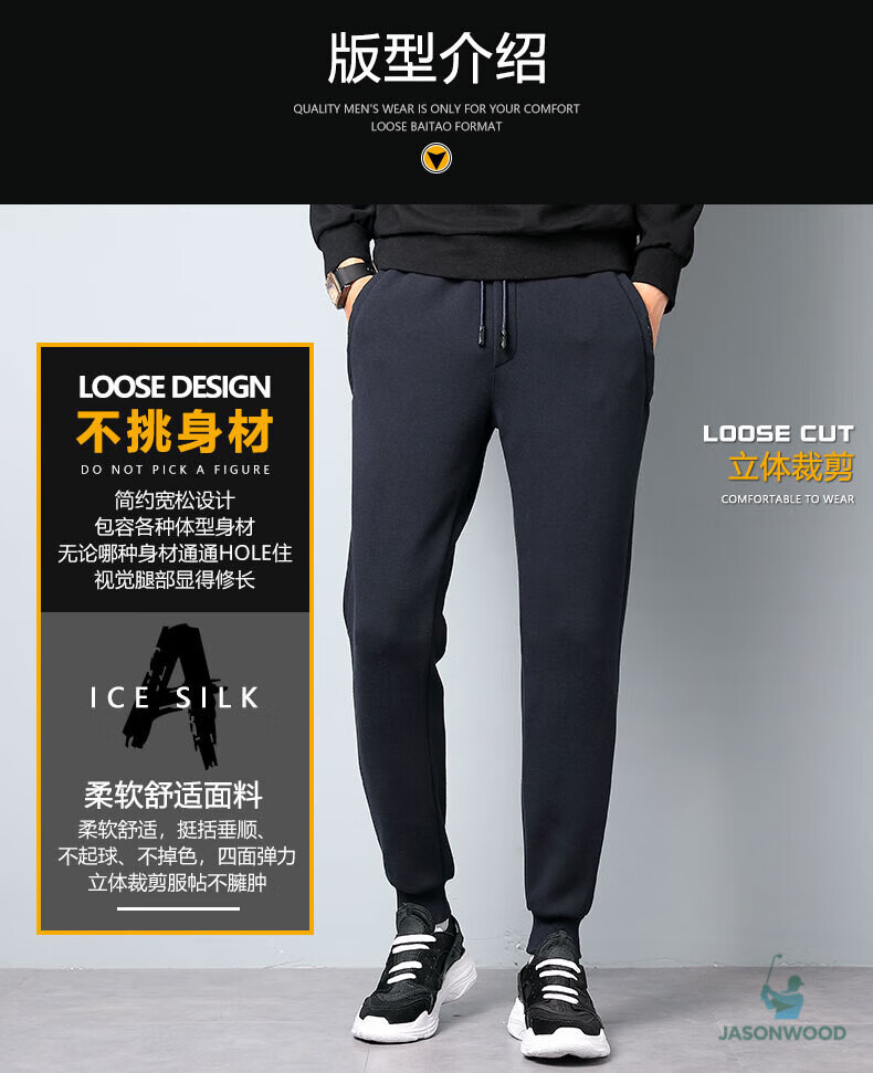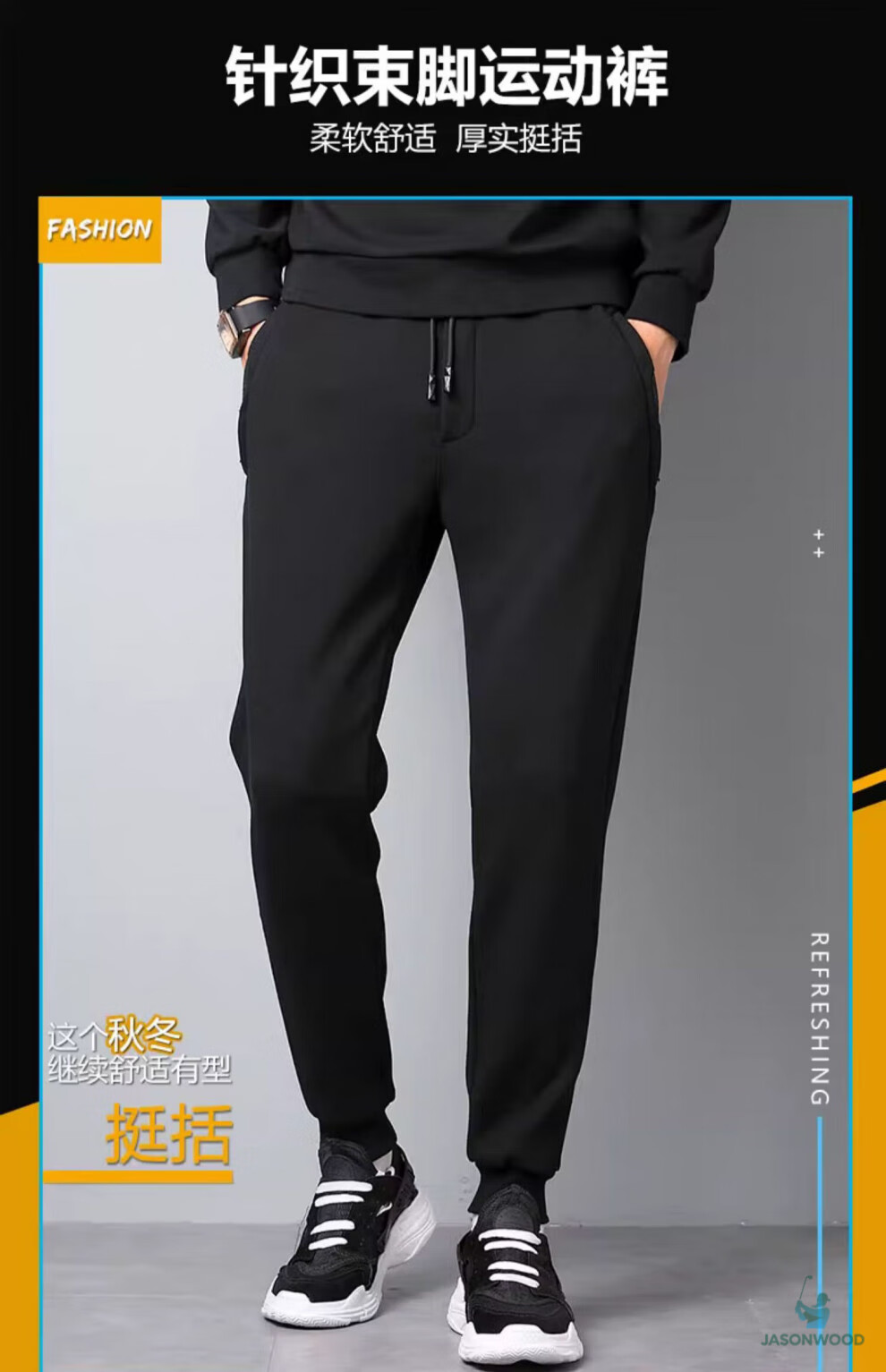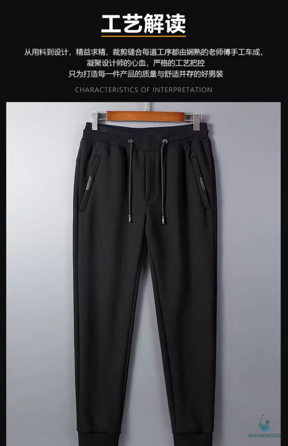 JASONWOOD Casual Pants Men's Autumn and Winter 2025 New Velvet Thickened Sports Pants Loose Leg-length Pants Men's Black Official Genuine 5XL 210-235Jin Jin is equal to 0.5 kg Celebrity Private Wear