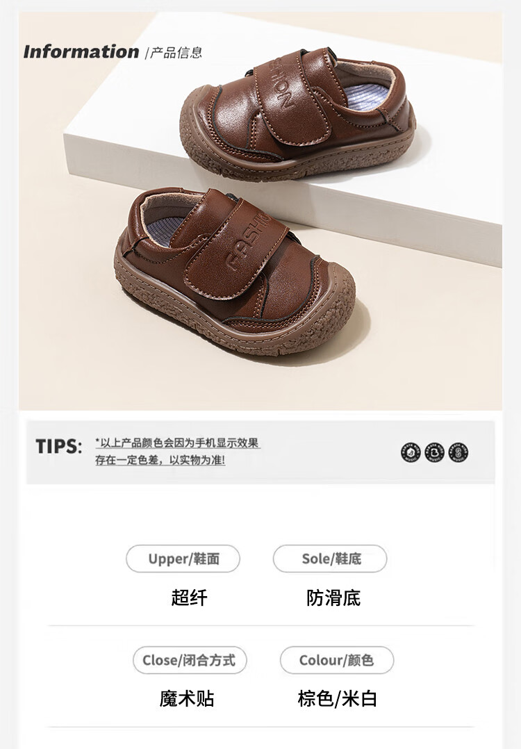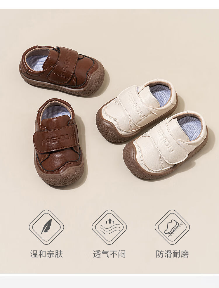 JOYNCLEON children's shoes baby toddler shoes 2025 spring and autumn new soft-soled infant small leather shoes anti-collision functional shoes beige 19 inner length 12.6cm suitable for feet 12.1cm long