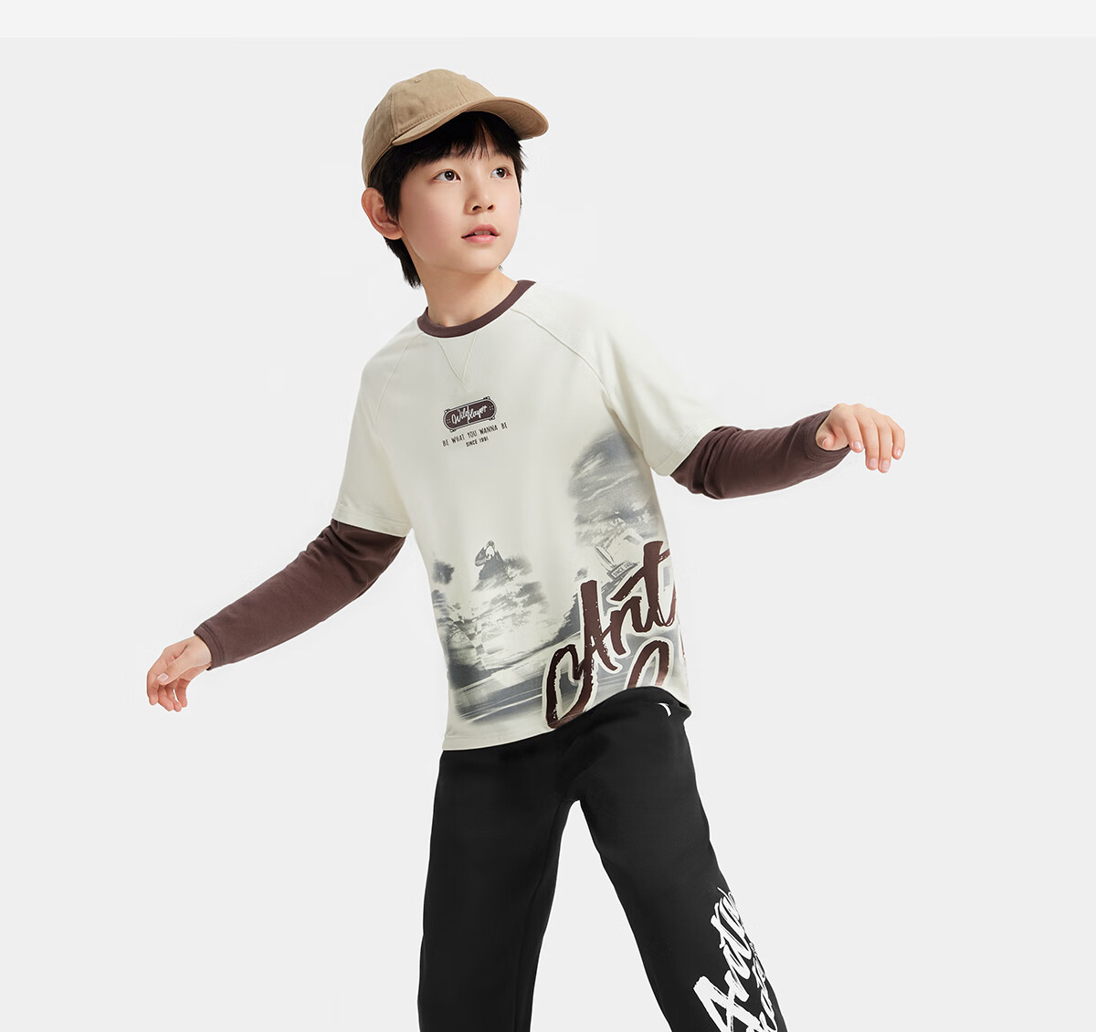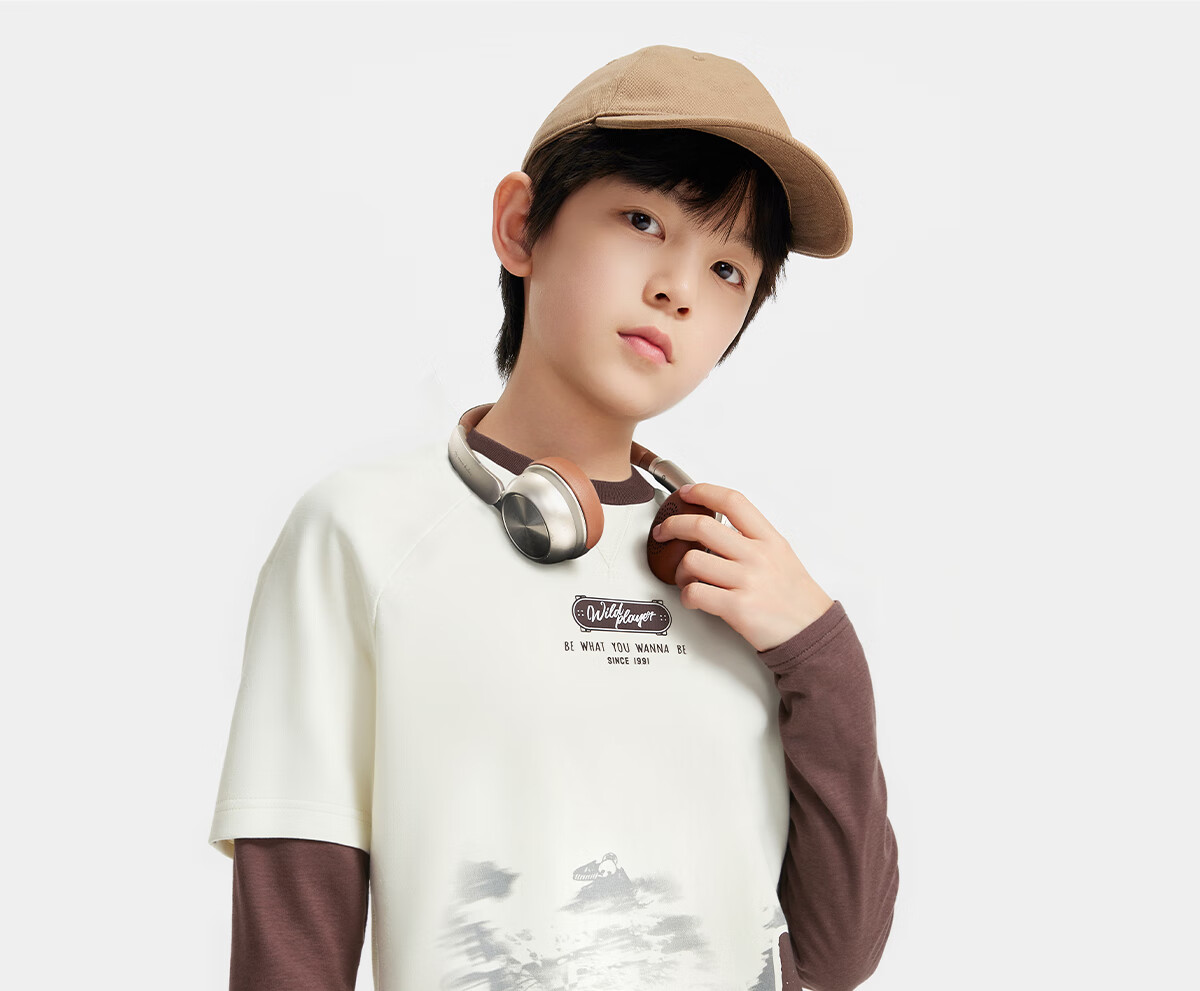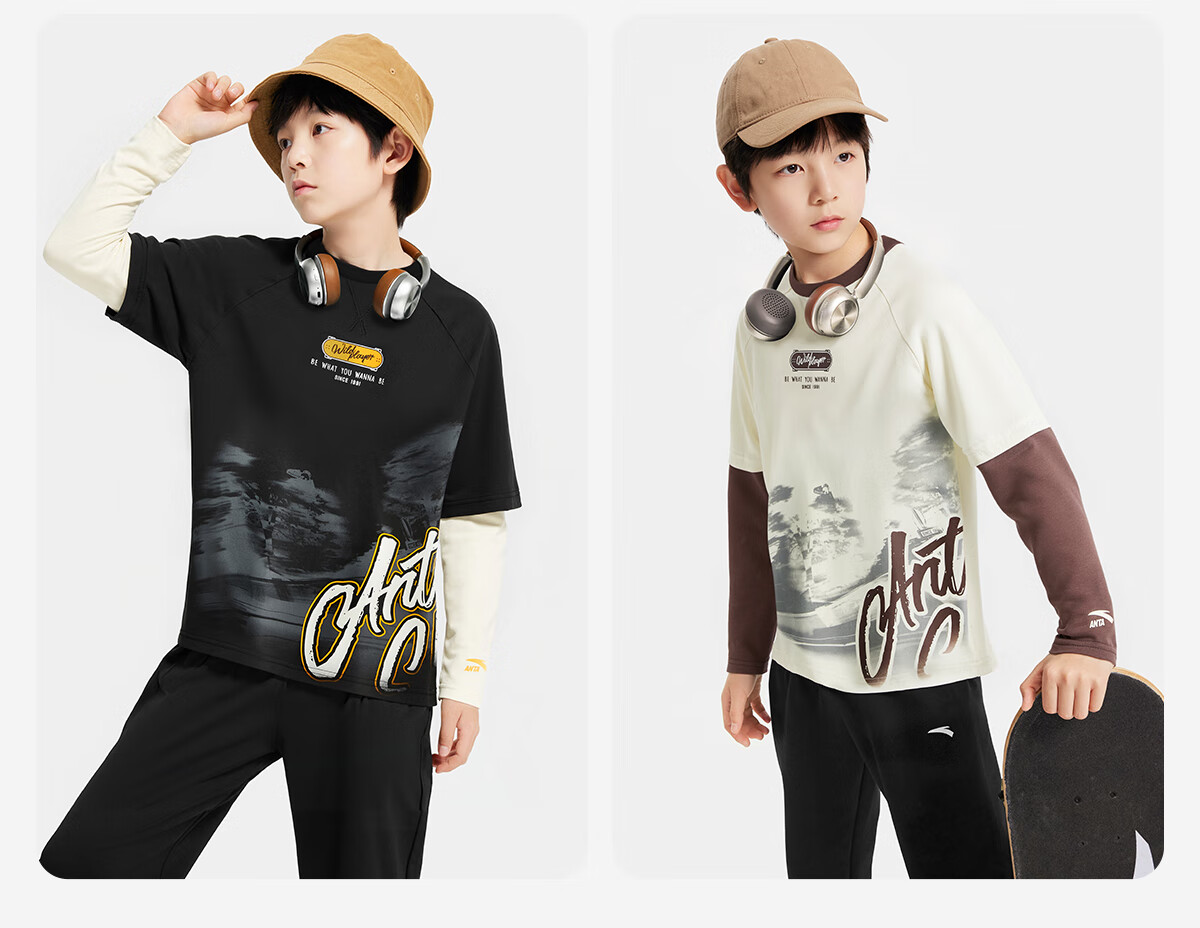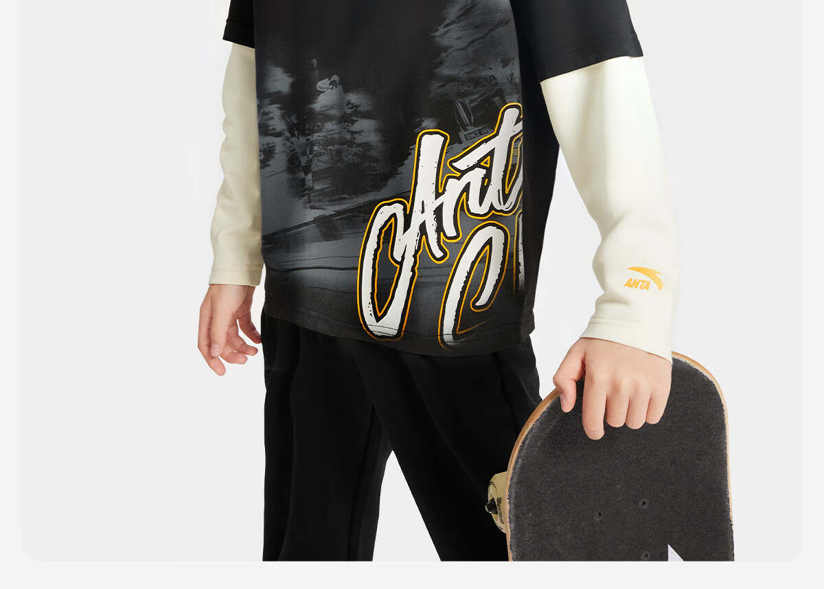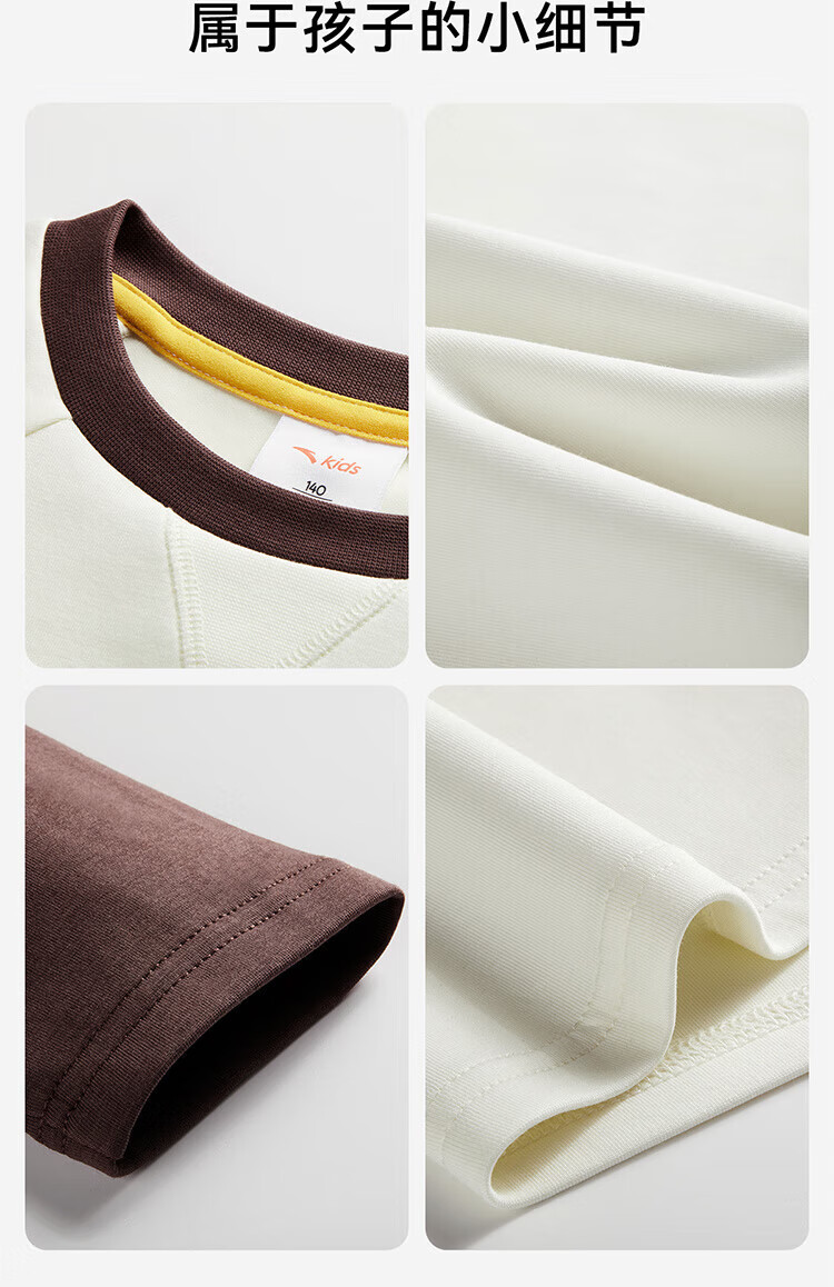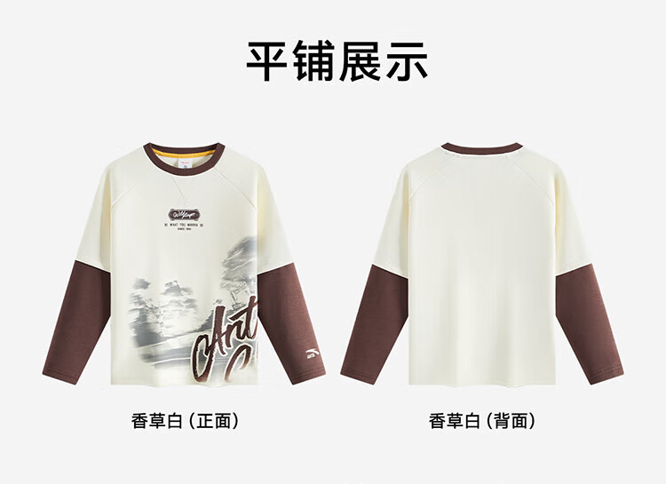 ANTA (ANTA) children's T-shirt men's big children's wear 2026 spring youth naughty trendy Coco silk knitted long-sleeved shirt 352538401 Vanilla White-2 130