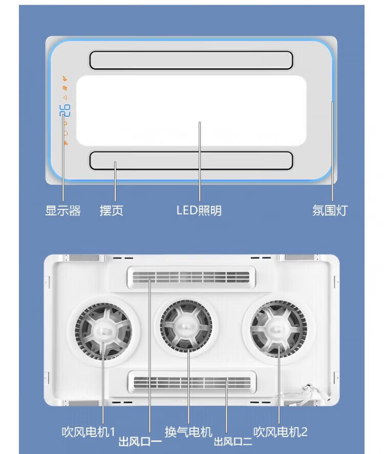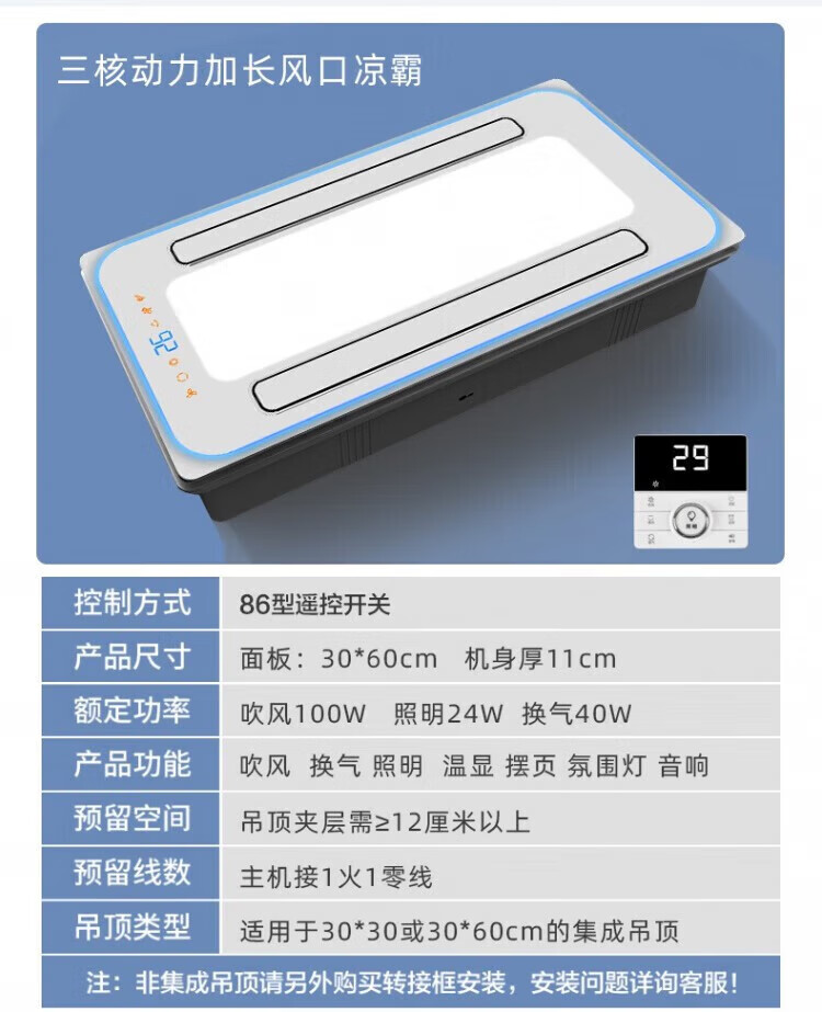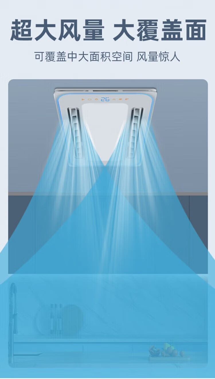 Opda Kitchen Cooler Embedded Lighting Two-in-One Air Conditioner Integrated Ceiling Ventilation Cooler Fan Cooler Two-Line Voice Two-Line Voice-Double Swing Page Bluetooth Speaker 300*600mm
