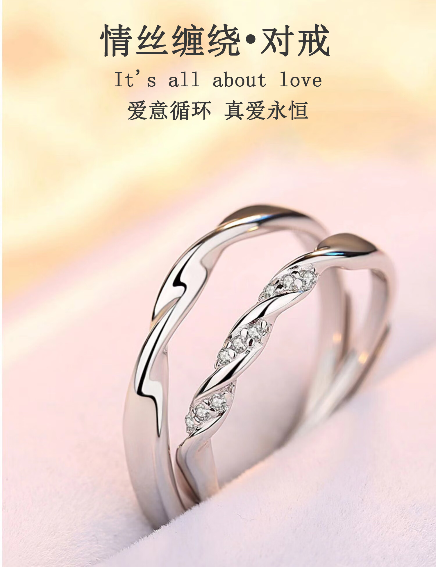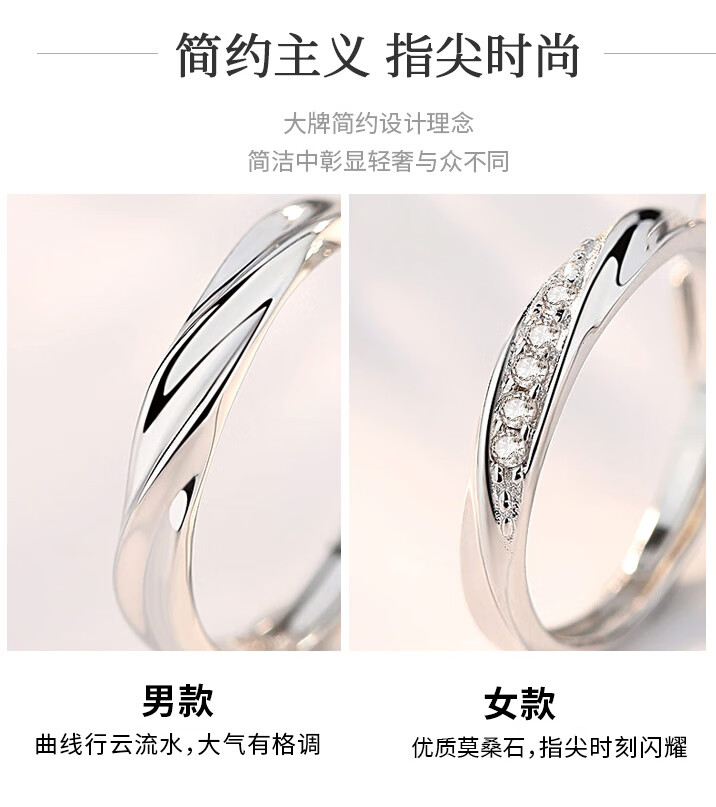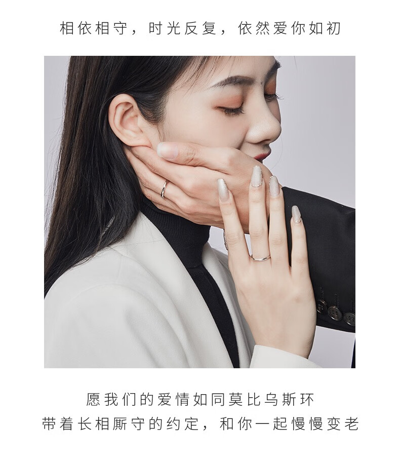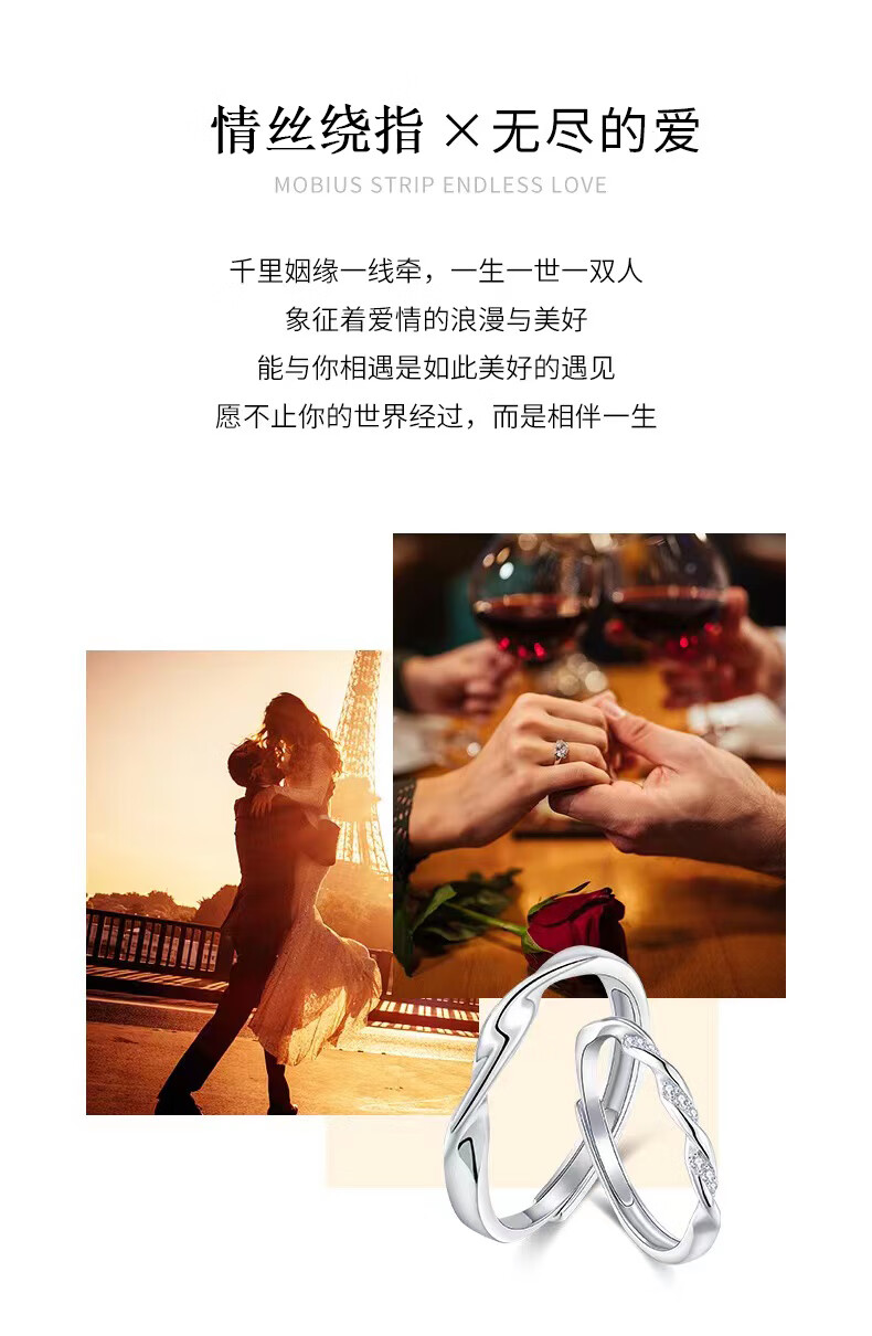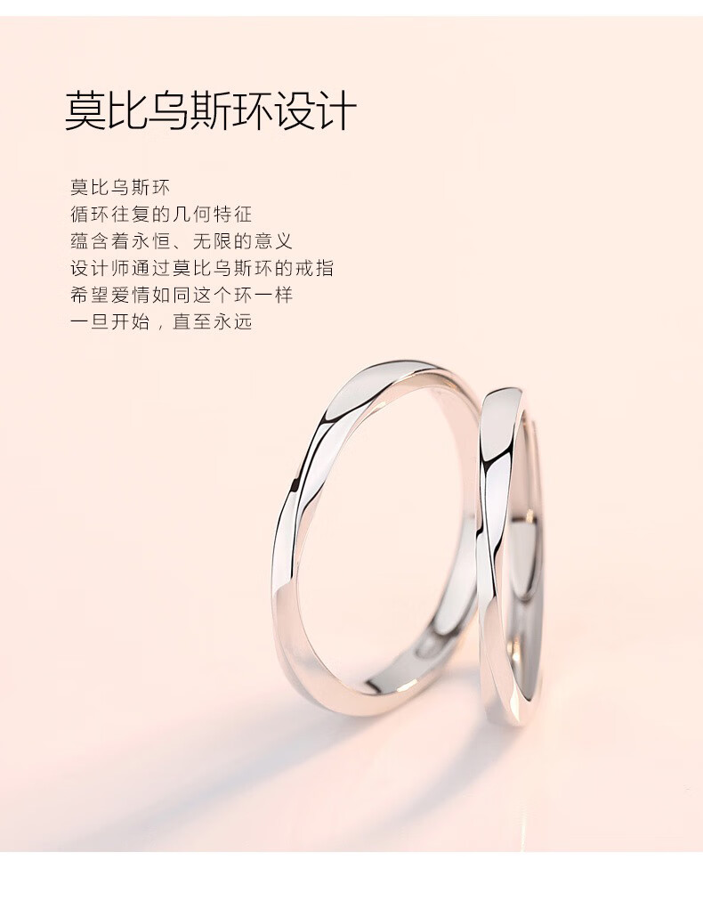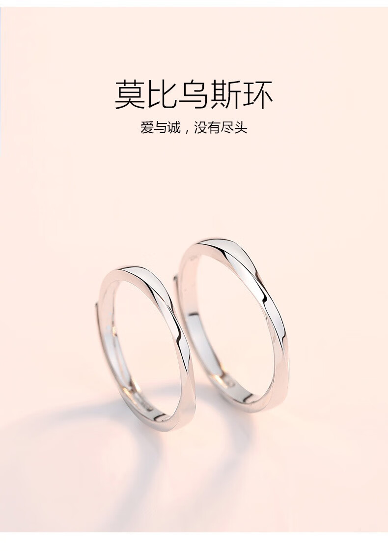 Chow Tai Sang Jewelry Platinum Ring Pt950 Couple Ring Male and Female Wedding Ring 18K Gold Diamond Ring with Exquisite Box Möbius Band Platinum Pair Ring