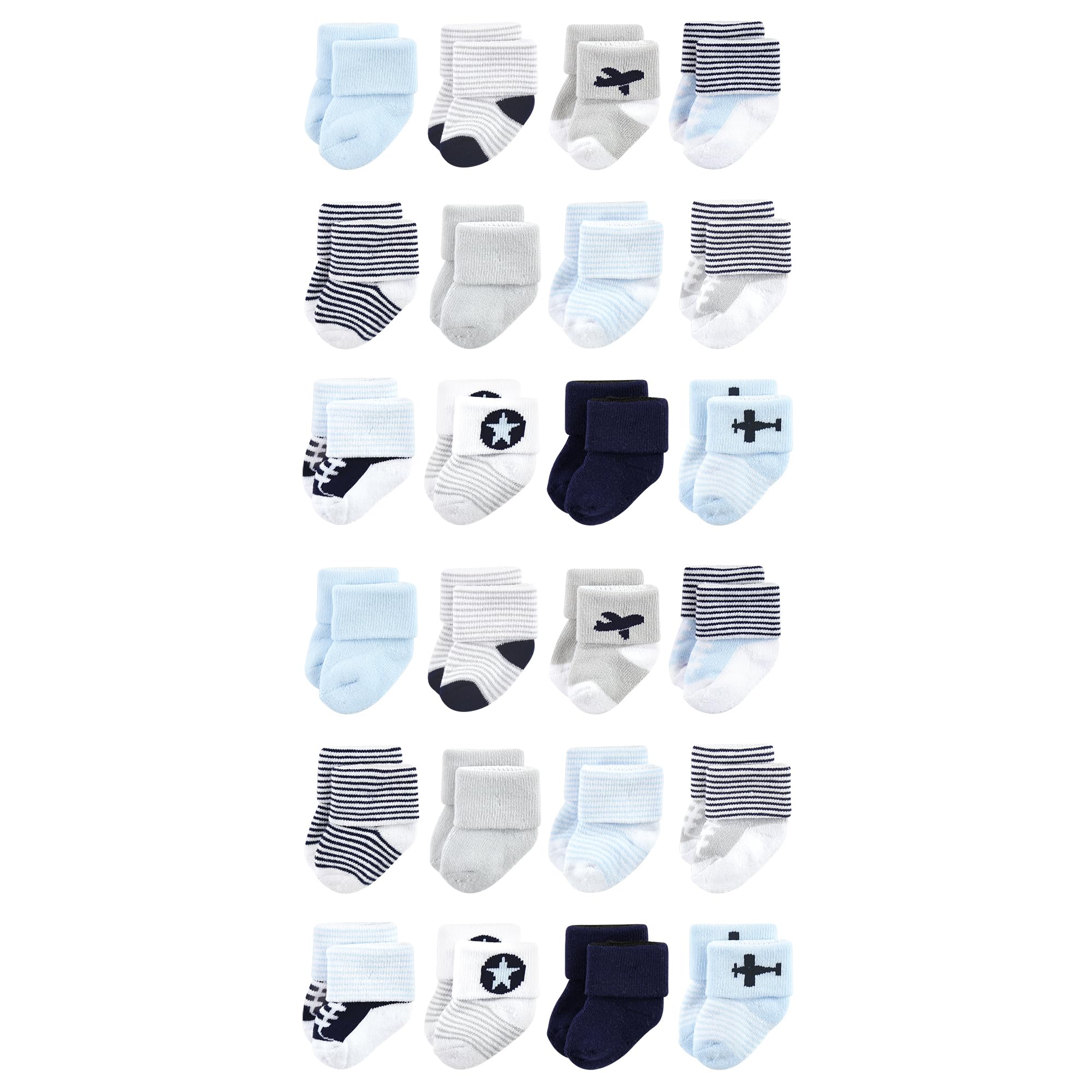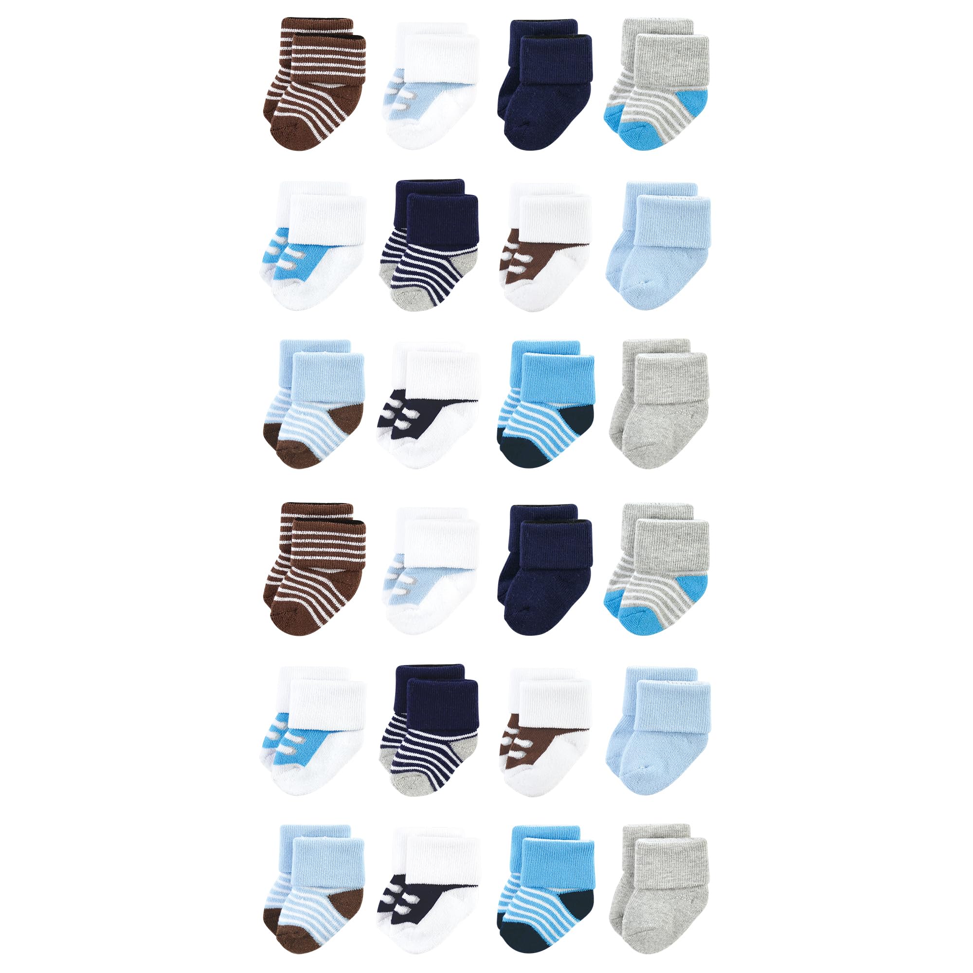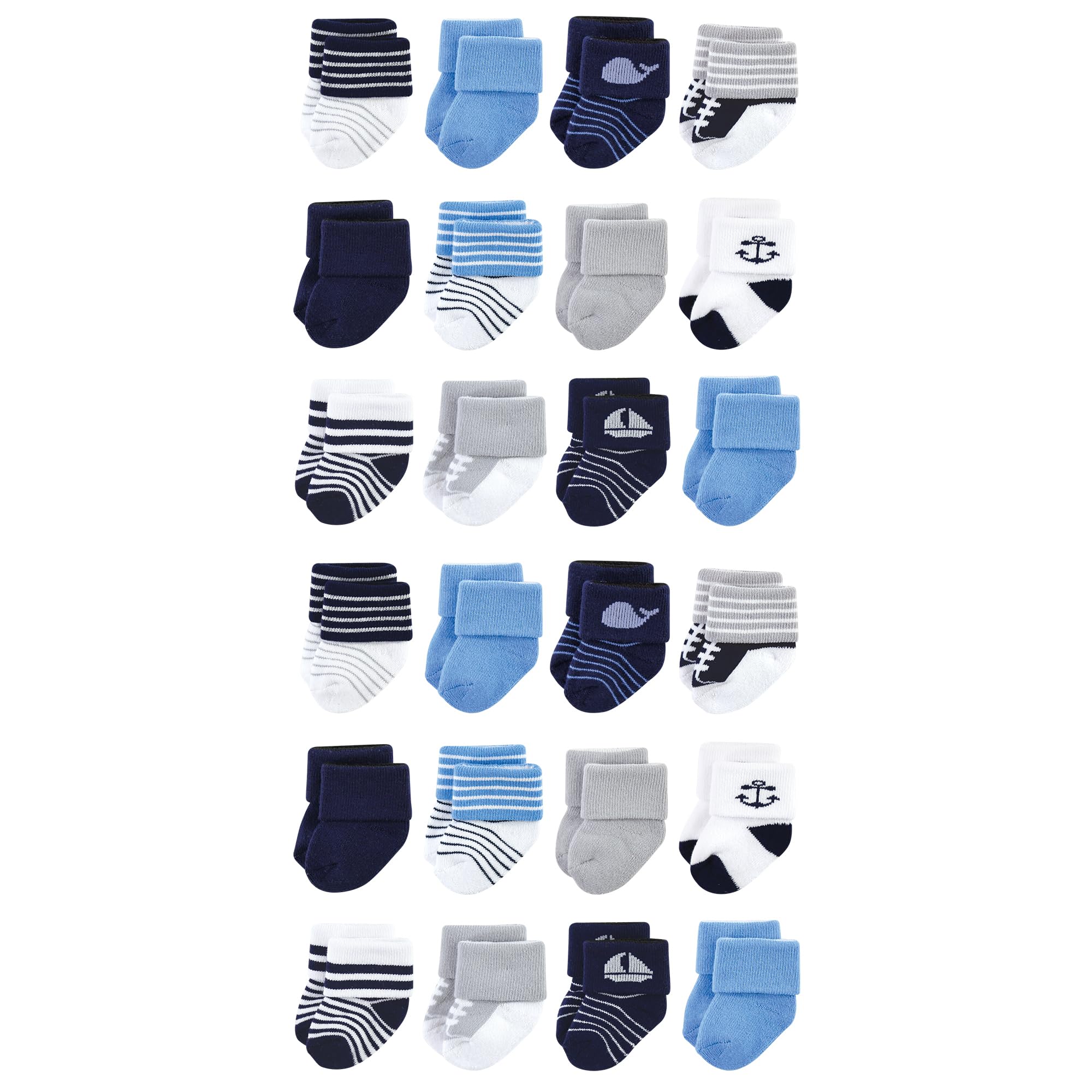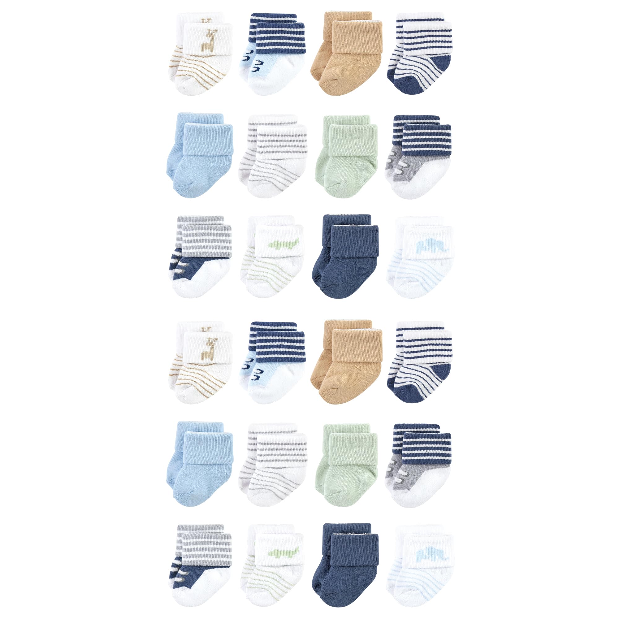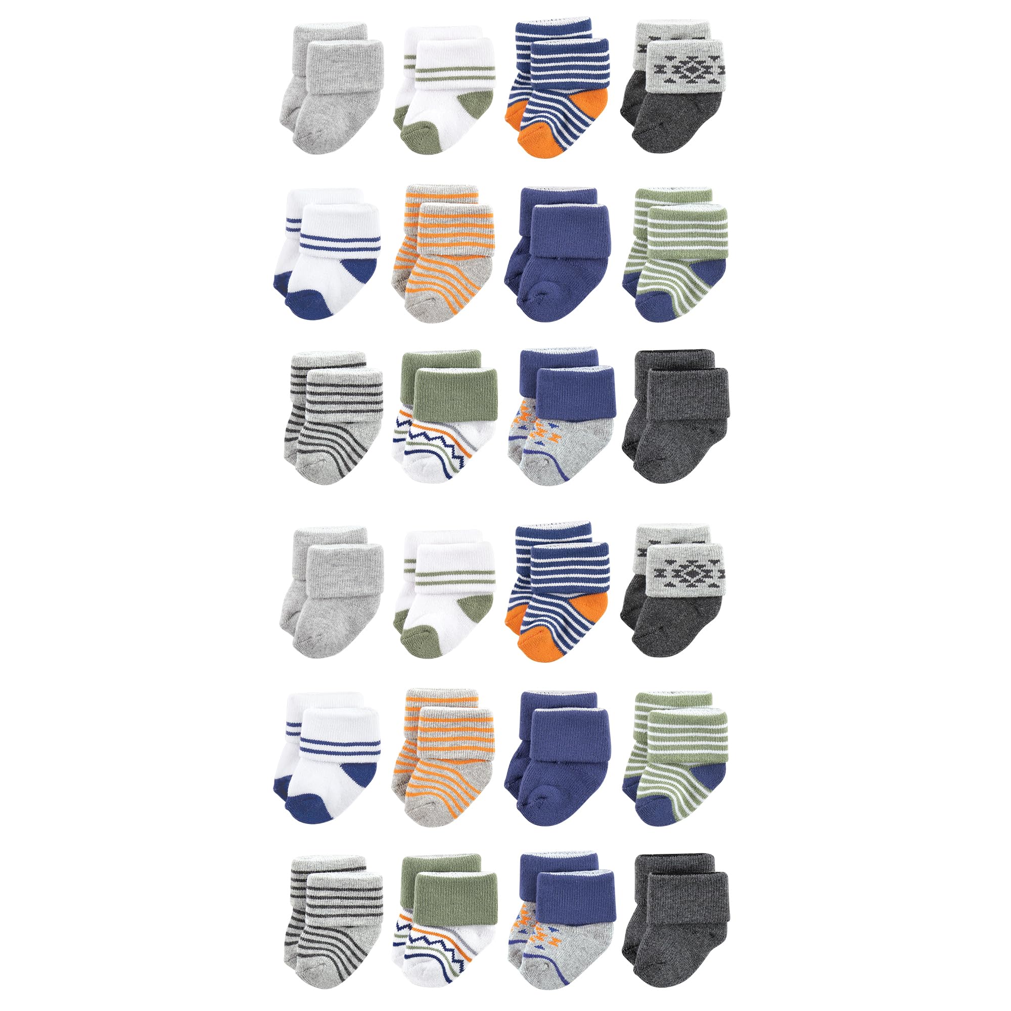 Luvable friends unisex cotton baby terry socks 24-pack mint navy striped 6-12 Months