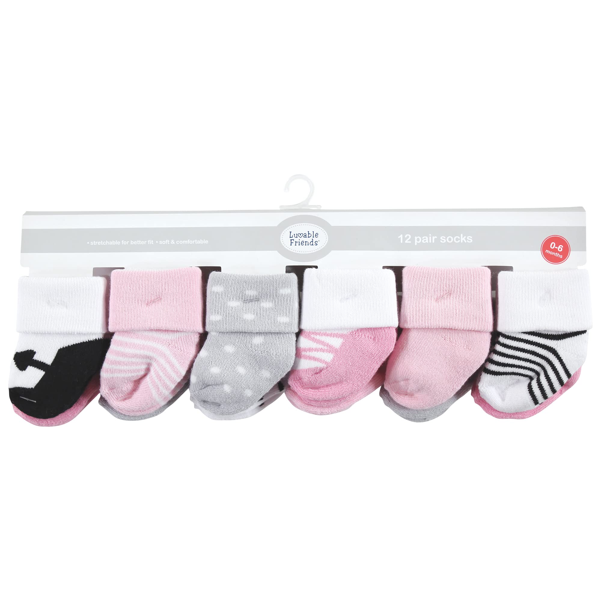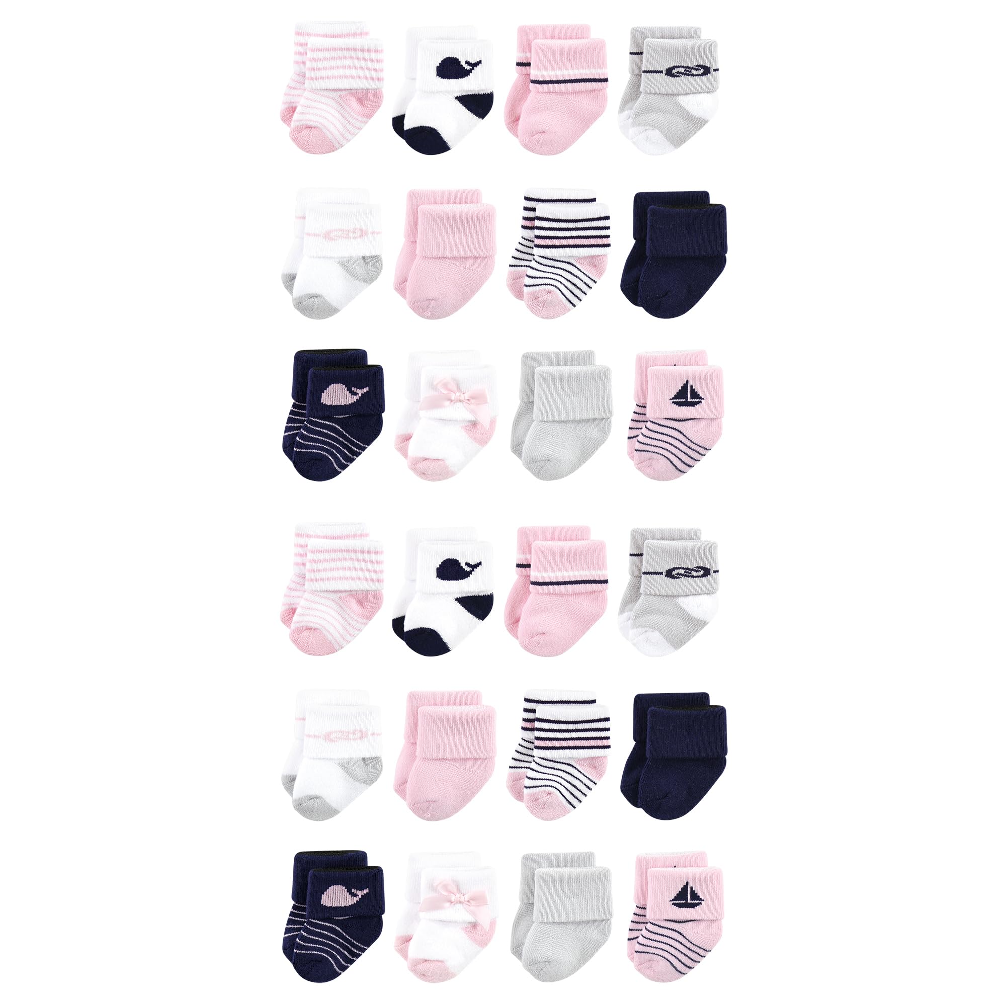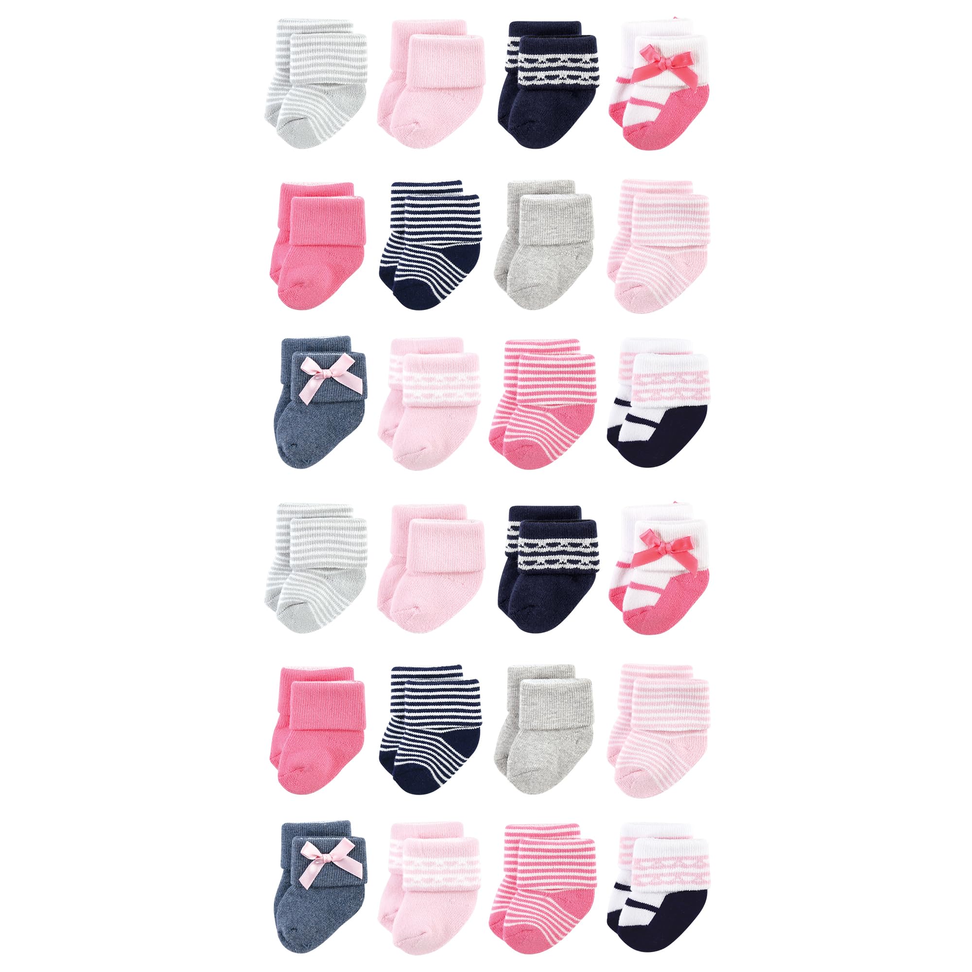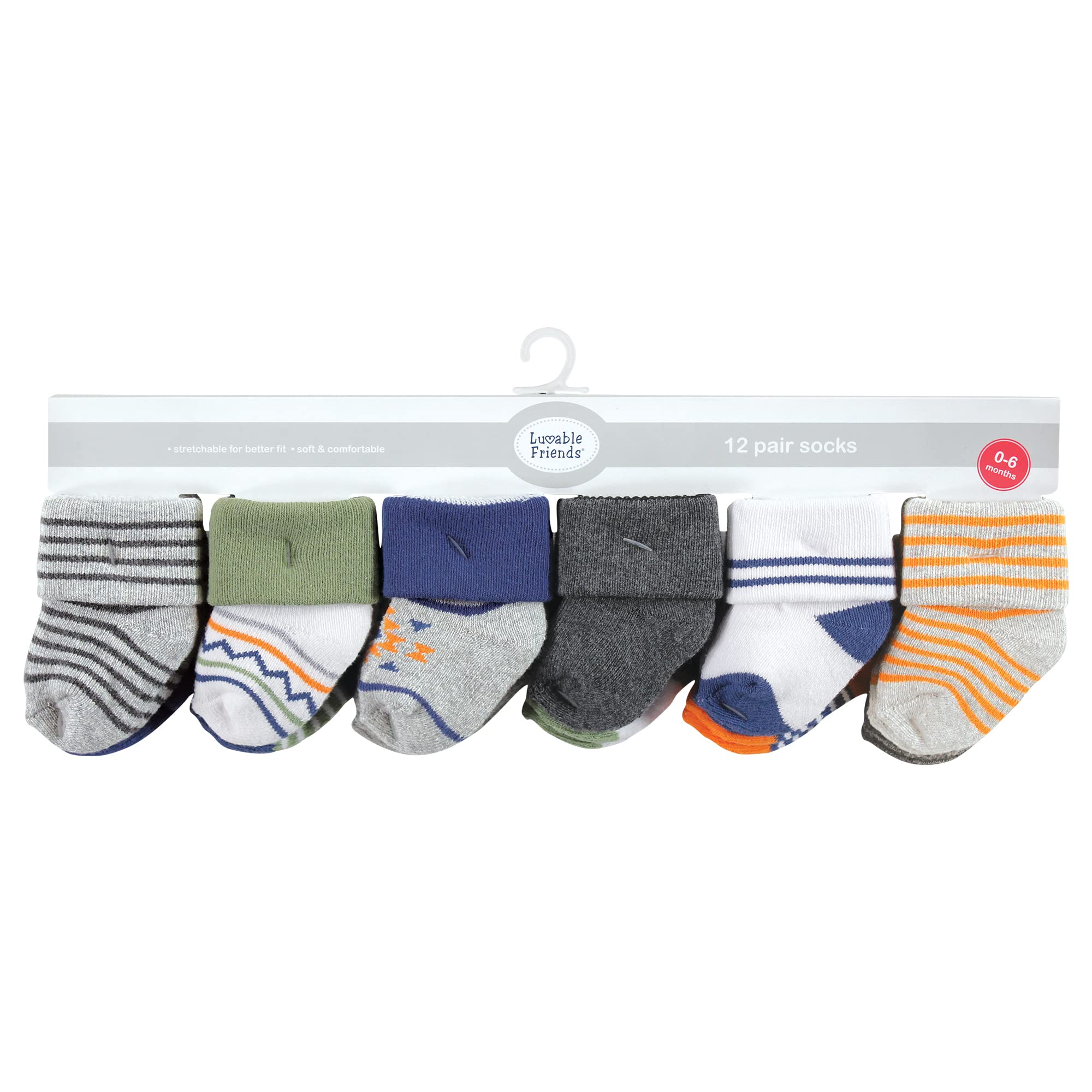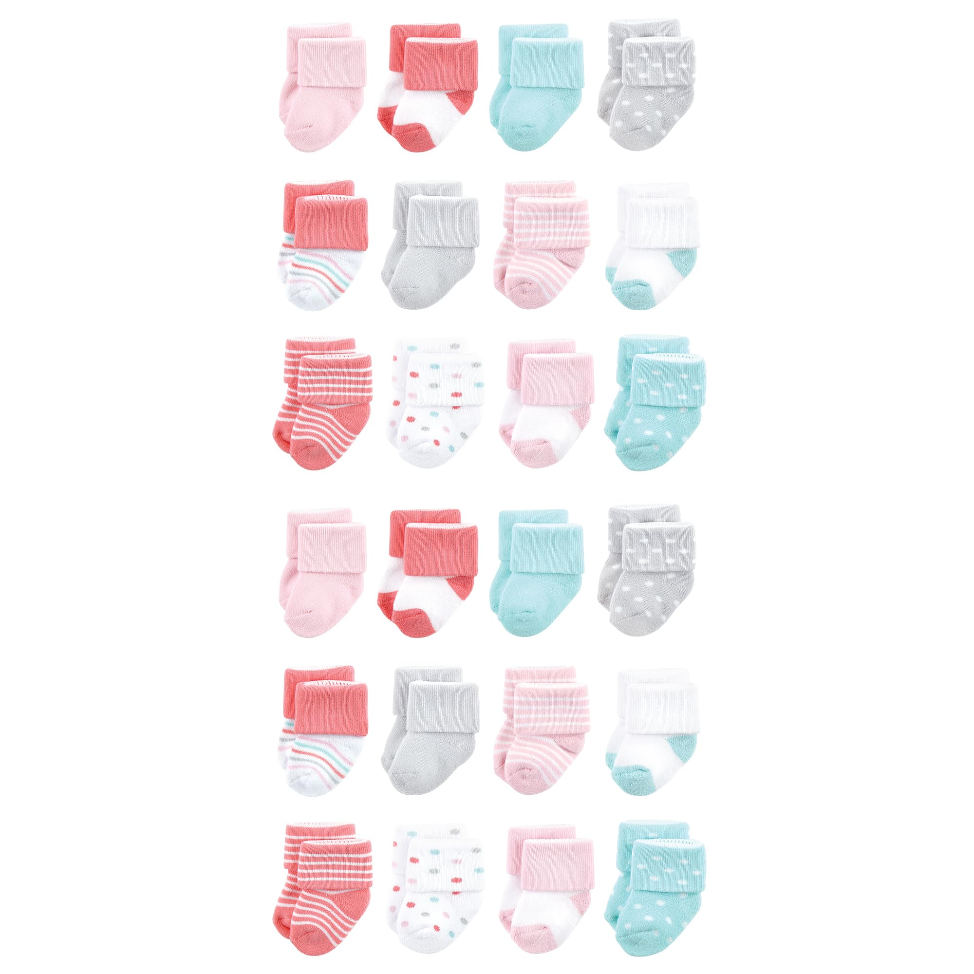 Luvable friends unisex cotton baby terry socks 24-pack mint navy striped 6-12 Months