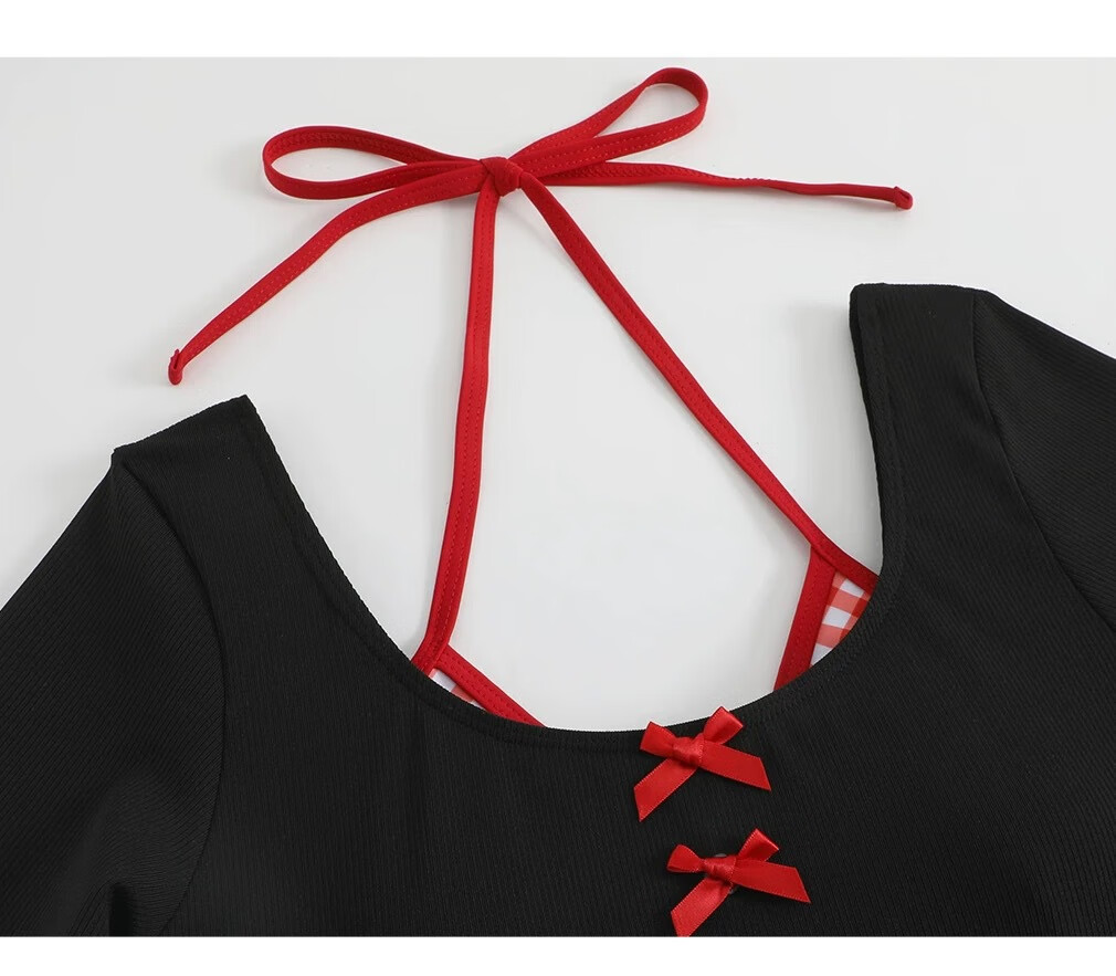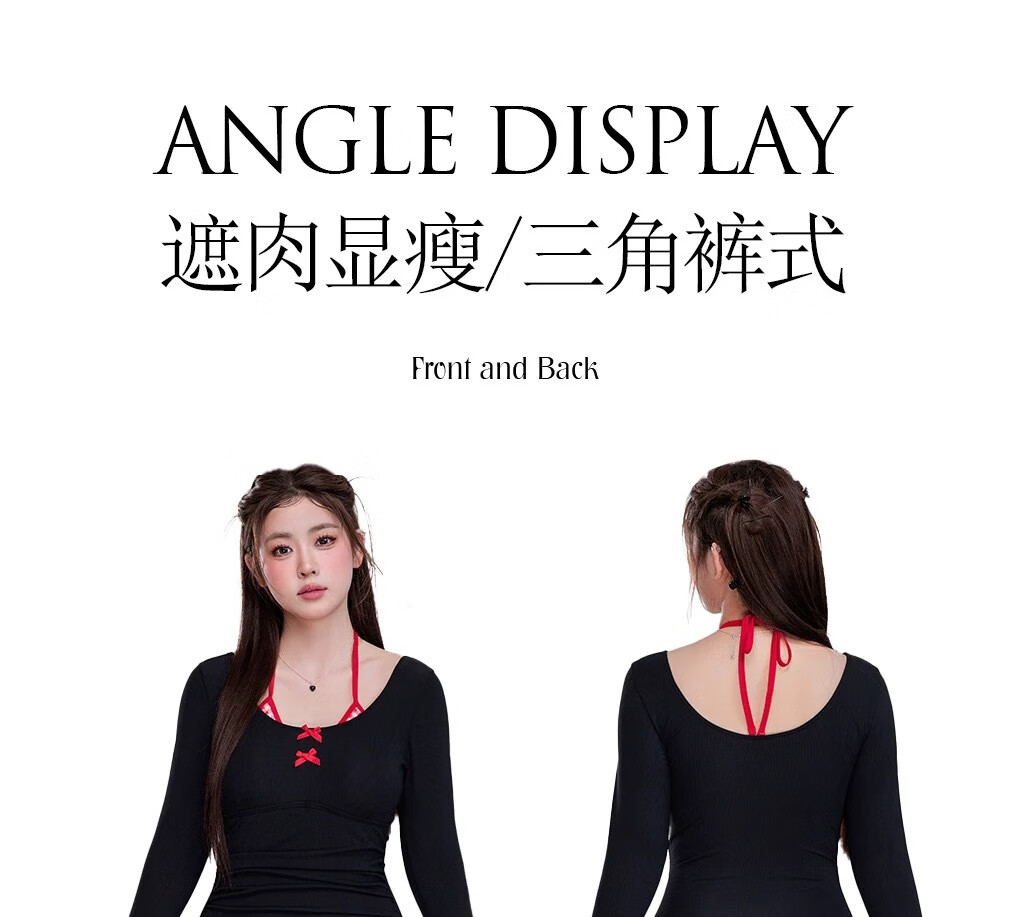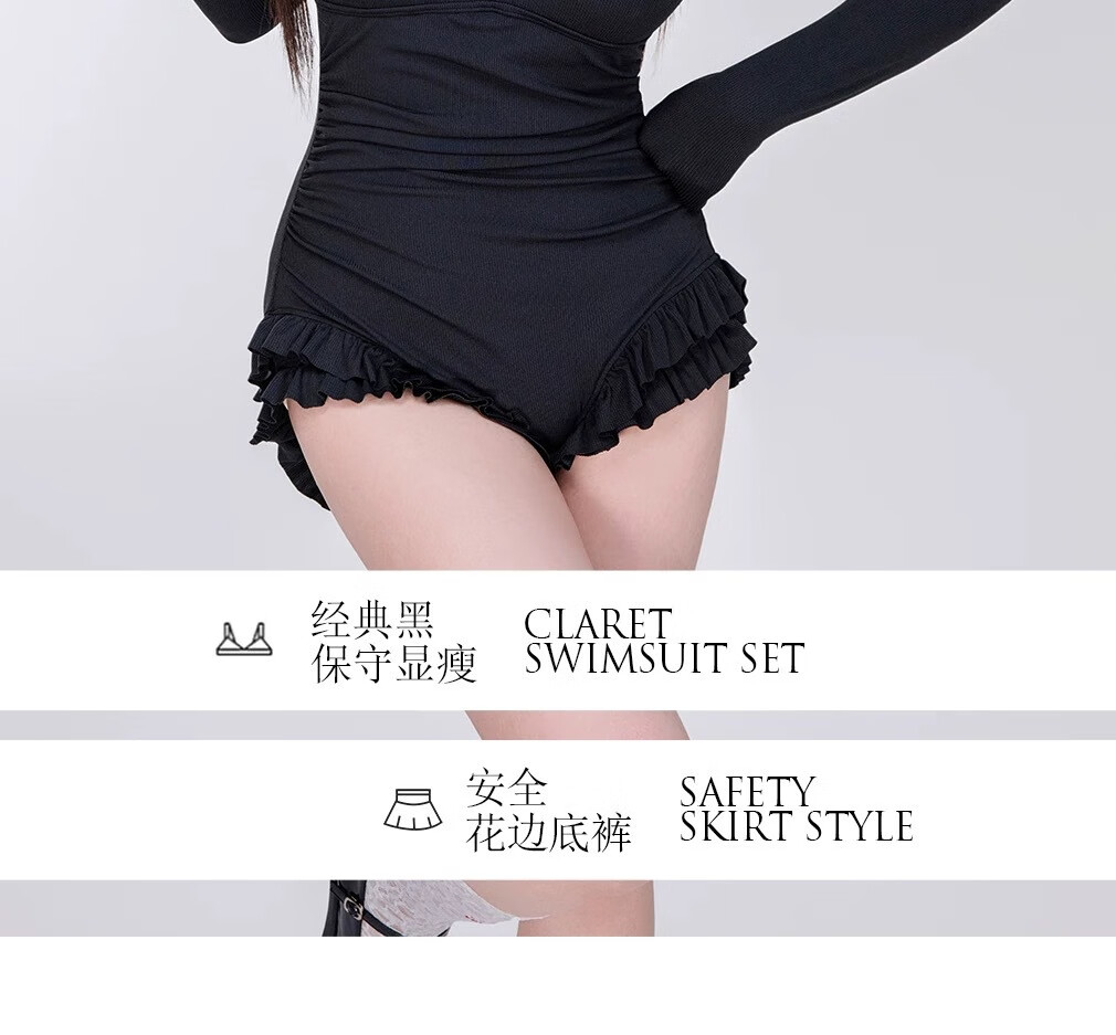 Quan Biyan swimsuit for women, conservative with breast pads, large size for fat mm, hot spring vacation, high-end, slimming, belly-covering, pure lust, one-piece long-sleeved, black and red, one size fits all, recommended 120-150 Jin Jin is equal to 0.5 kg
