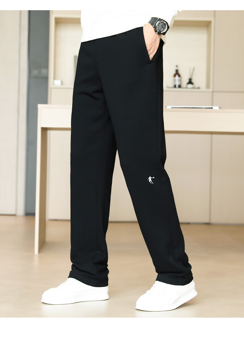 Jordan sweatpants for men 2025 winter new style breathable loose versatile knitted trousers for men simple casual flat pants for men Nova Blue plus velvet for warmth L/175