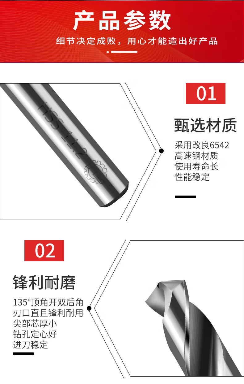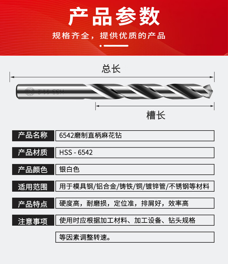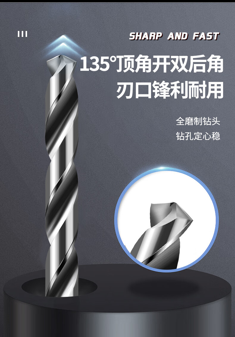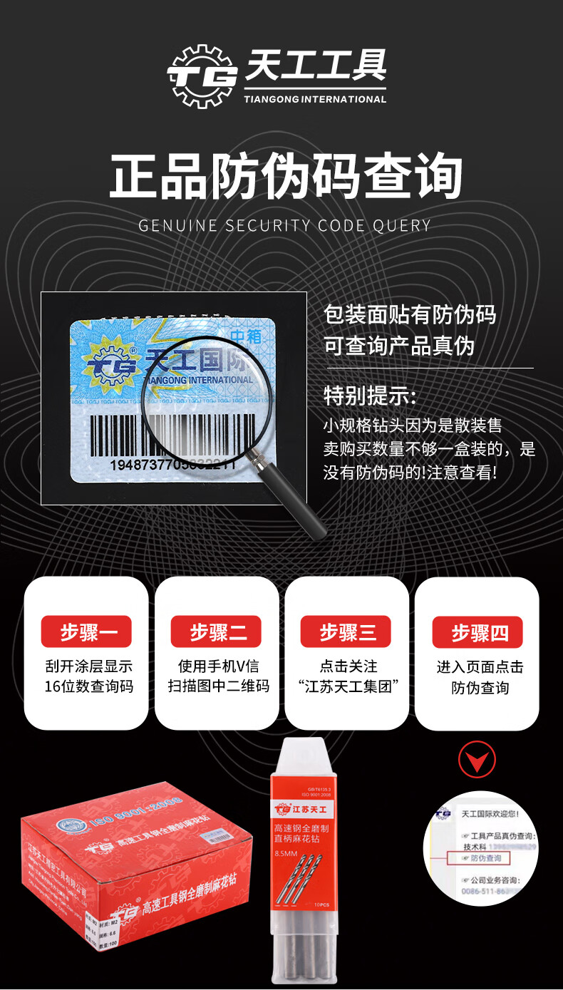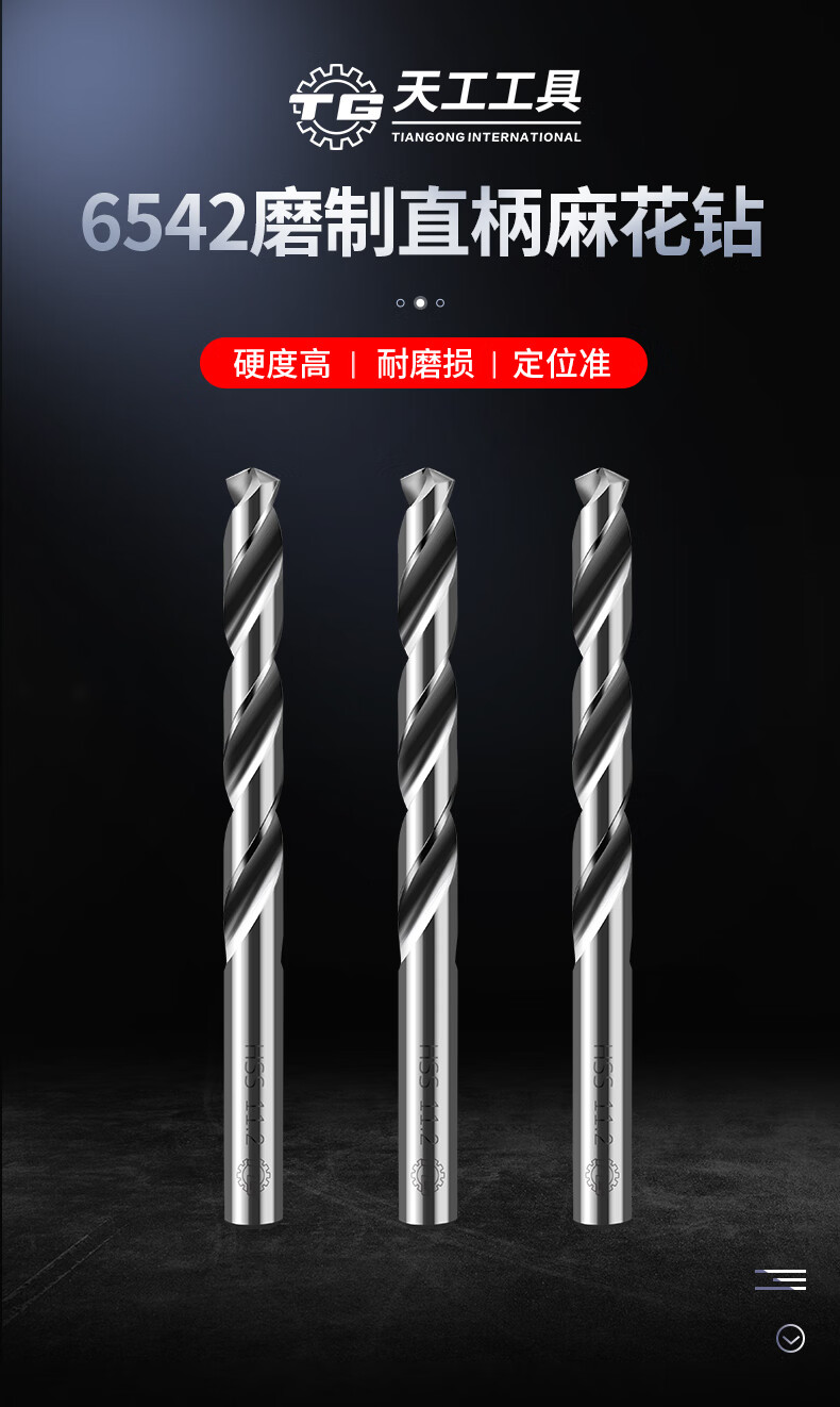 Tiangong 6542 twist drill bit straight handle stainless steel special fully ground metal drill hand electric drill for drilling steel super hard 8.6mm 5 pieces
