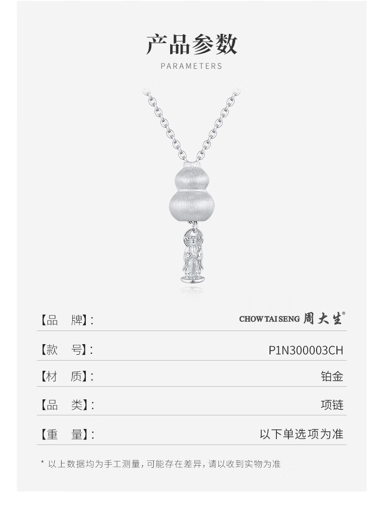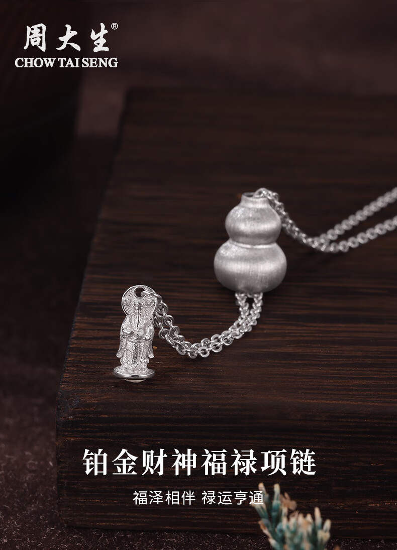 Chow Tai Sang Platinum Necklace PT950 Yellow God of Wealth Fulu Necklace Set for Wife and Mom as a Christmas Gift About 7.3g