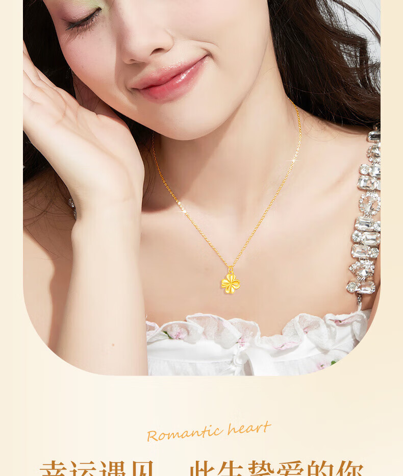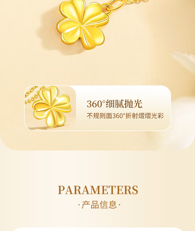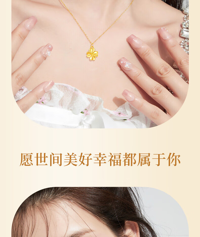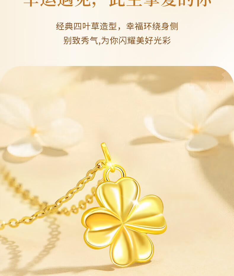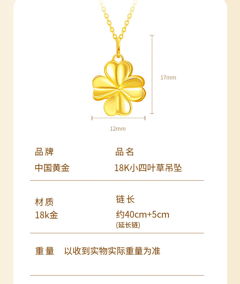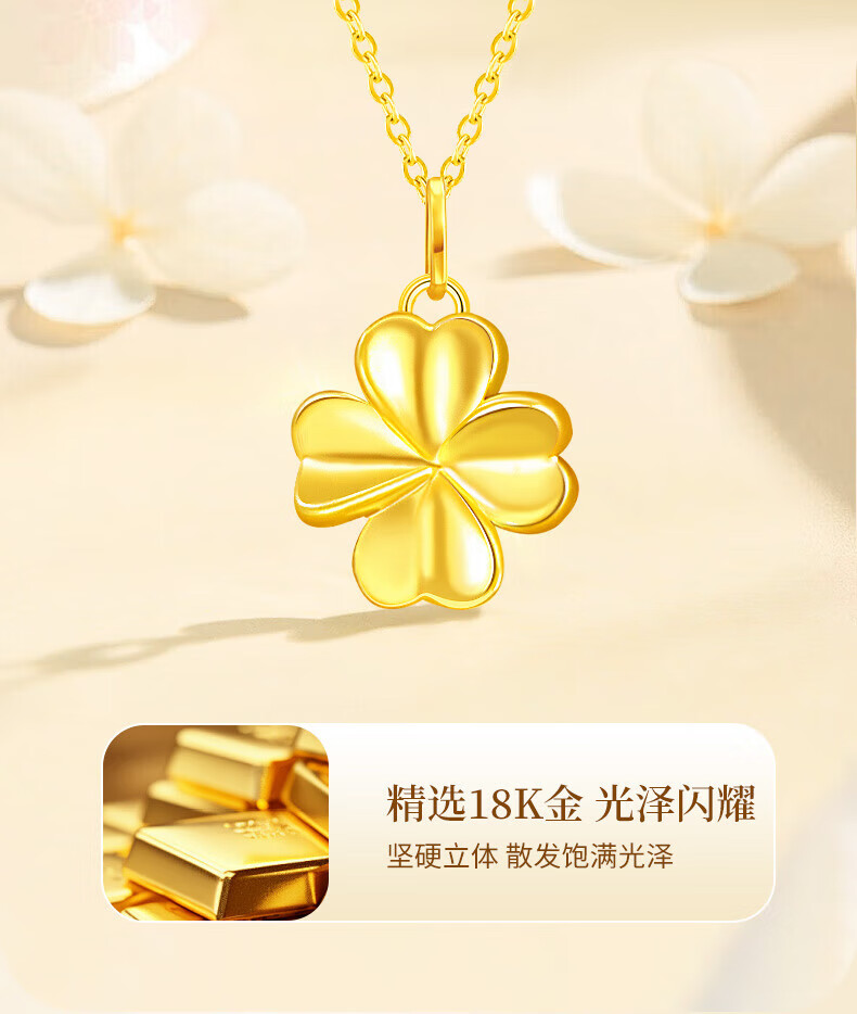 CHINA GOLD 18k gold four-leaf clover necklace female gold pendant jewelry birthday gift for girlfriend and wife practical wedding anniversary Jingsuda 18K small four-leaf clover pendant + K gold chain