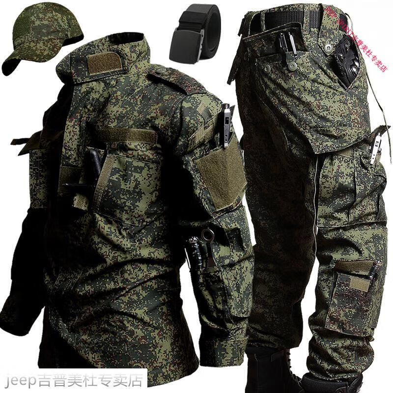 JEEP SPIRIT Jeep Russian camouflage soft shell jacket suit men's spring and autumn outdoor fishing windproof tactical clothing tough guy ACU Russian camouflage clothing + hat belt 2XL (181-195Jin Jin equals 0.5 kg)