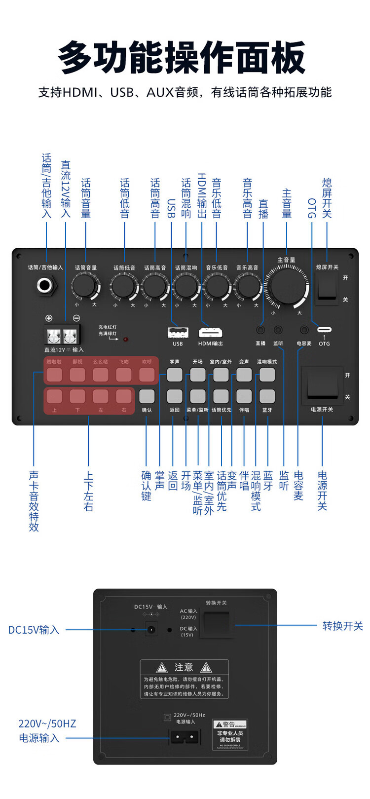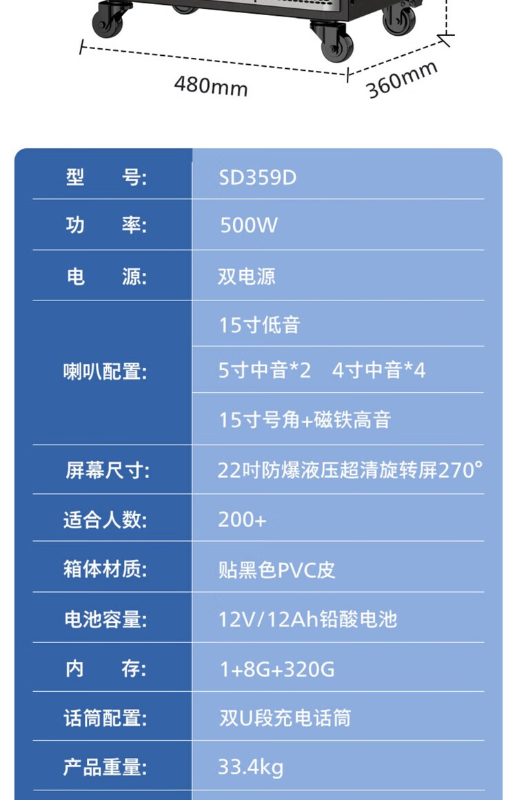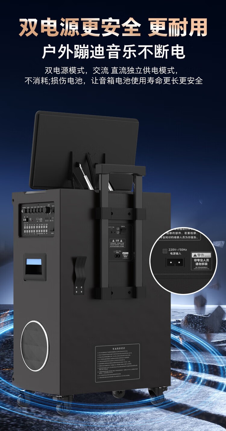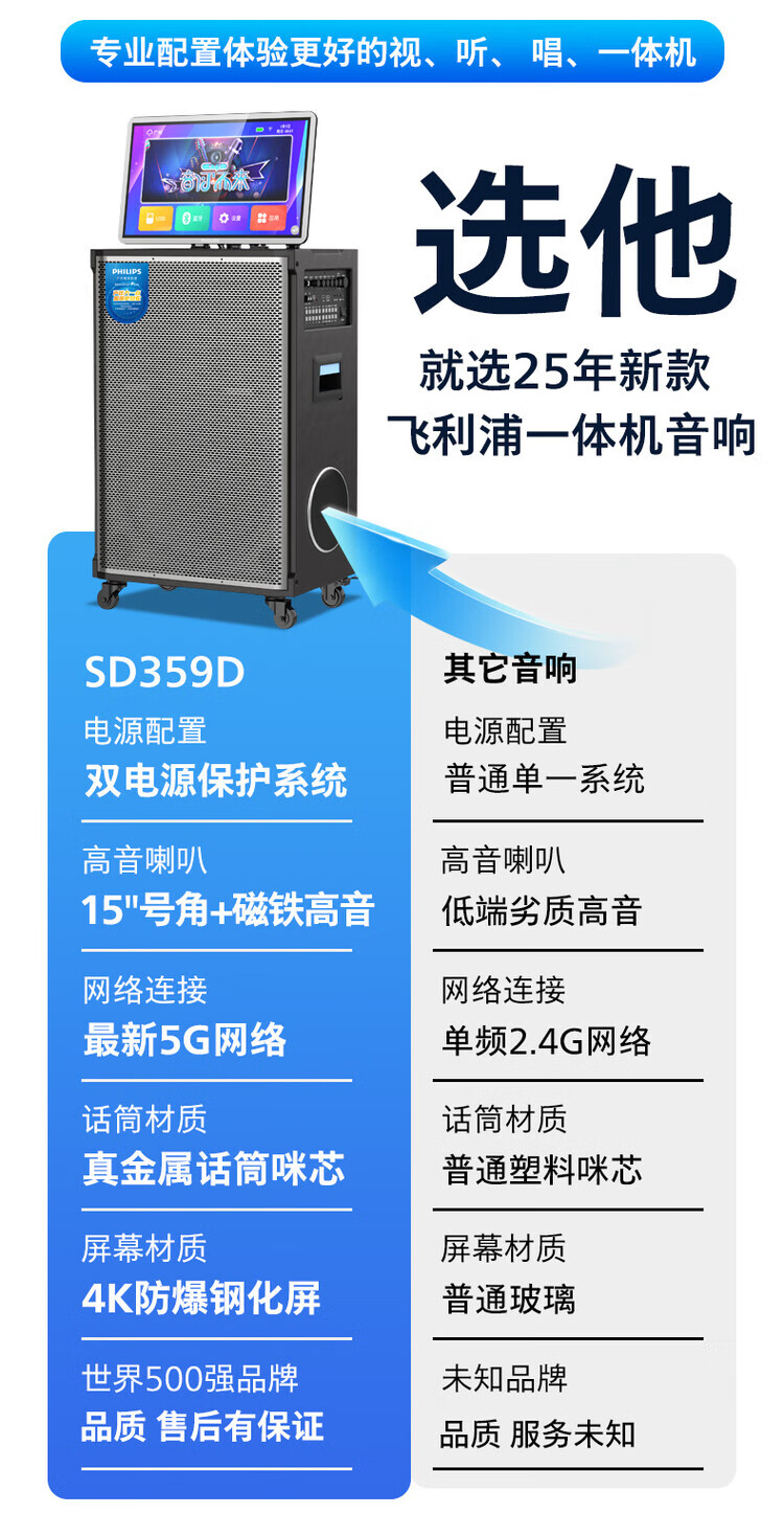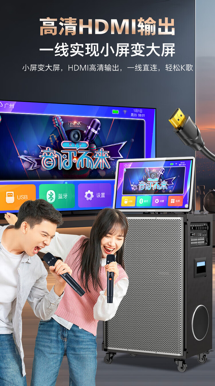 Philips (PHILIPS) 15-inch super bass outdoor audio large screen with sound card all-in-one KTV karaoke machine trolley speaker dual power supply/Bluetooth display lyrics 4 microphones