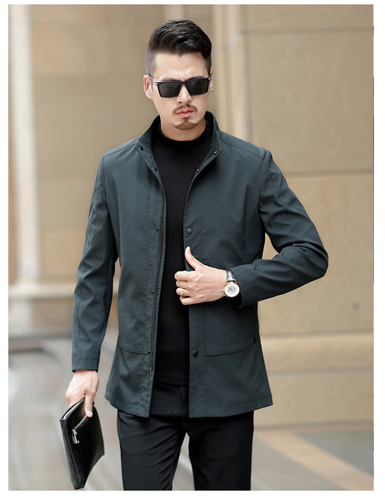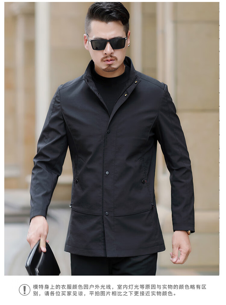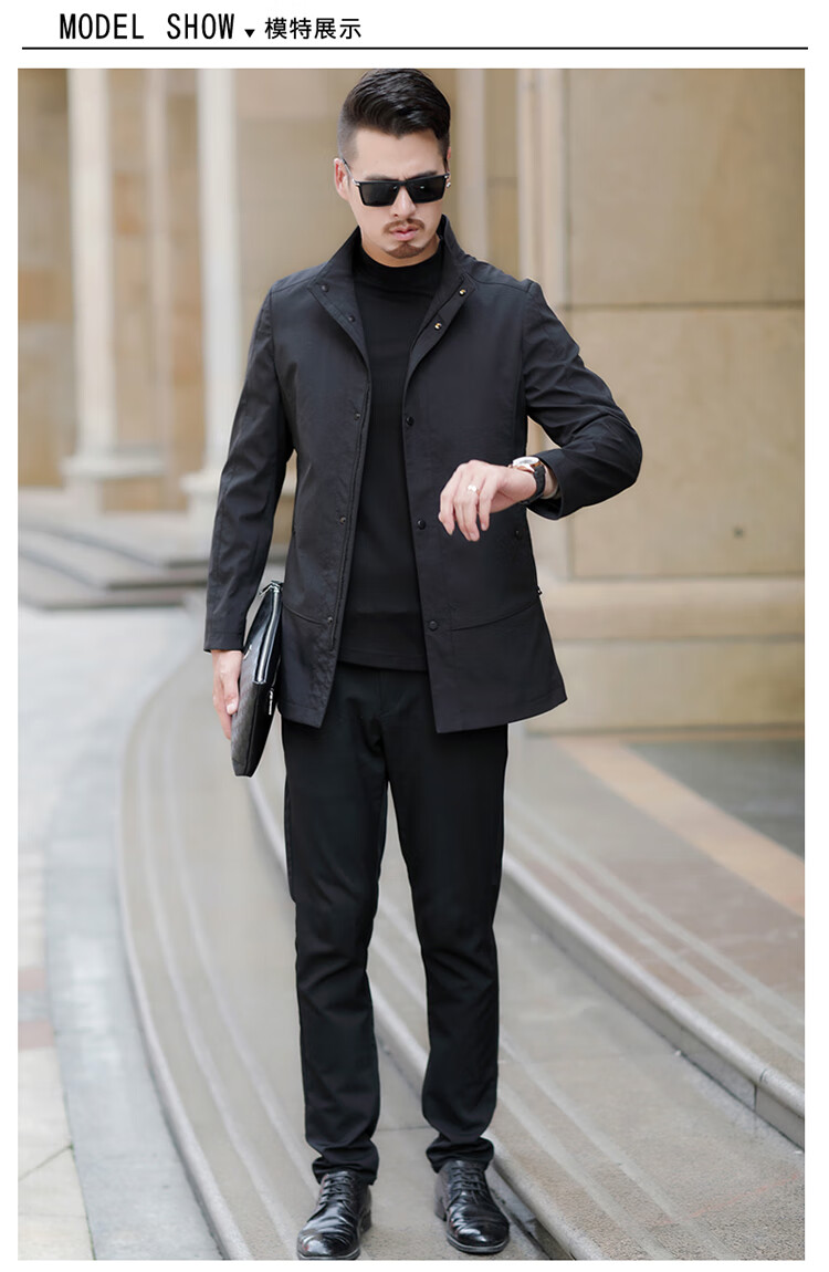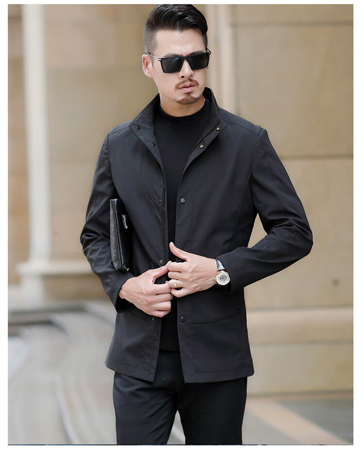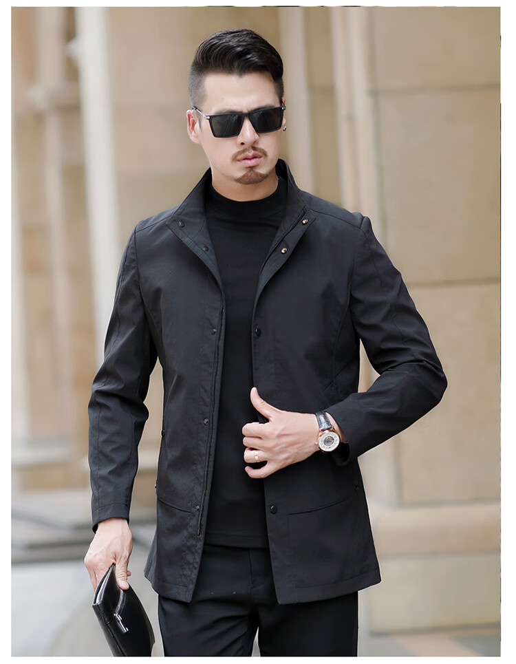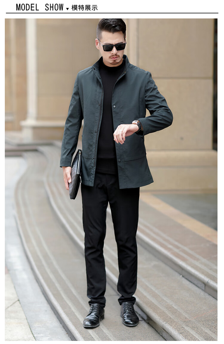 Pierre Cardin high-end men's windbreaker mid-length jacket 2025 spring and autumn new middle-aged dad stand collar business casual jacket black 2XL 185 recommended 170-185Jin Jin equals 0.5 kg