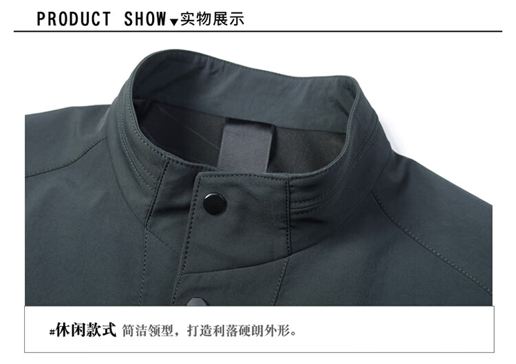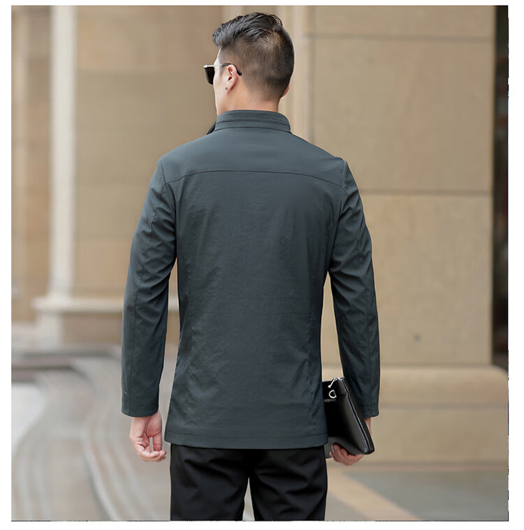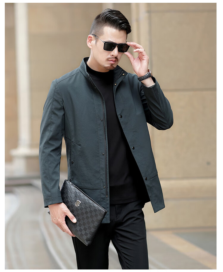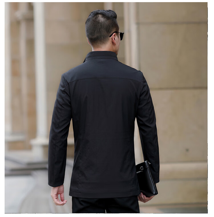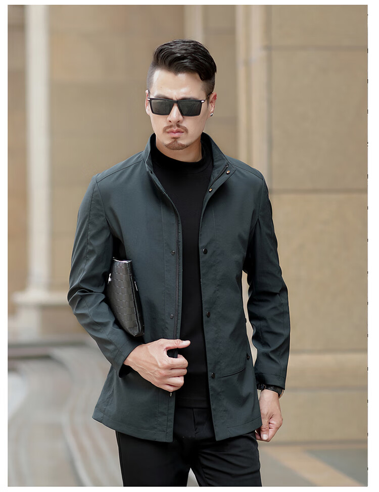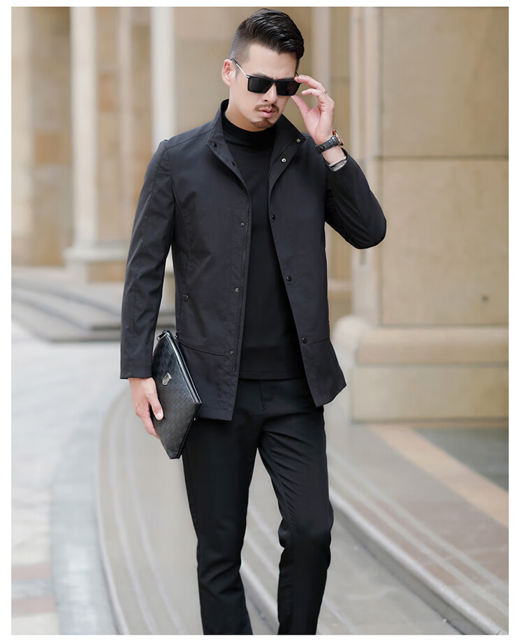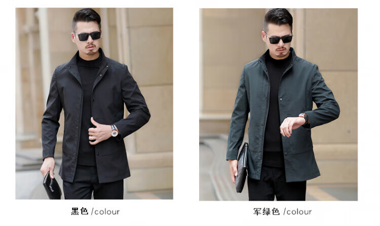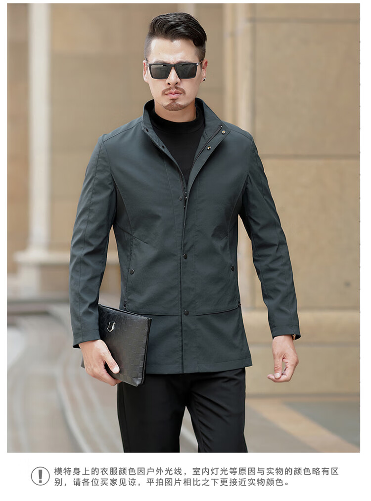 Pierre Cardin high-end men's windbreaker mid-length jacket 2025 spring and autumn new middle-aged dad stand collar business casual jacket black 2XL 185 recommended 170-185Jin Jin equals 0.5 kg