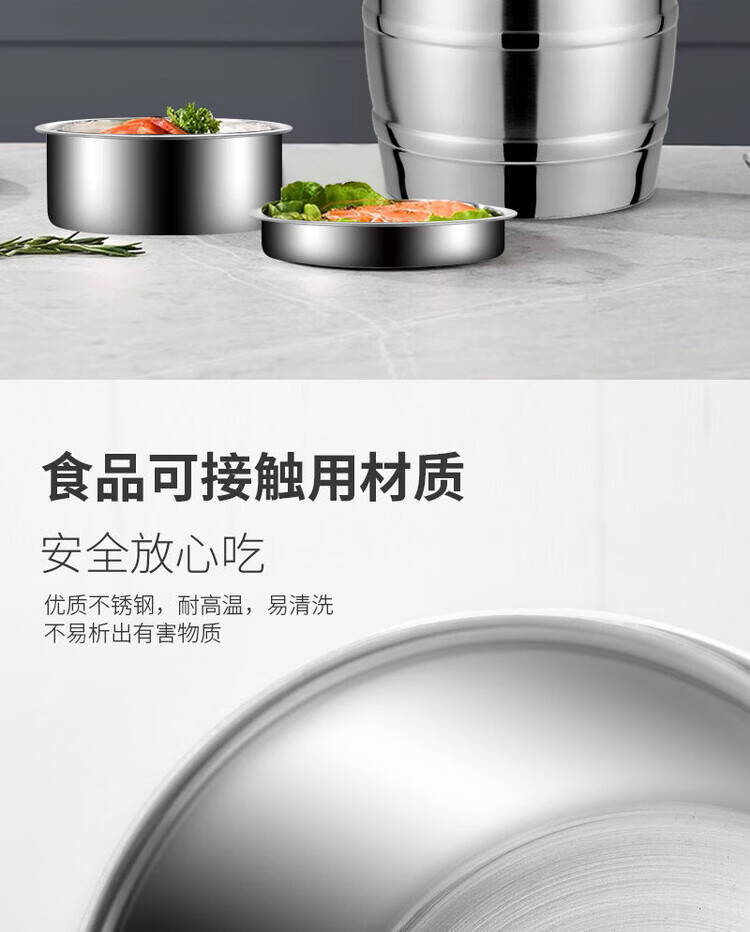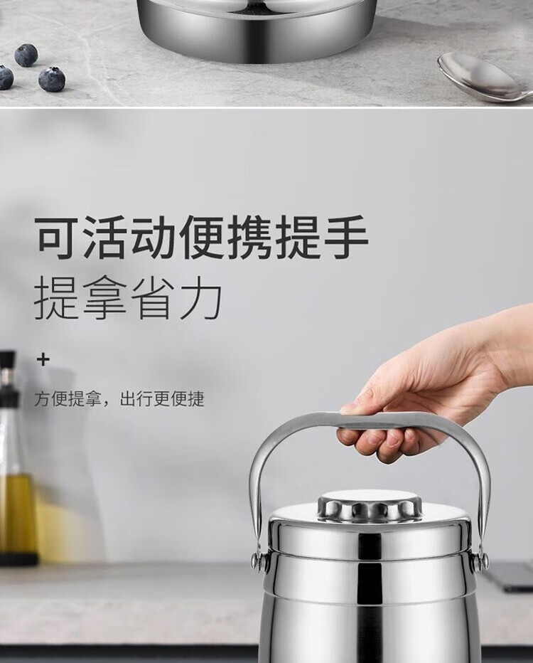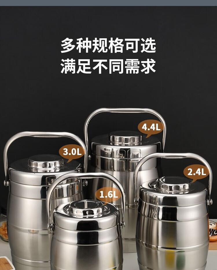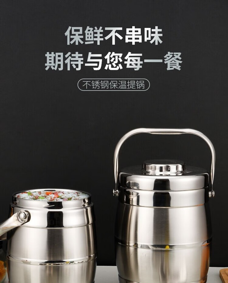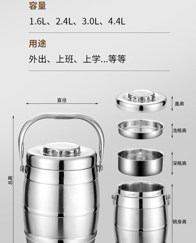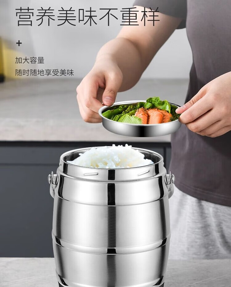 Hua Muxi Insulated Bucket Three-layer Insulated Lunch Box Large Capacity Stainless Steel Insulated Pot with Cover Lunch Box Can be Portable 1.6 Drum Type Three Layers 1 Person No Package