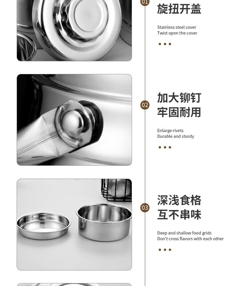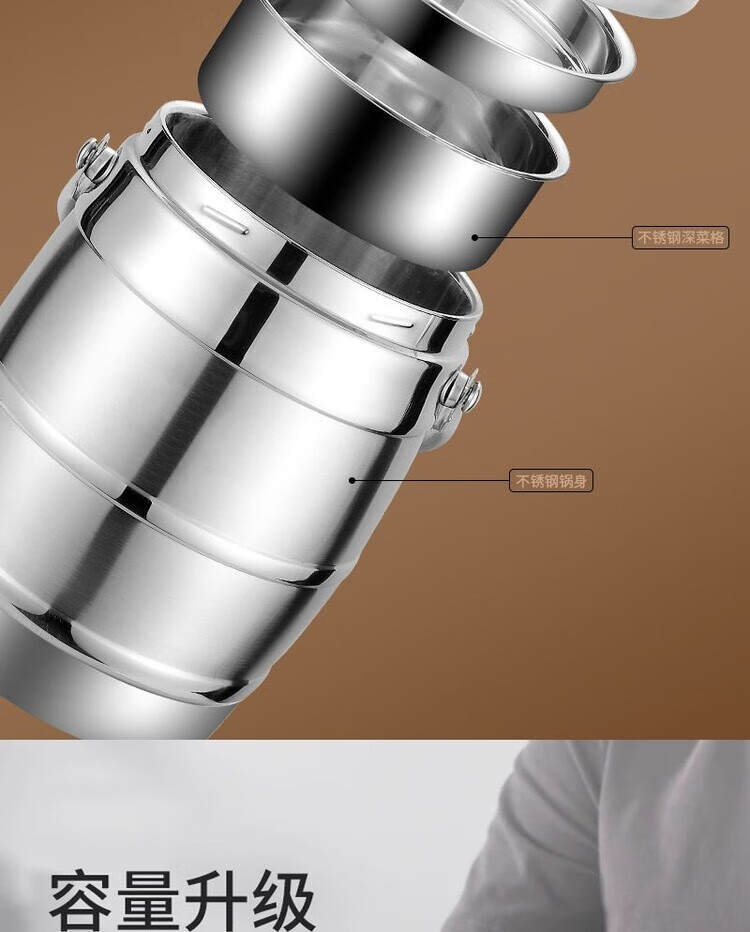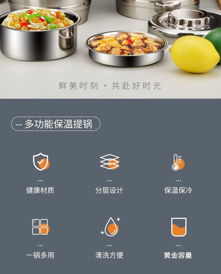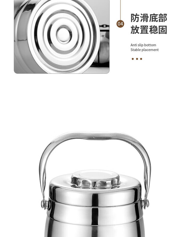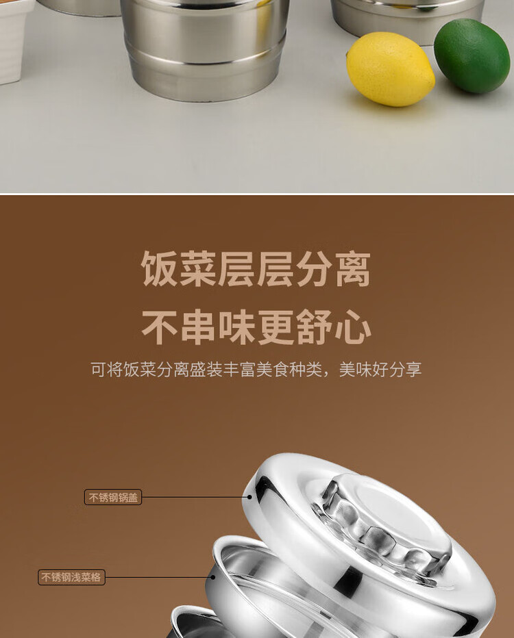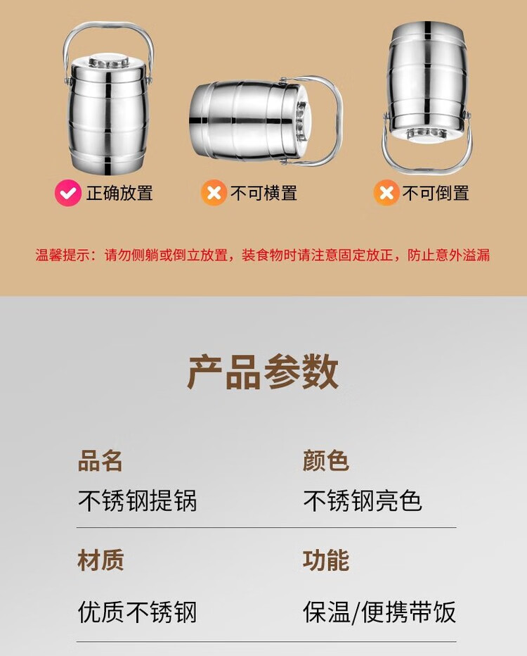 Hua Muxi Insulated Bucket Three-layer Insulated Lunch Box Large Capacity Stainless Steel Insulated Pot with Cover Lunch Box Can be Portable 1.6 Drum Type Three Layers 1 Person No Package