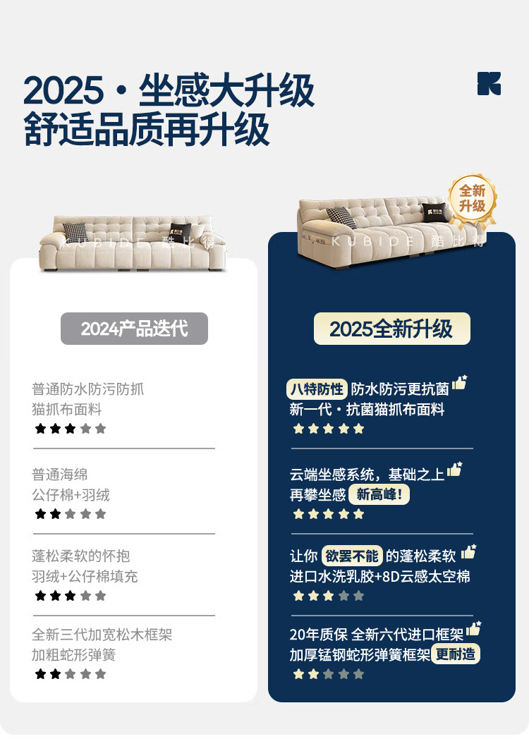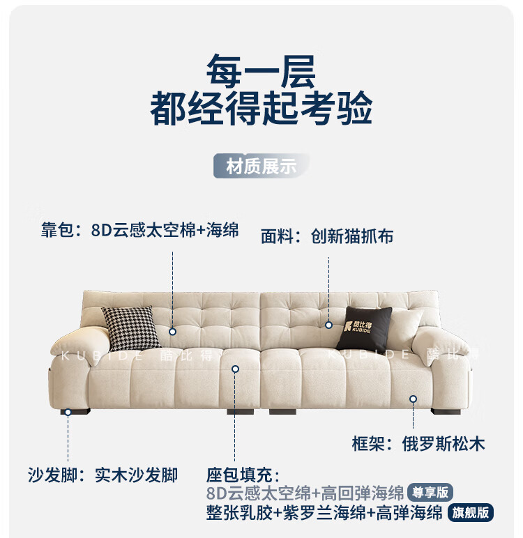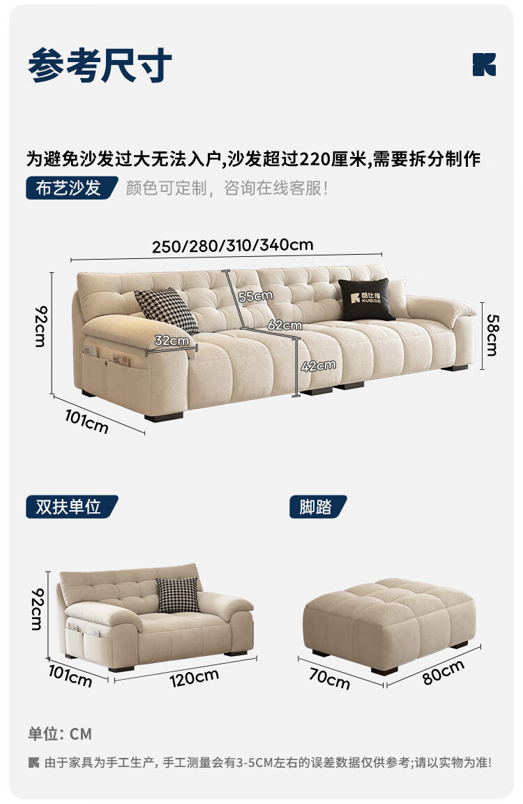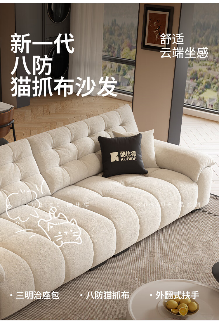 CoolBide 2025 new fabric sofa small apartment modern simple living room sofa antique style straight row multi-seat sofa 3.1 meters straight row multi-seat sofa flagship version Ruixue Chenille velvet
