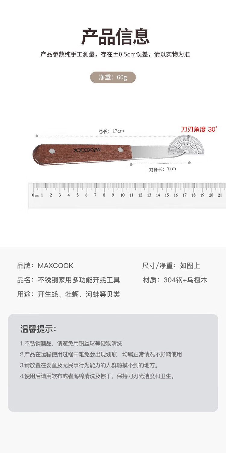 Maxcook oyster opener stainless steel oyster knife oyster opener thickened oyster scallop shell knife pry clam opener opener MCGC4872