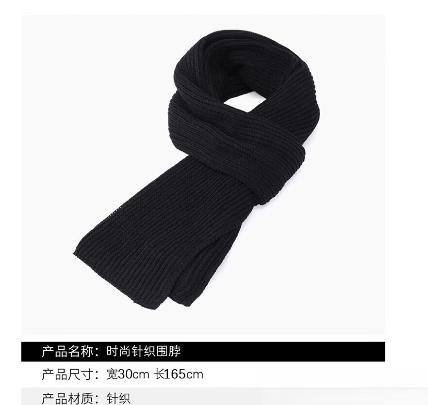 Hengyuanxiang knitted scarf for middle-aged and elderly people to keep warm in winter men's black scarf for the elderly grandpa dad's birthday neck protector winter for women black