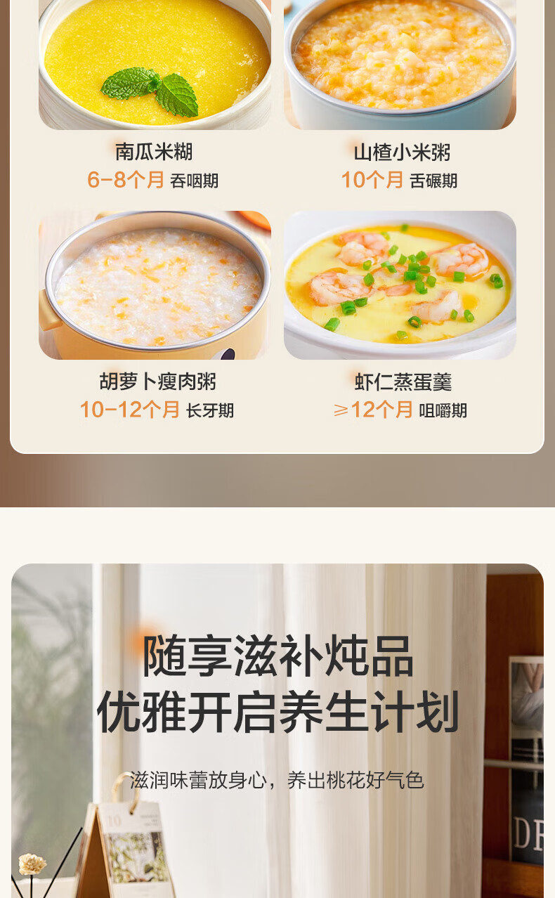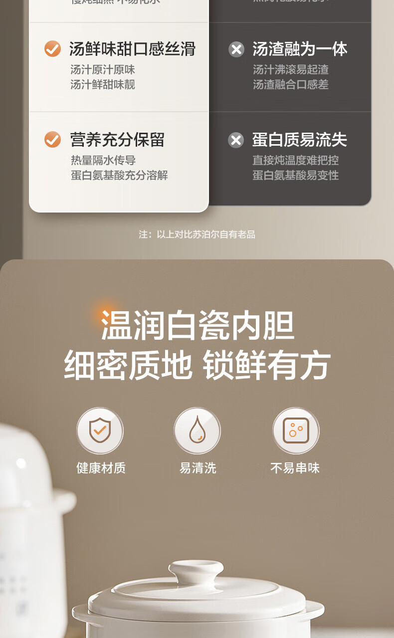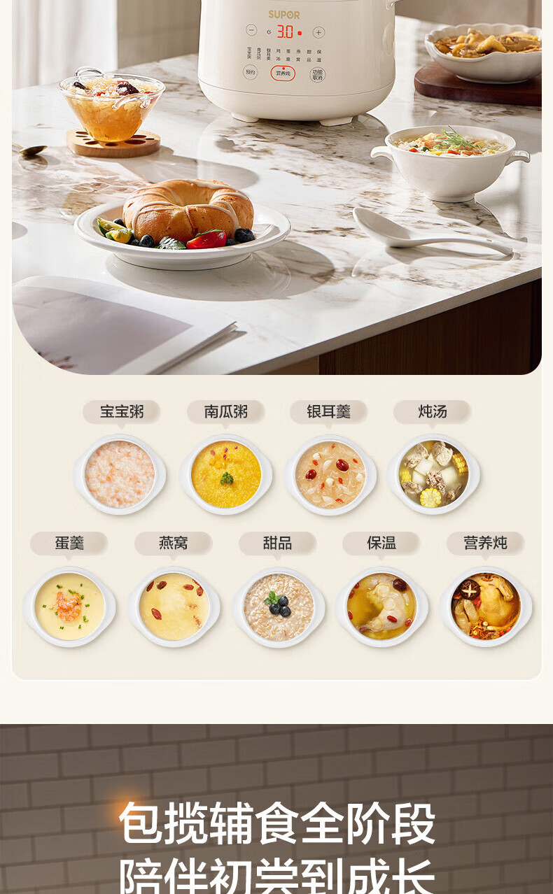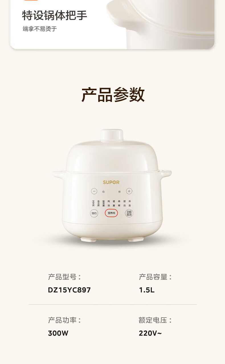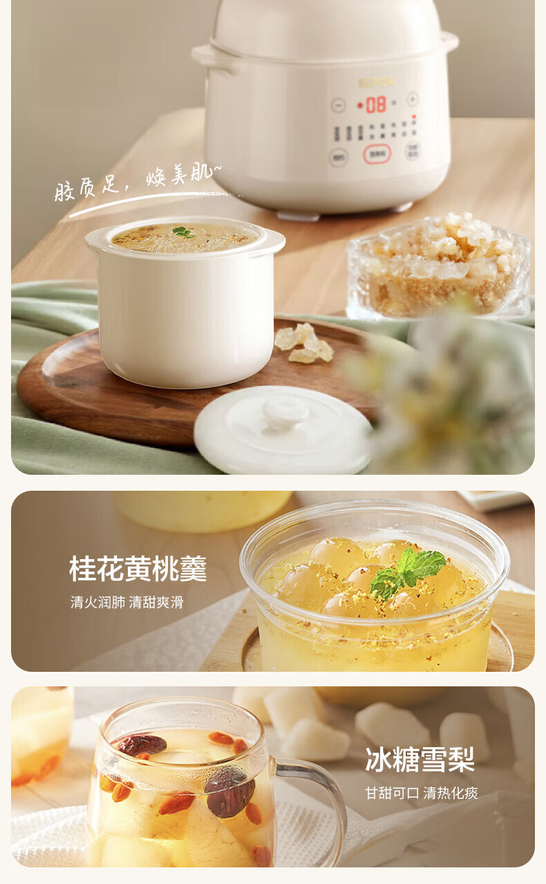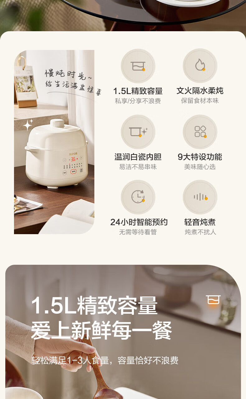 SUPOR electric stew pot, household fully automatic intelligent electric stew pot, water-proof stew pot, bird's nest stew pot, inner pot for cooking porridge, soup, stew, casserole, egg boiling artifact steamer 1.5L