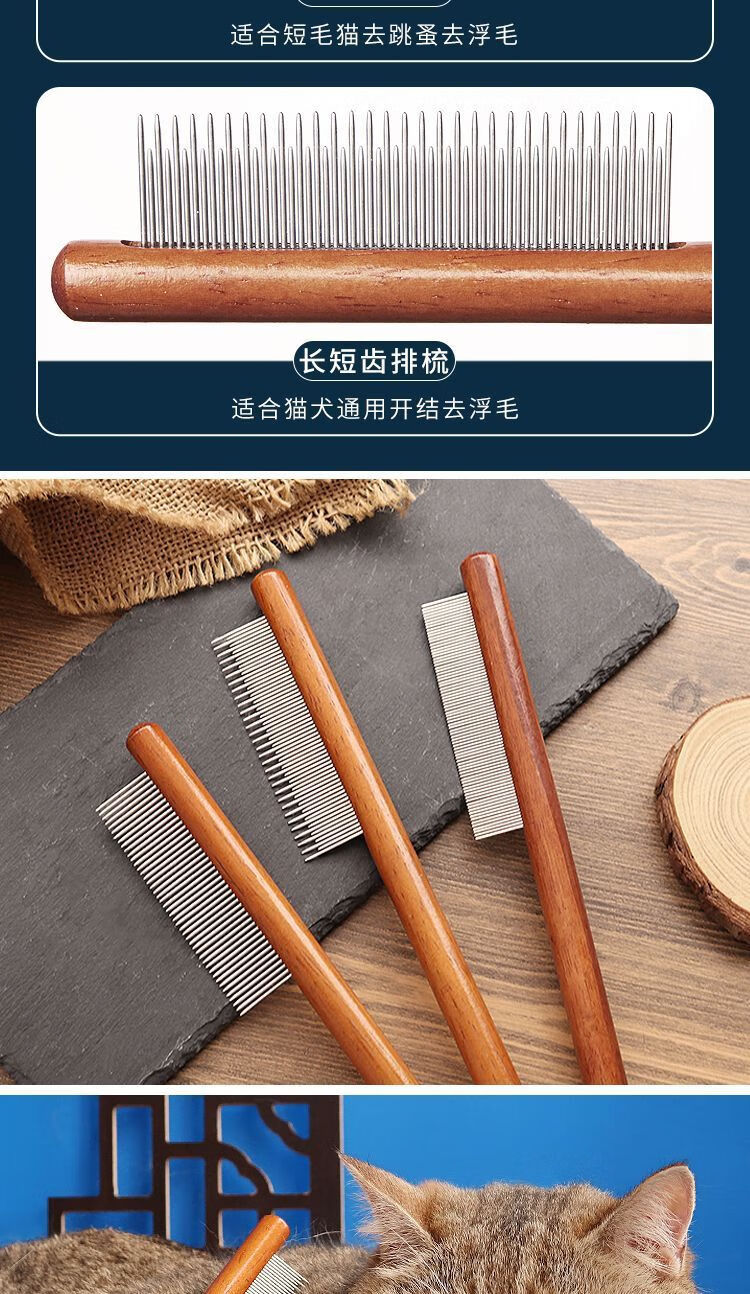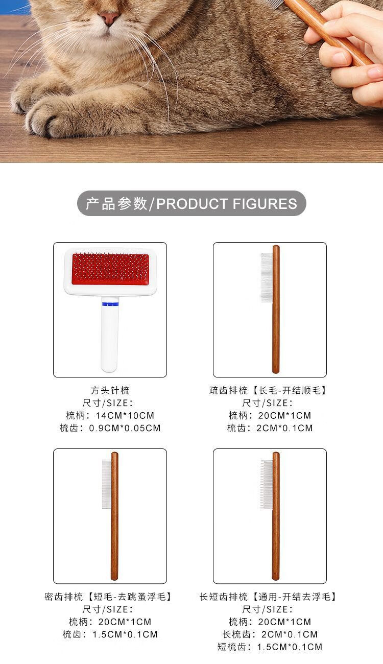 Pet comb A1P50-Float removal comb for pet cats, flea removal, fine-tooth comb for dogs, square head needle comb 1, default