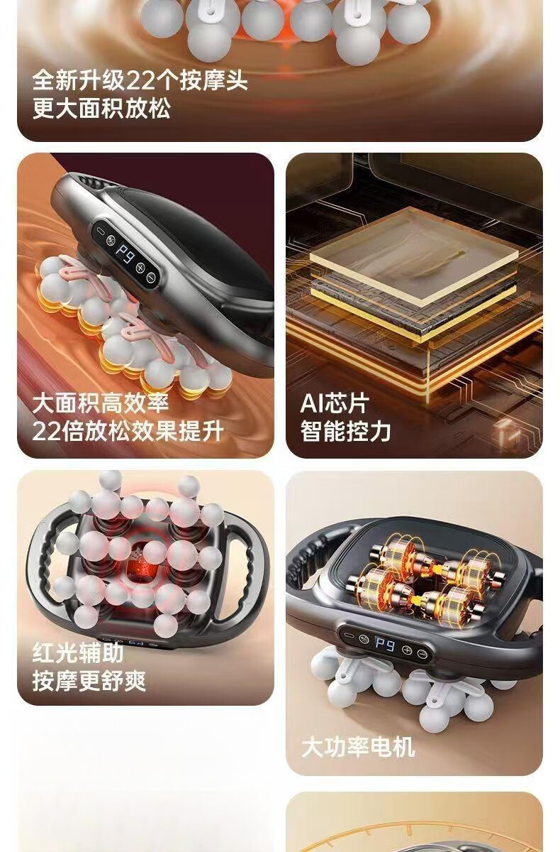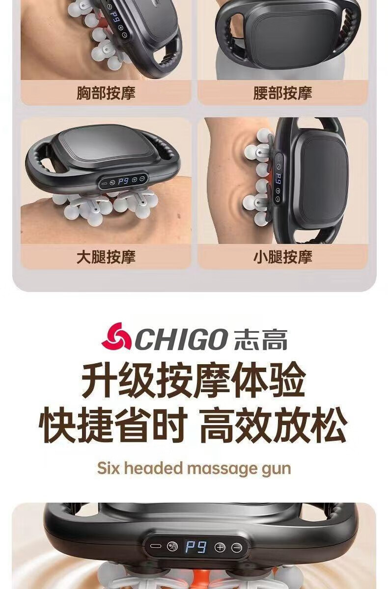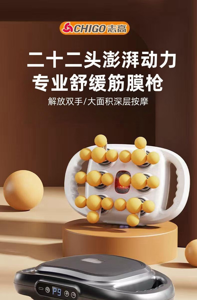 Chigo 22-head full-body fascia gun lumbar multi-functional shoulder and neck household fully automatic massager, standard 12-head gray