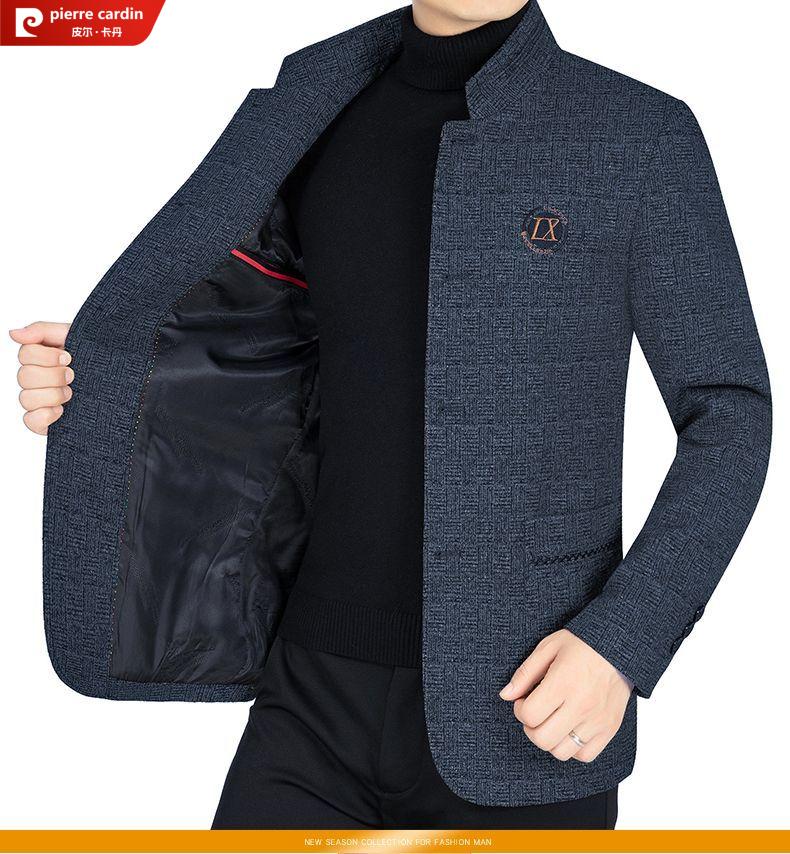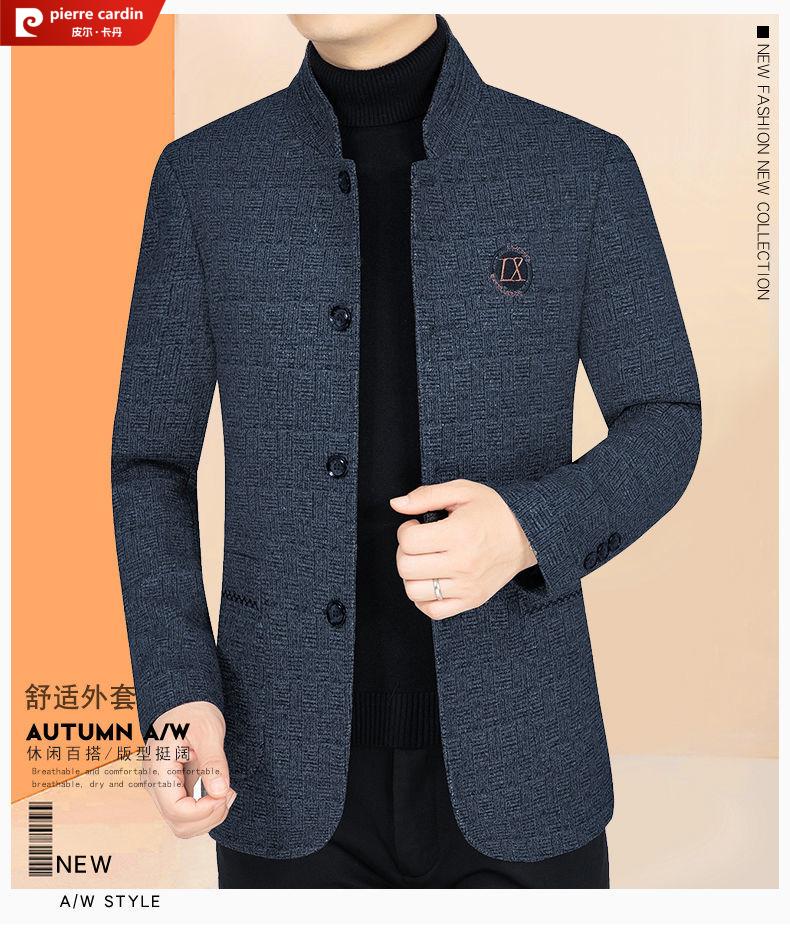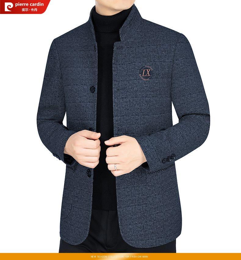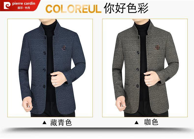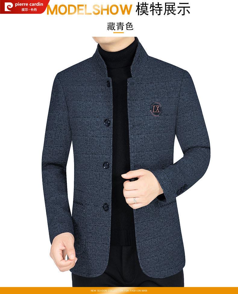 Pierre Cardin high-end wool tunic men's coat stand collar jacket 2025 autumn and winter middle-aged dad men's clothing 28255 navy blue XL 180 (135-150) Jin Jin equals 0.5 kg