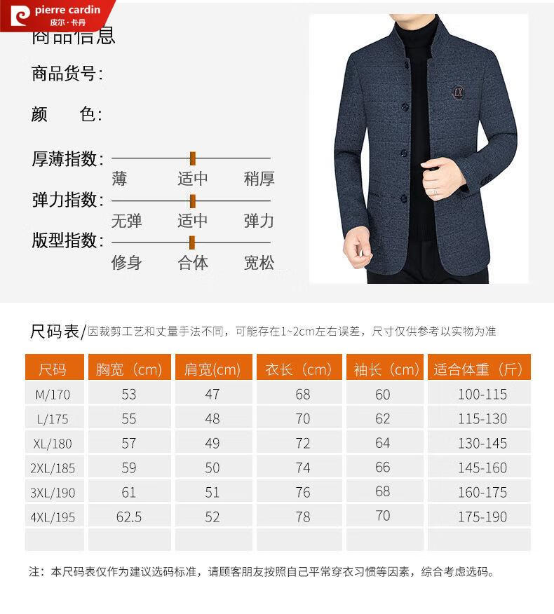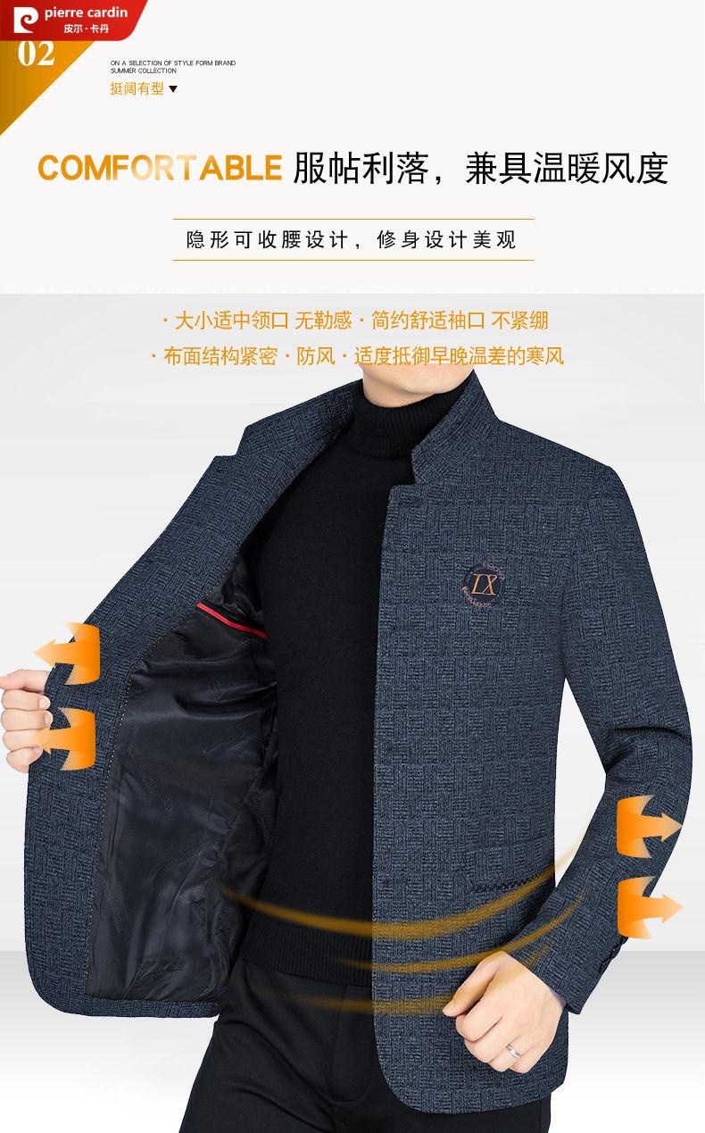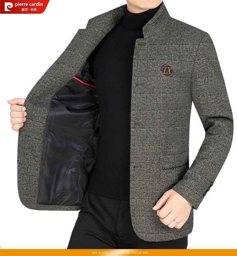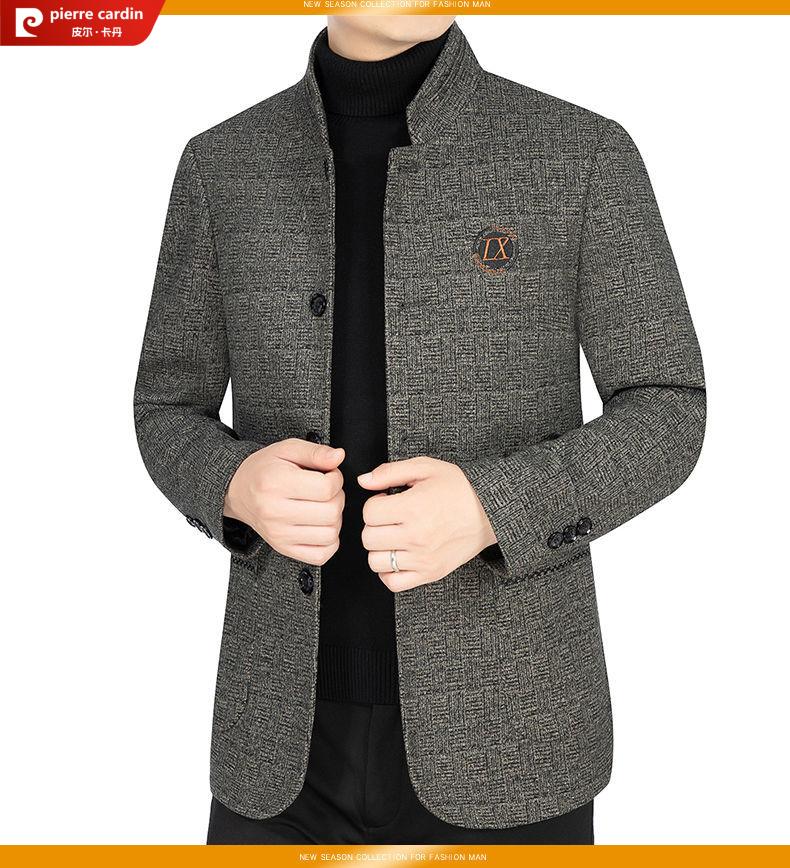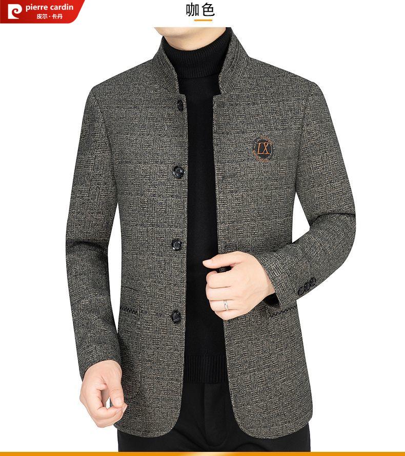 Pierre Cardin high-end wool tunic men's coat stand collar jacket 2025 autumn and winter middle-aged dad men's clothing 28255 navy blue XL 180 (135-150) Jin Jin equals 0.5 kg