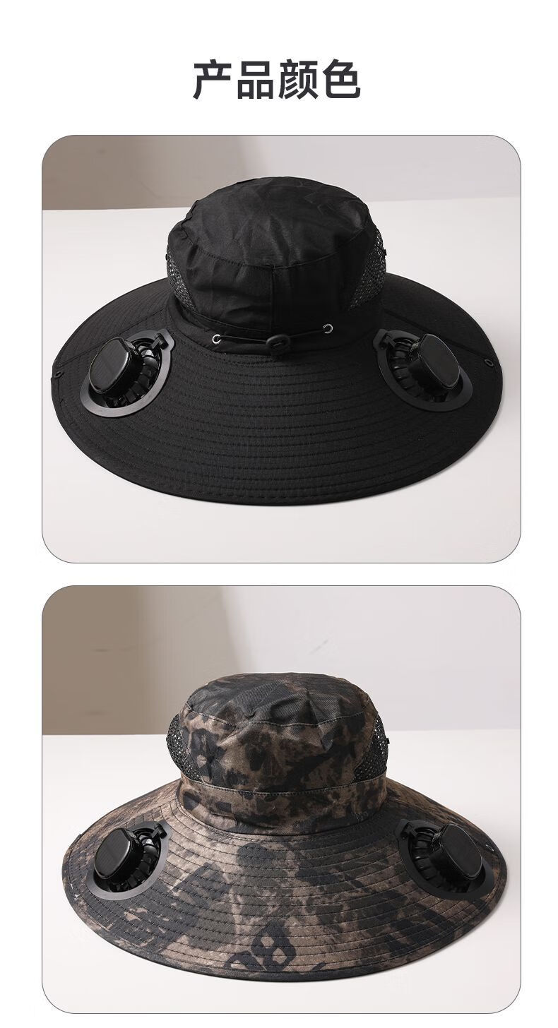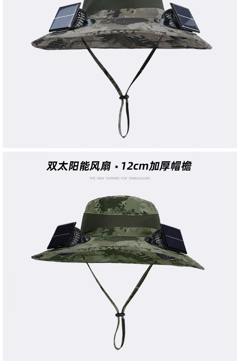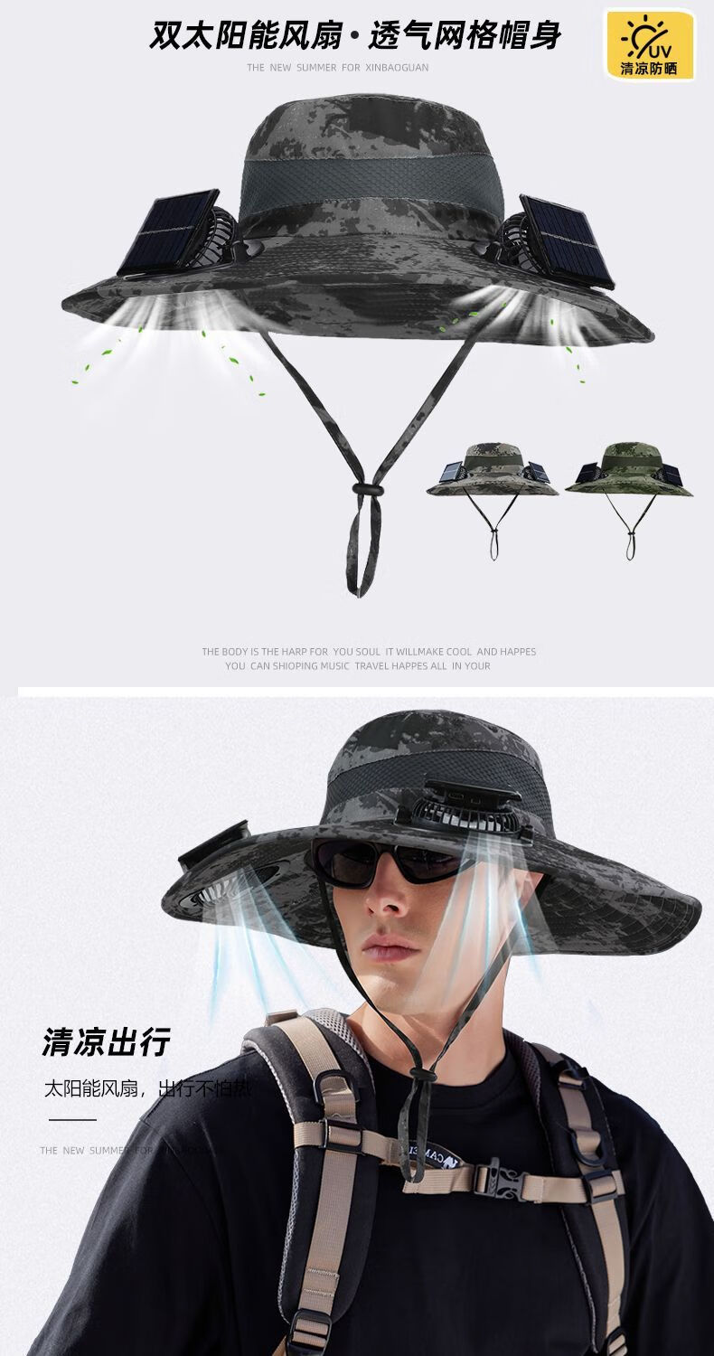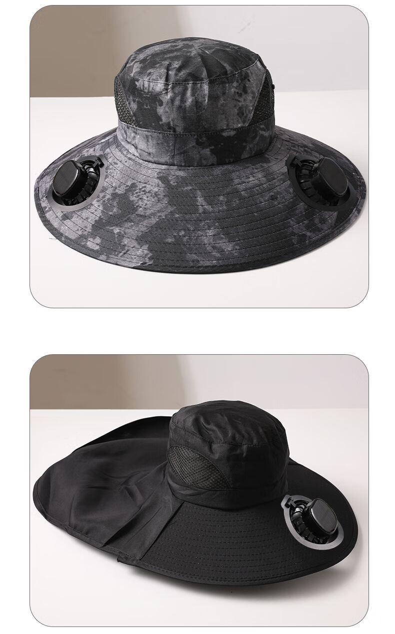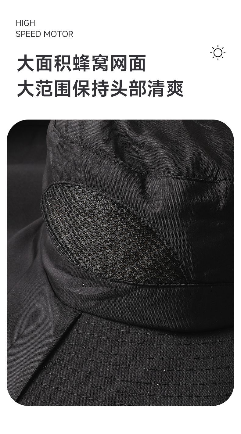 Summer large brim sun protection fisherman hat for men outdoor sports fishing solar double fan sunshade suit fan hat black