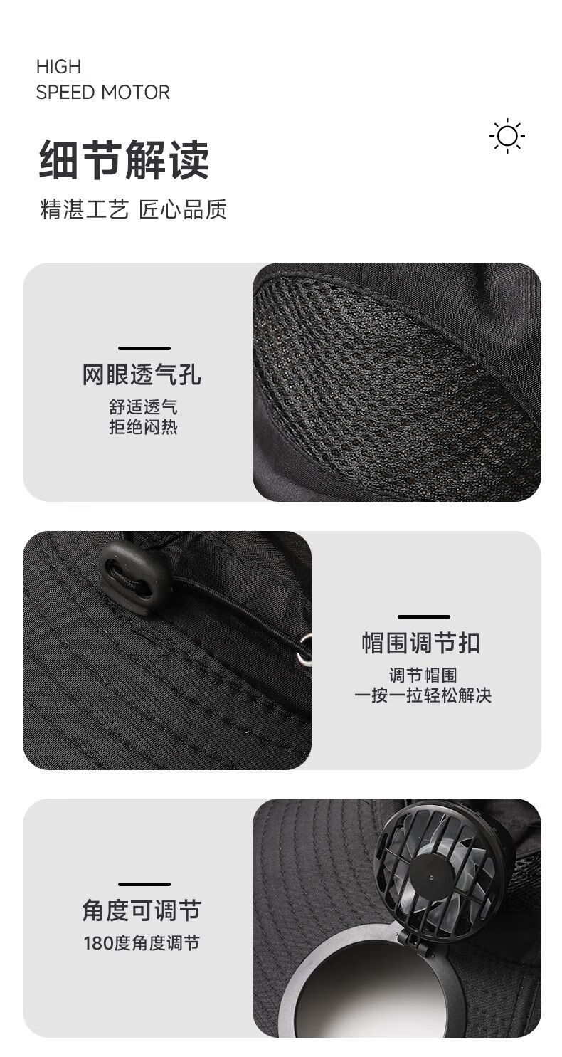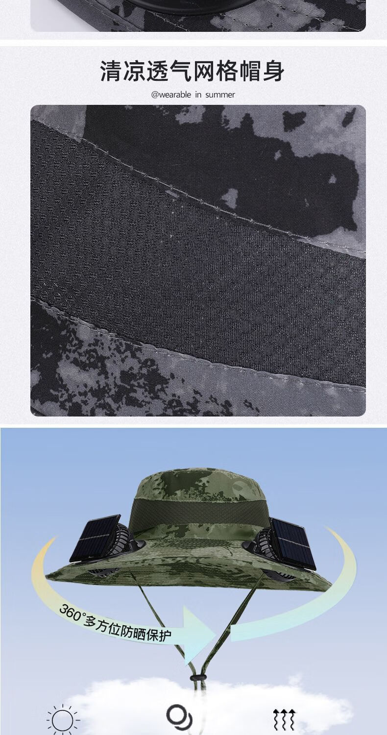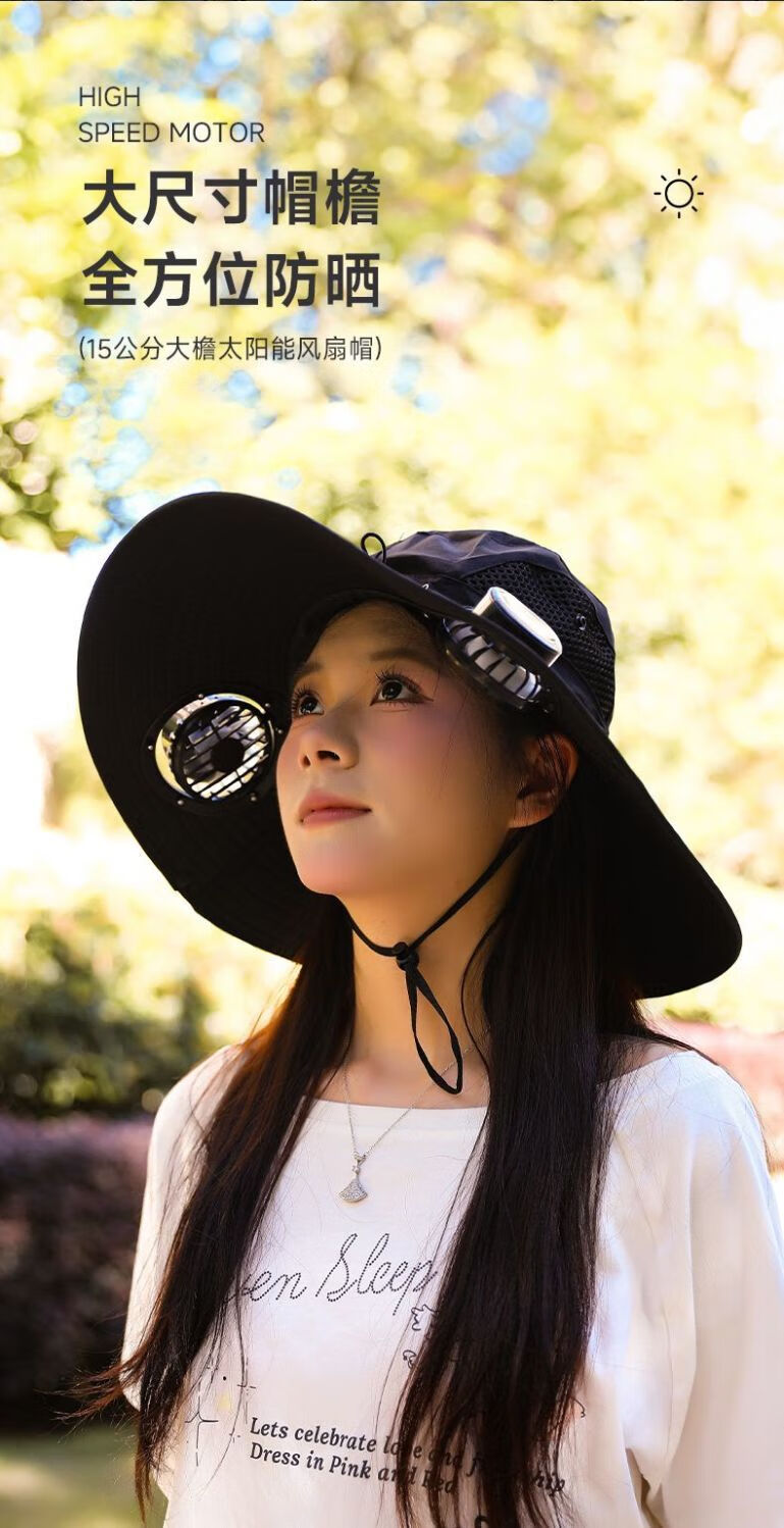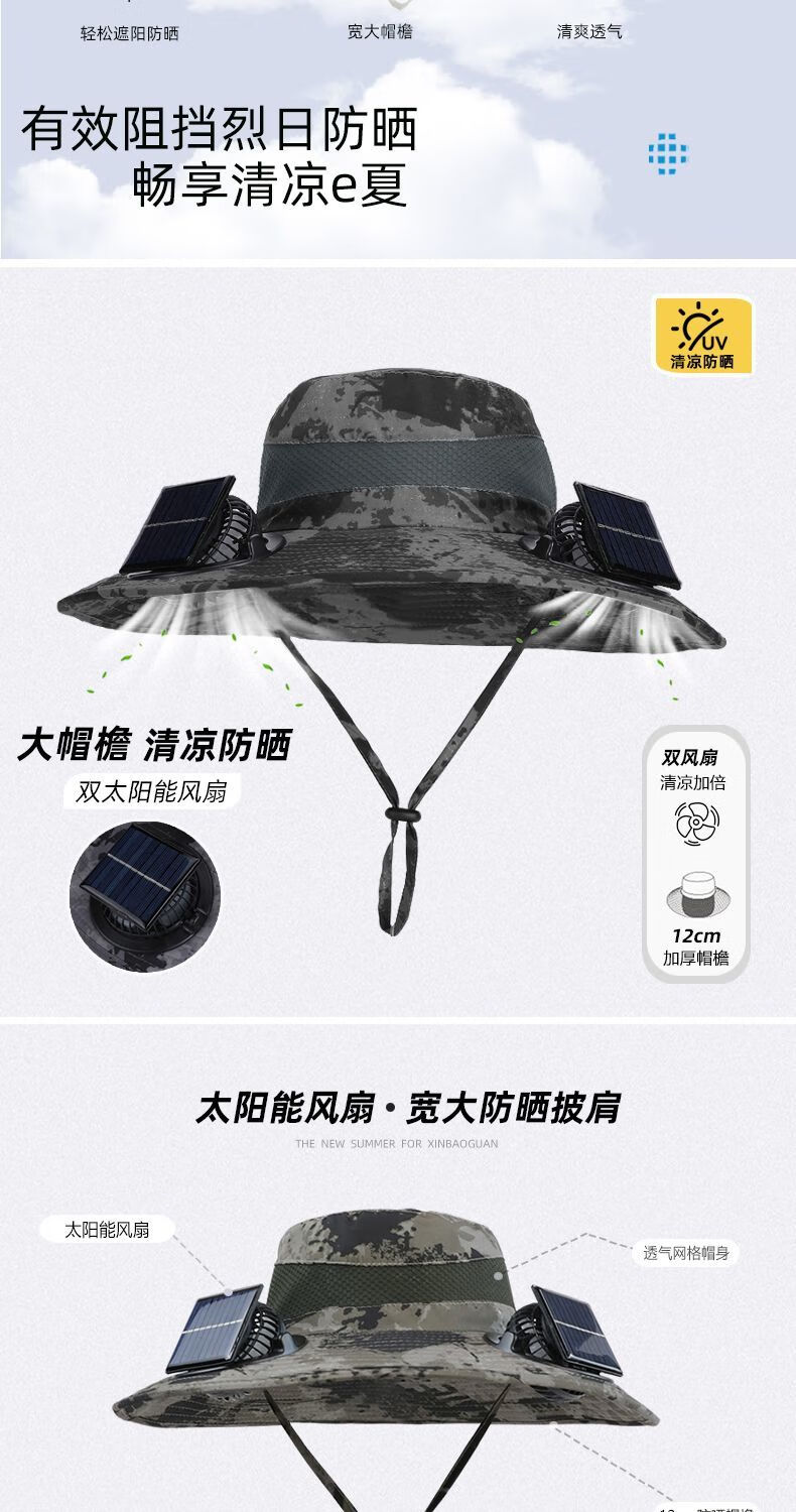 Summer large brim sun protection fisherman hat for men outdoor sports fishing solar double fan sunshade suit fan hat black