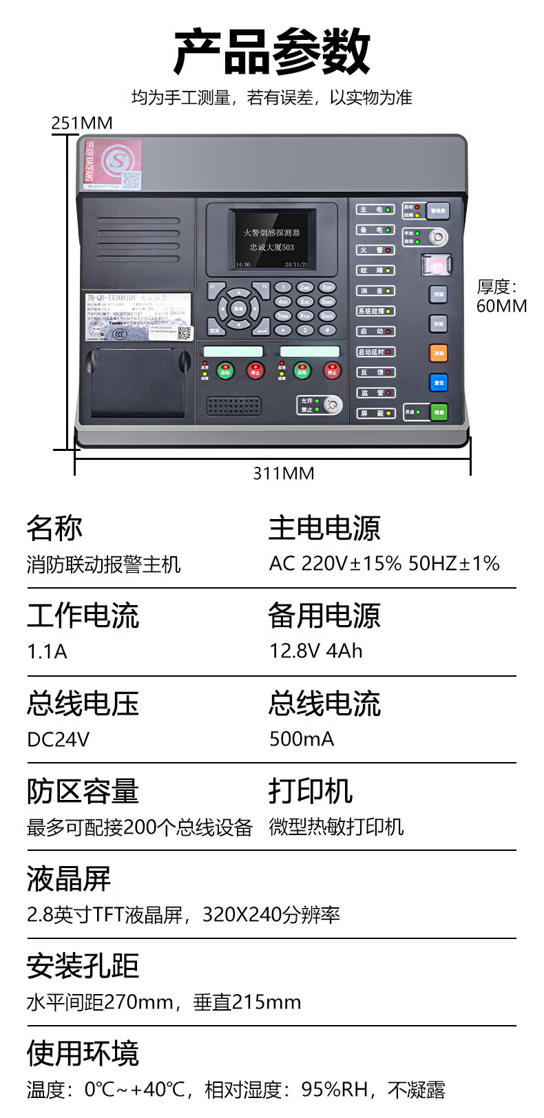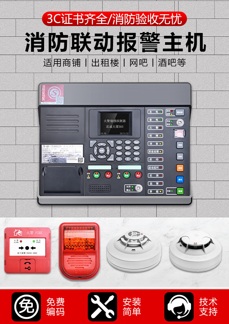 Taihean wired fire alarm controller smoke alarm 3C certified fire protection dedicated host linkage Taihean 200-point fire alarm host