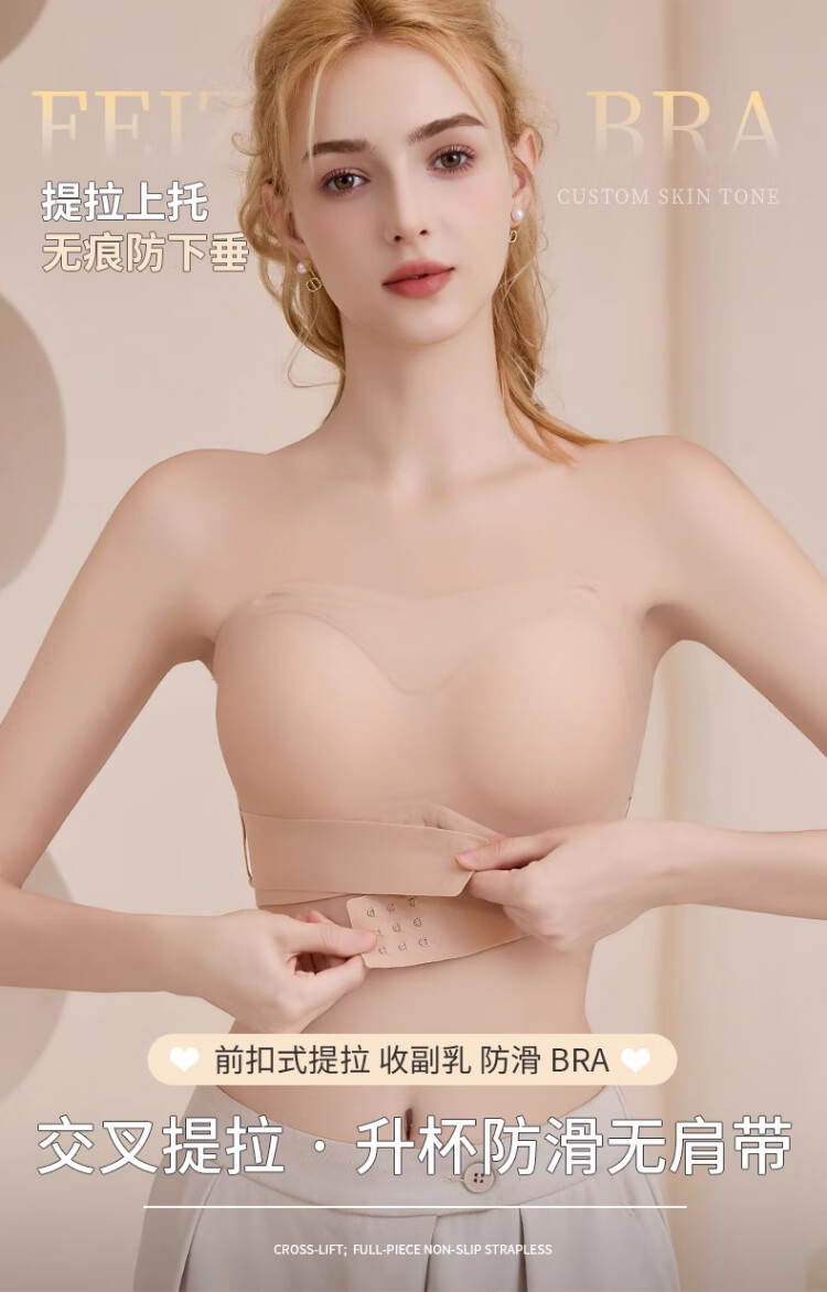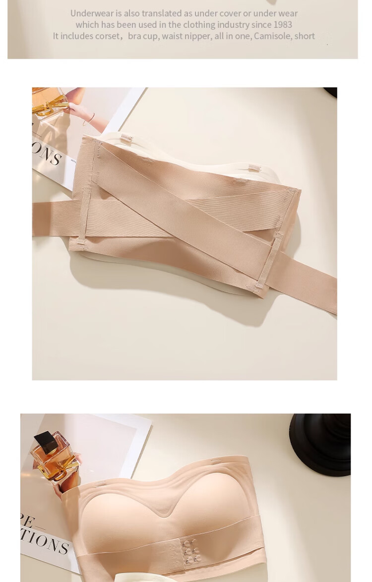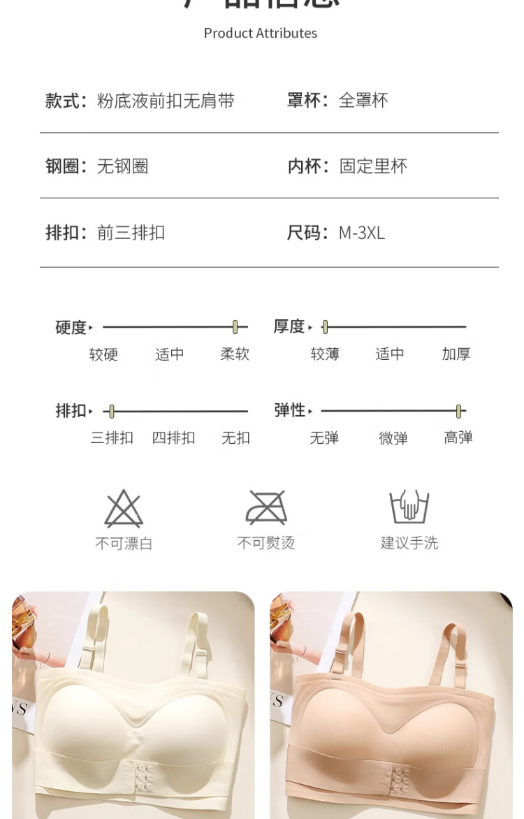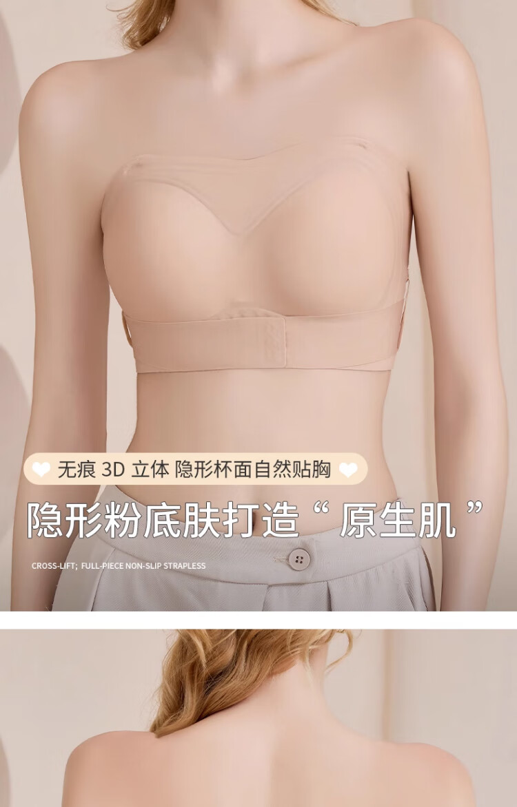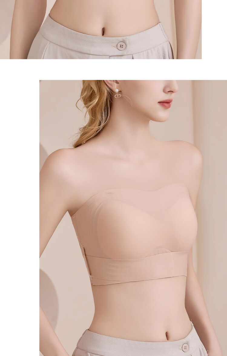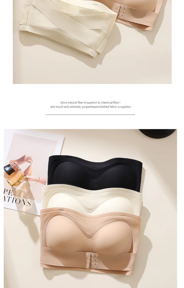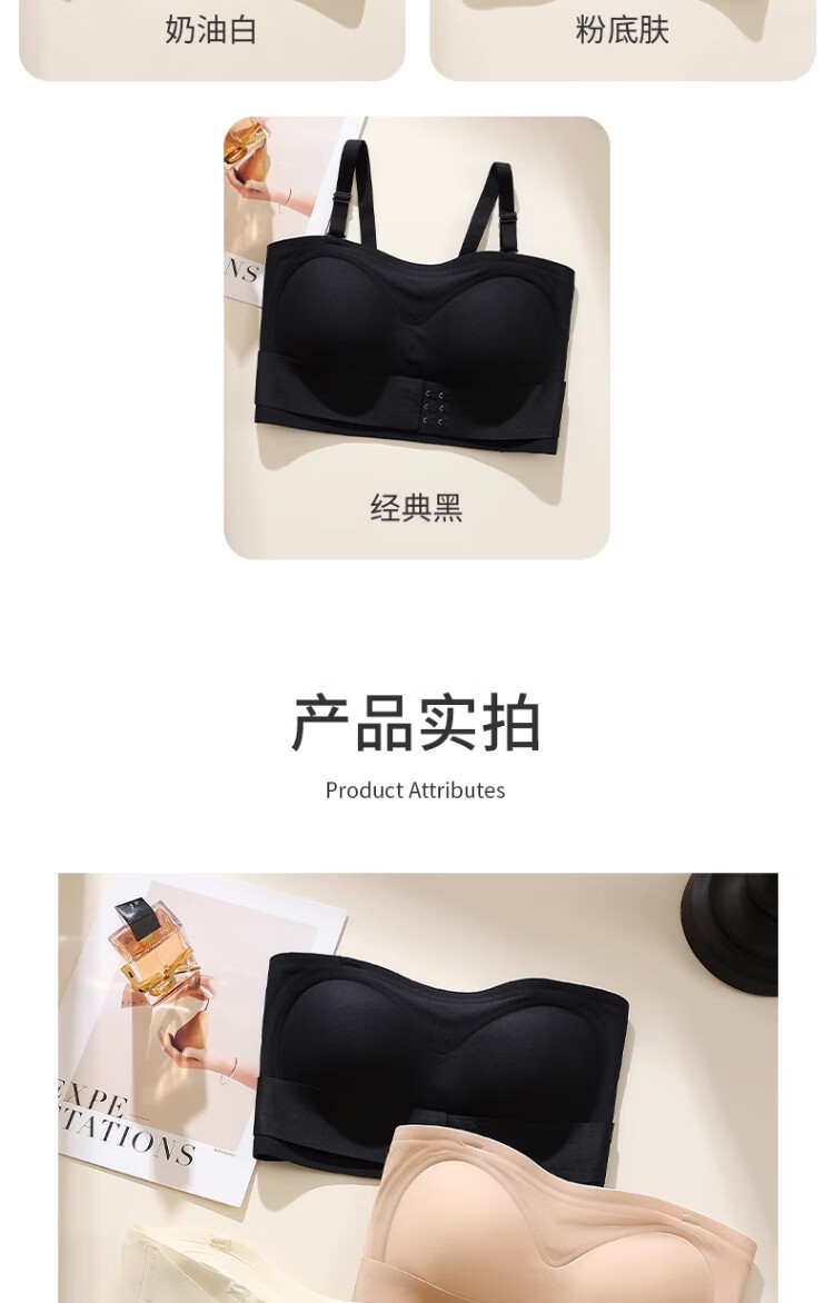 LNGA LANDGRE Liquid Foundation Strapless Underwear for Women with Big Breasts, Non-slip, Gathering Skin Color, Invisible Wrapping, Anti-sagging, Front Button Tube Top, Foundation Skin + Classic Black Special Color Tone, Invisible, Traceless M, Suitable for 34/75BCD