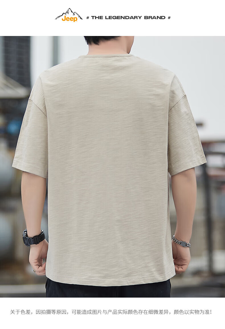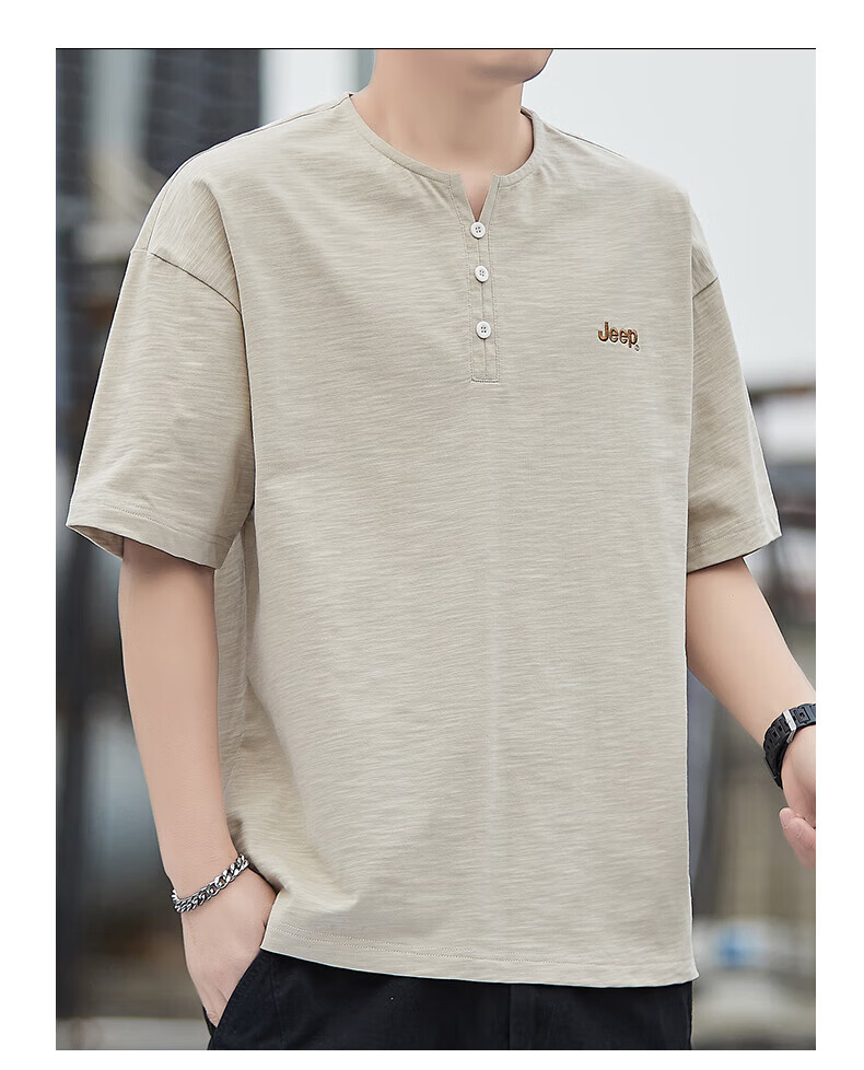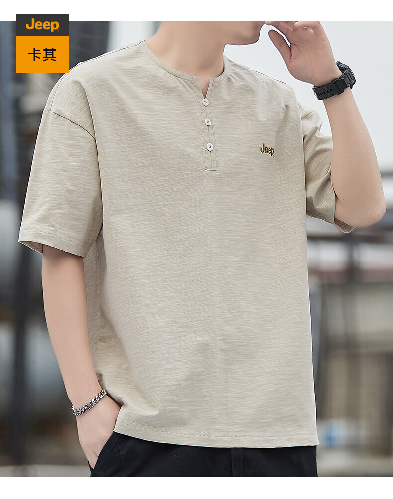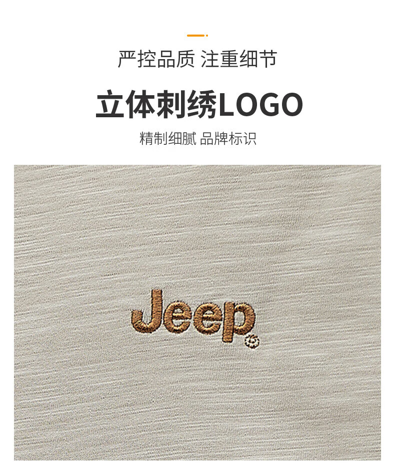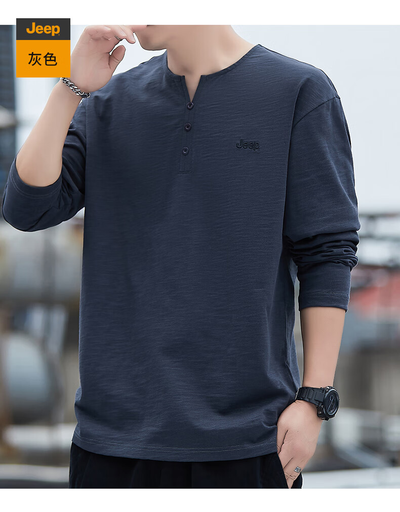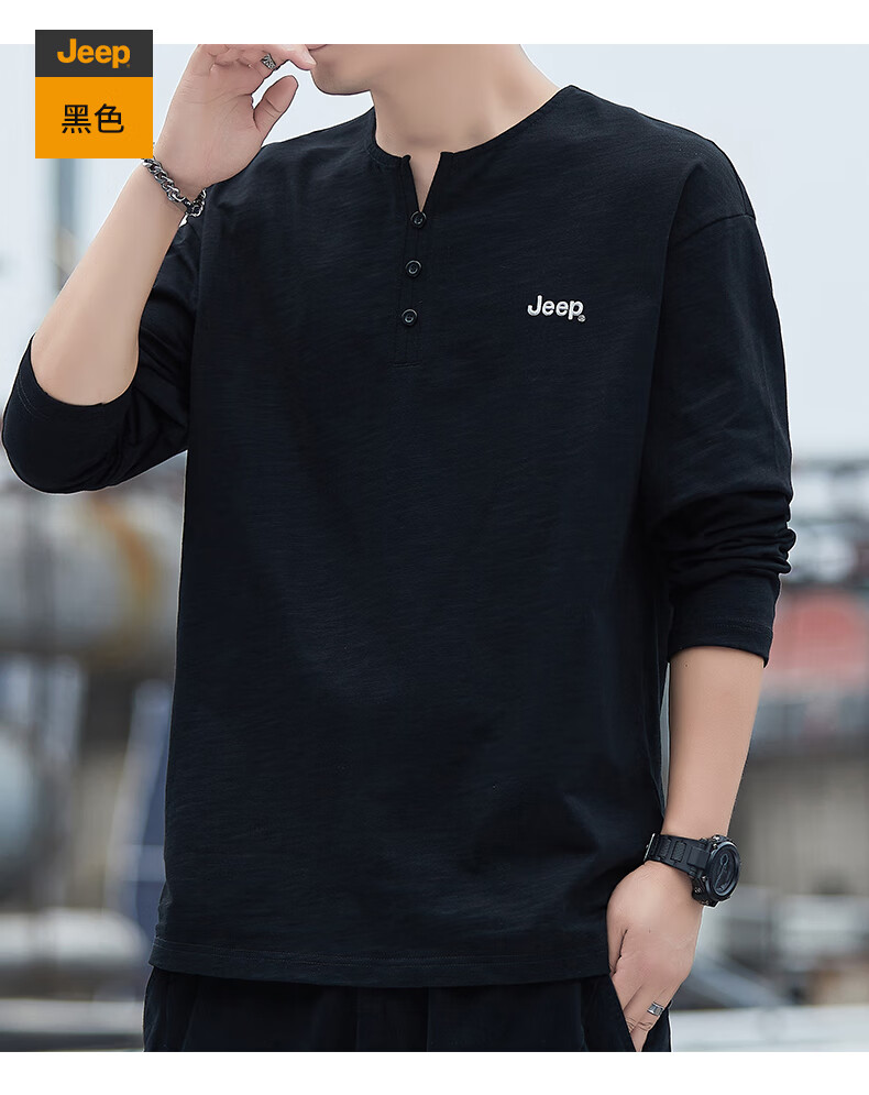 Jeep (JEEP) American genuine high-end pure cotton men's T-shirt bottoming shirt spring and autumn men's tops Henry collar casual thin sweatshirt (long sleeve) apricot official authentic 3XL suitable for 175Jin Jin equals about 0.5 kg