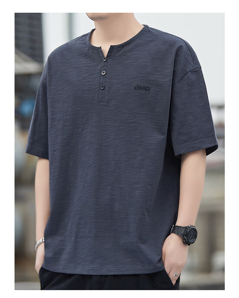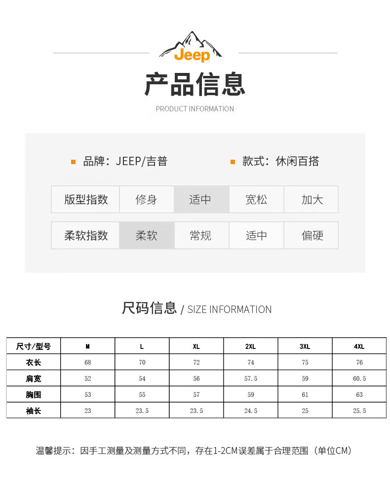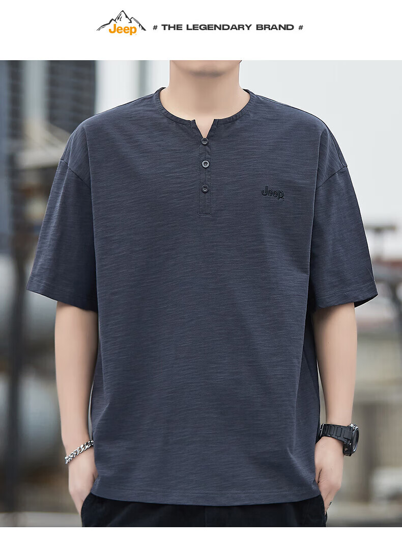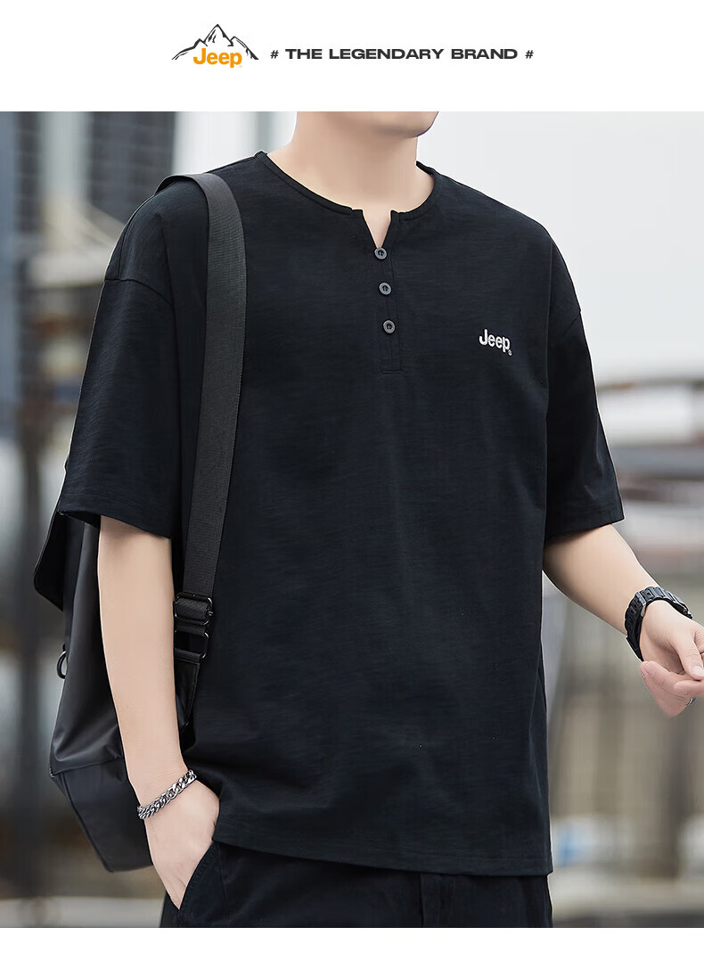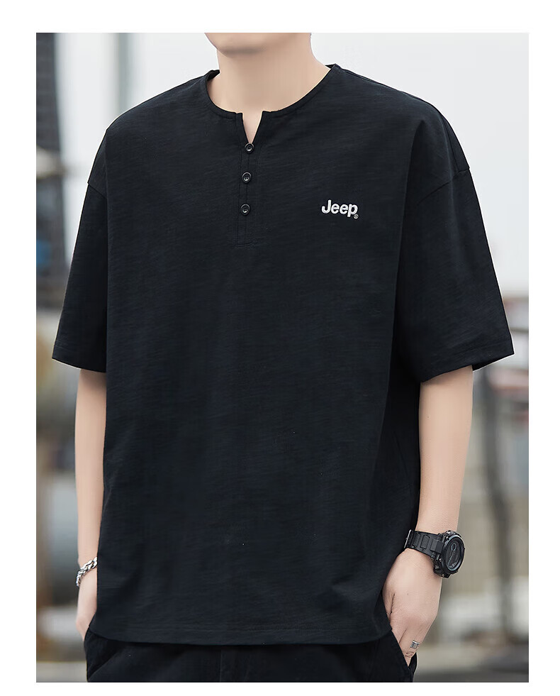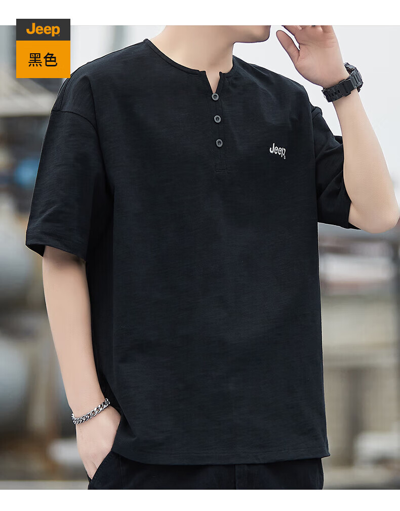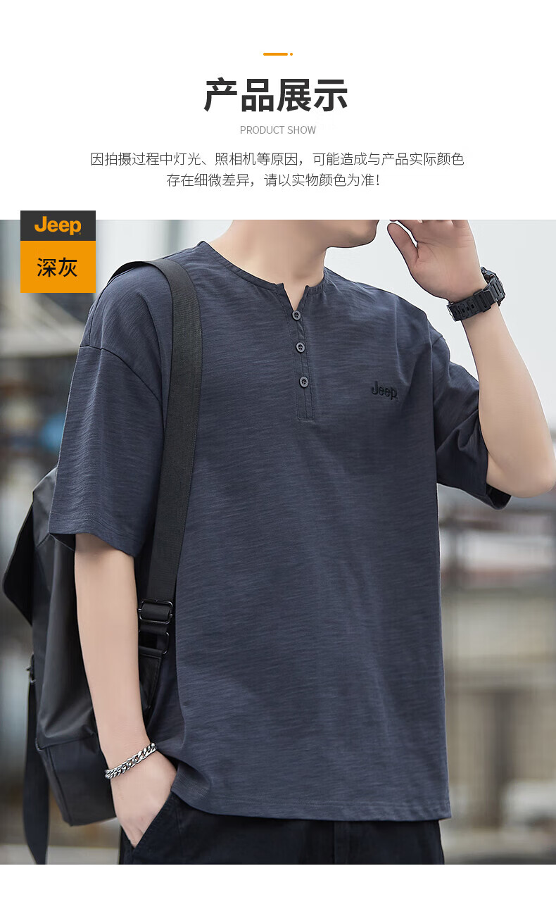 Jeep (JEEP) American genuine high-end pure cotton men's T-shirt bottoming shirt spring and autumn men's tops Henry collar casual thin sweatshirt (long sleeve) apricot official authentic 3XL suitable for 175Jin Jin equals about 0.5 kg