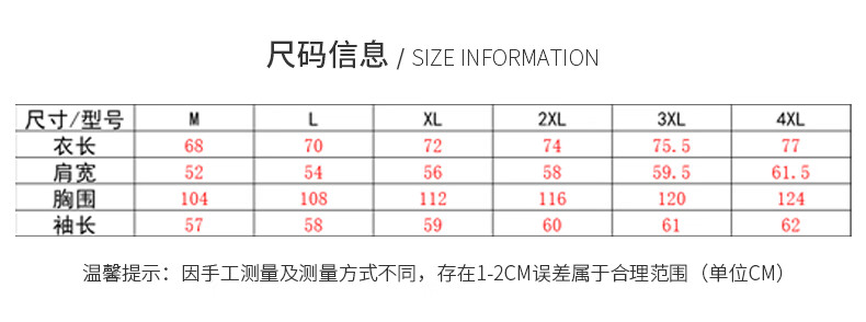 Size (cm) 42 44 46 48 50