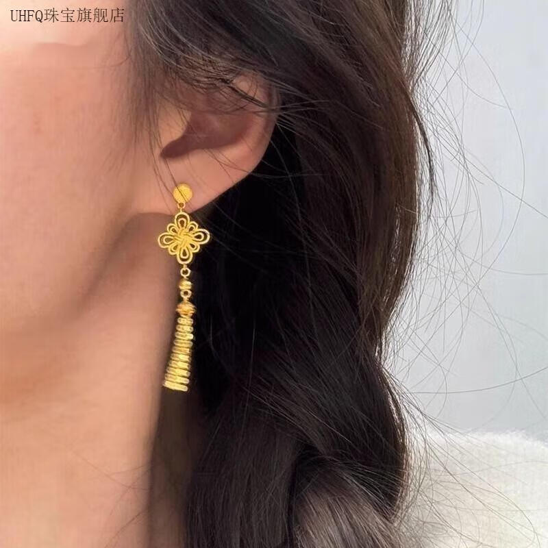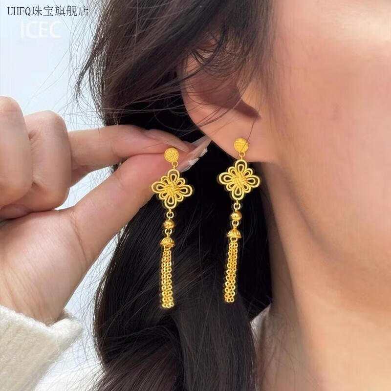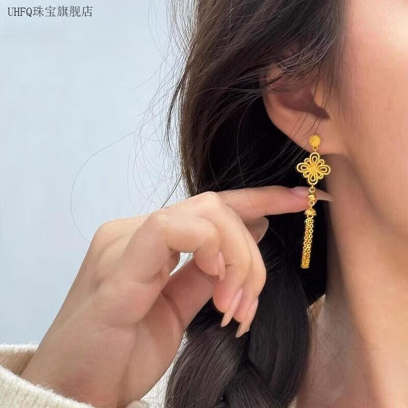 UHFQ Old Phoenix New Chinese Style Chinese Knot Tassel Long Style National Style Exquisite Earrings Z2-Golden Chinese Knot Tassel Earrings