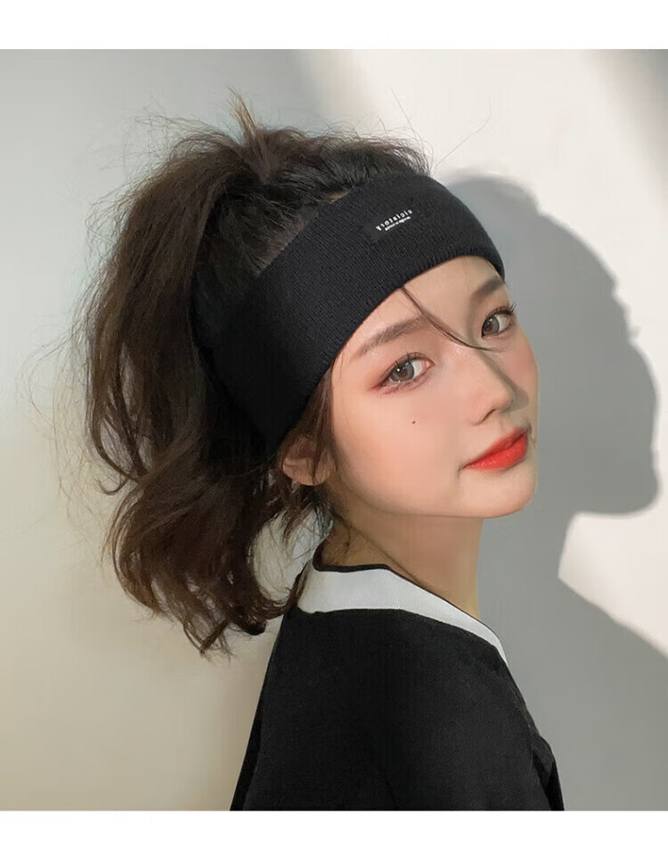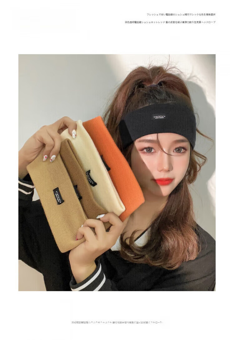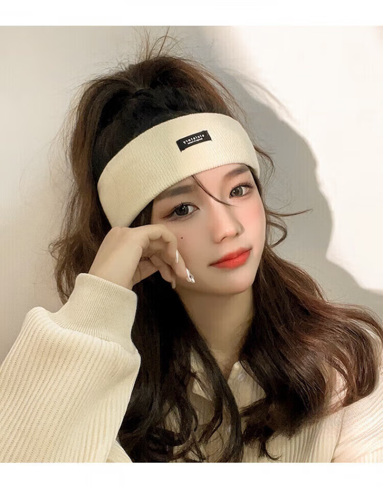 Lilang knitted headband sports headband winter headband headgear for women going out autumn and winter forehead protection woolen headscarf off-white labeling headband thickened and widened